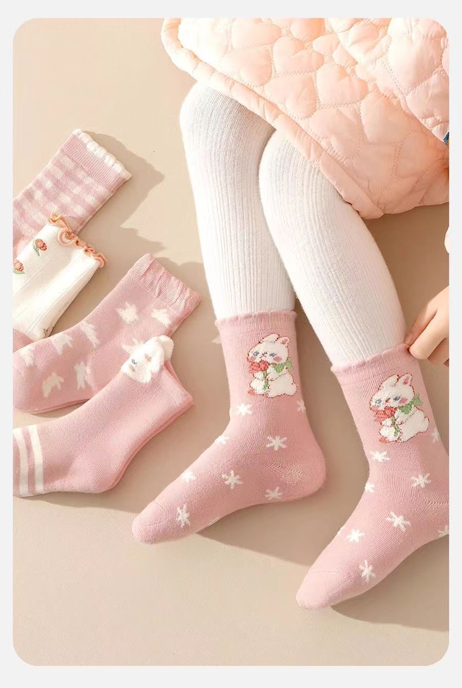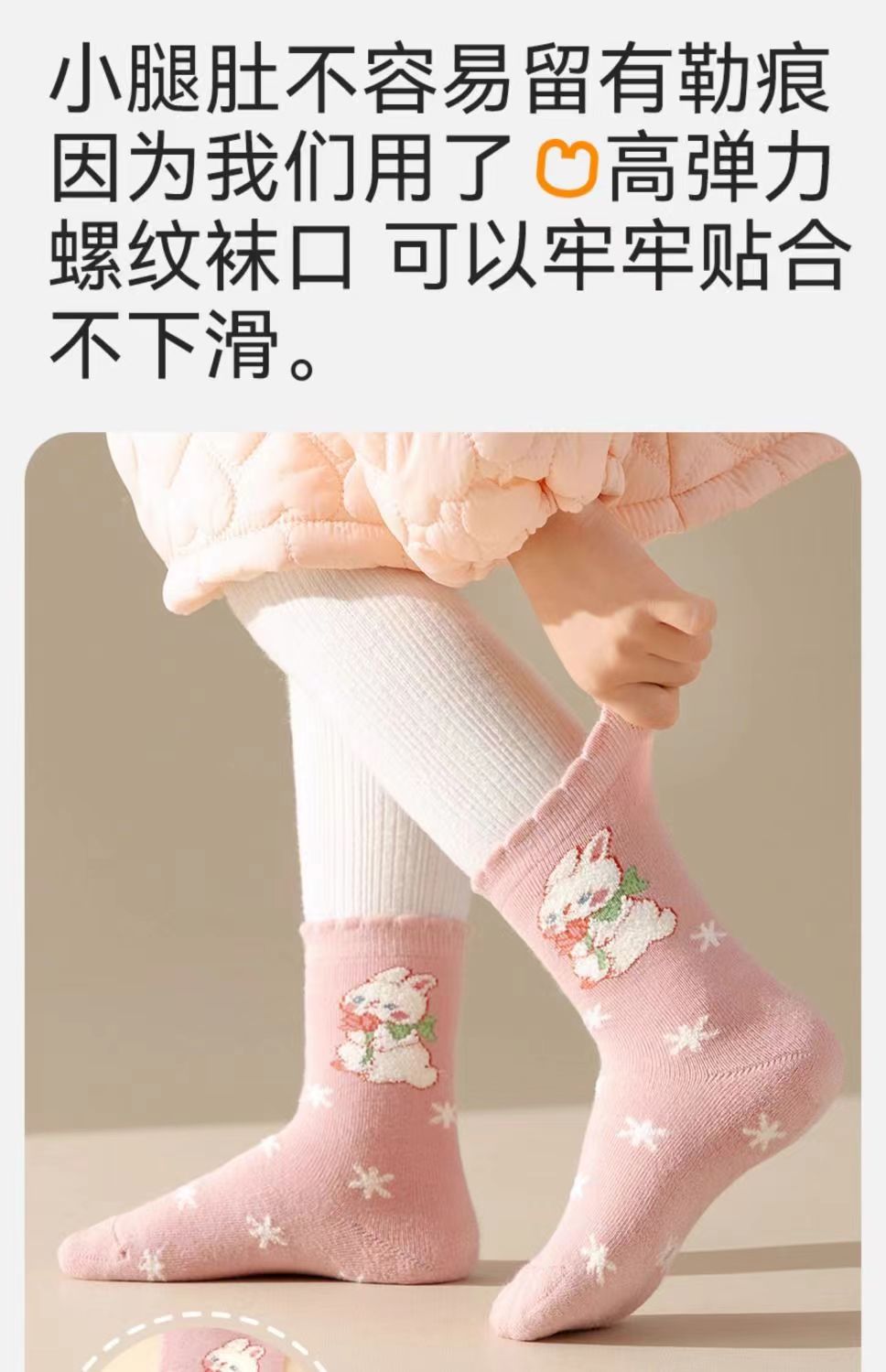 새로운 겨울 소년 소녀 냉온 보온 기모 두꺼운 어린이 양말 아기 소녀의 중간 튜브 테리 수건 양말