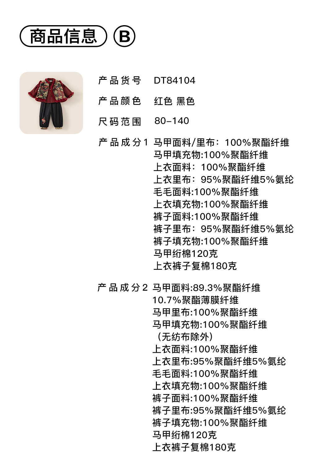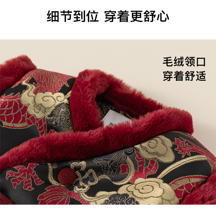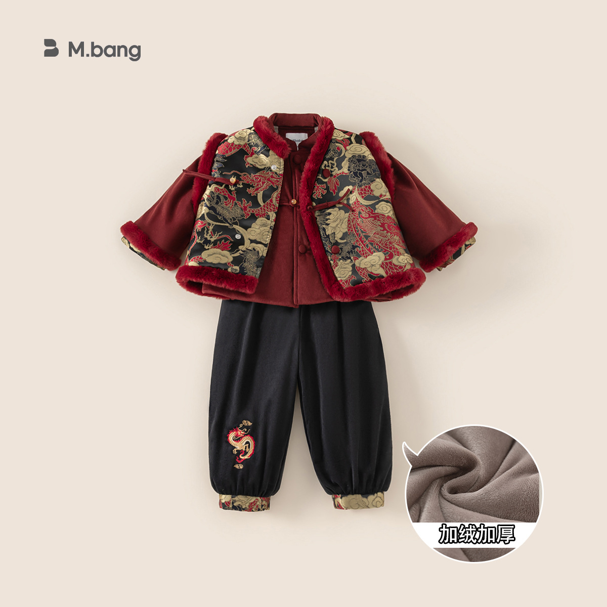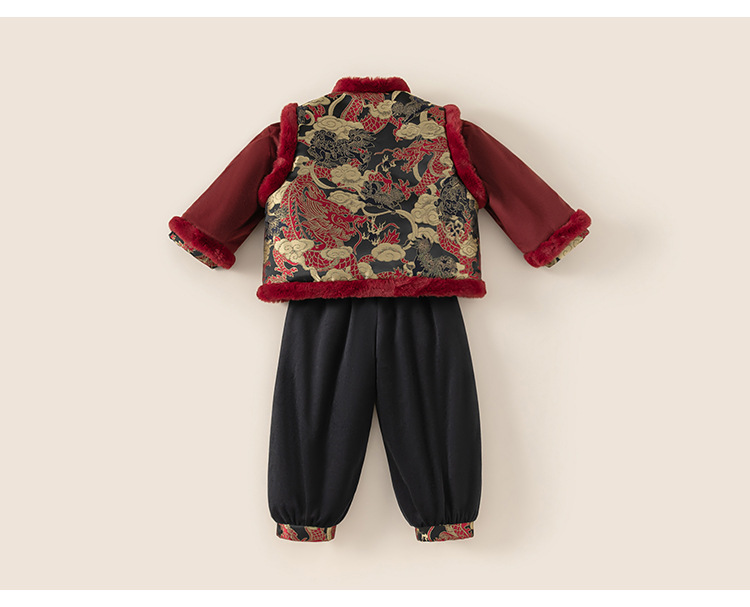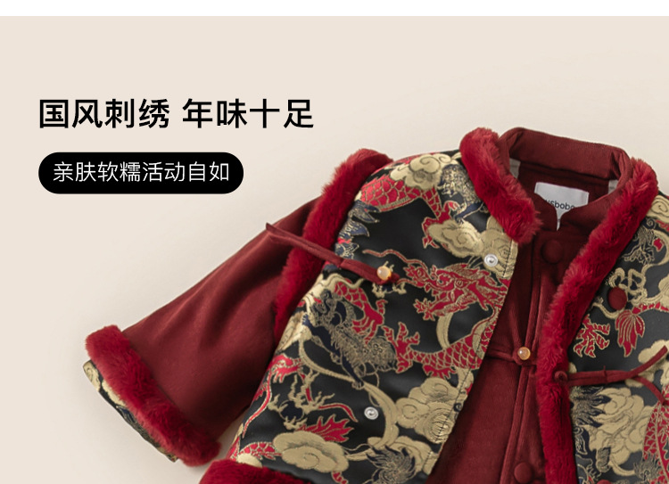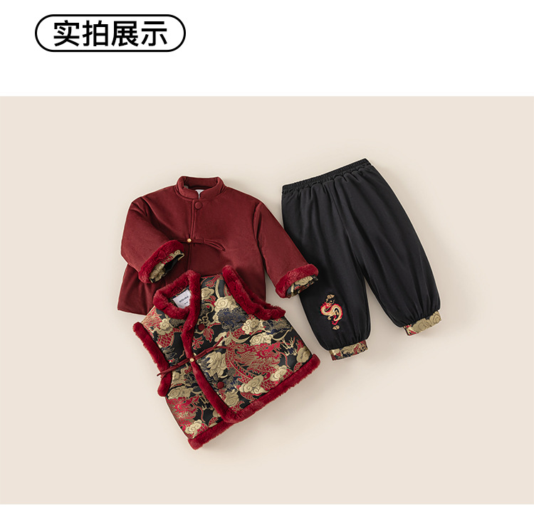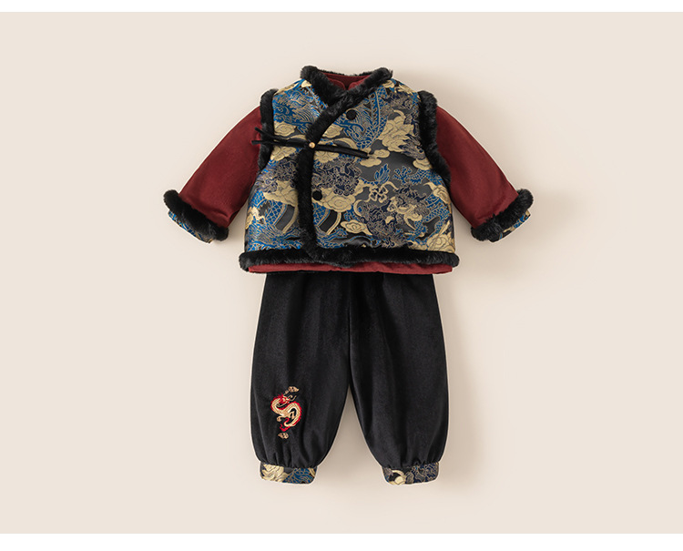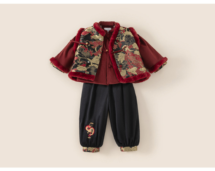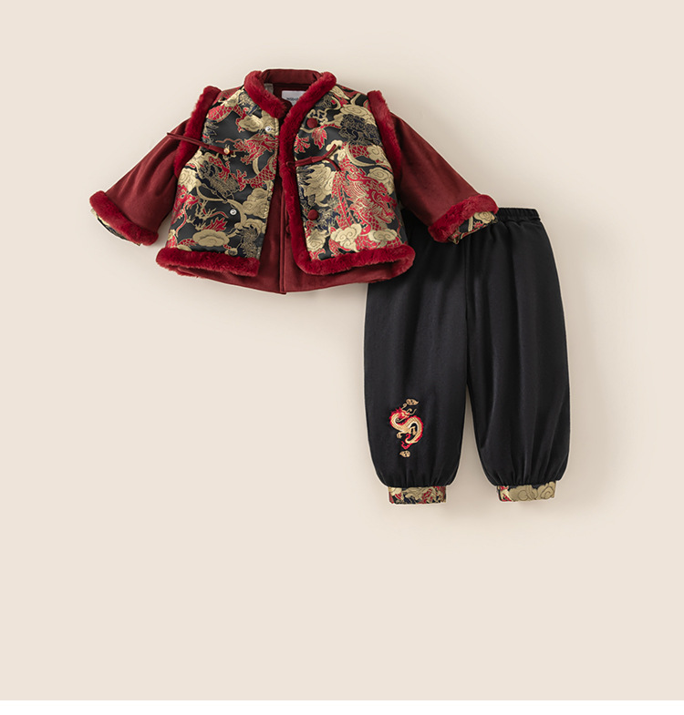Bangxuan 어린이 겨울 따뜻한 Guofeng 세트 소년들의 새해 새 중국 자수 Burr Edge 3 피스 세트