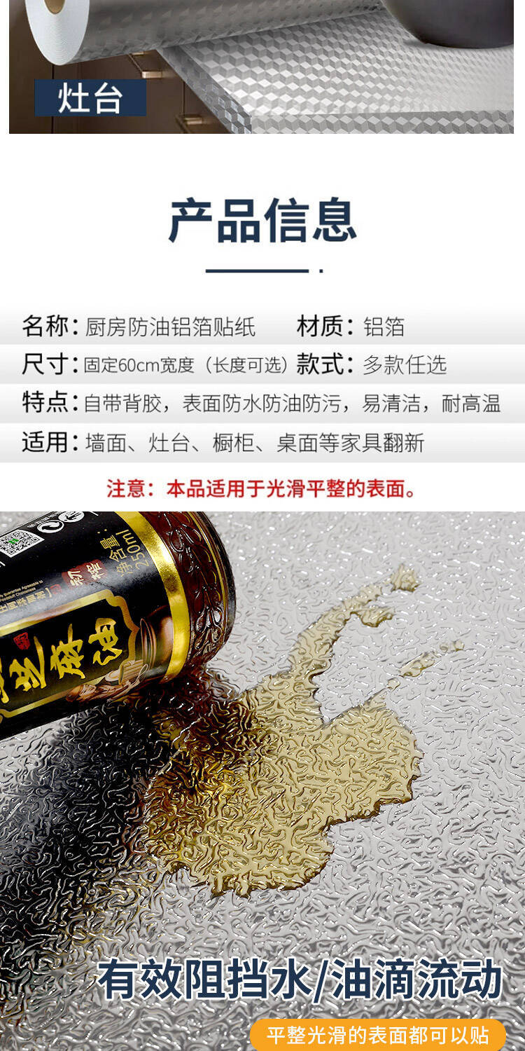 주방 방유 스티커, 고온 방지 캐비닛, 방수 및 방습 자체 접착 벽지, 주석 호일, 알루미늄 호일, 미려한 물건을 덮는 용품