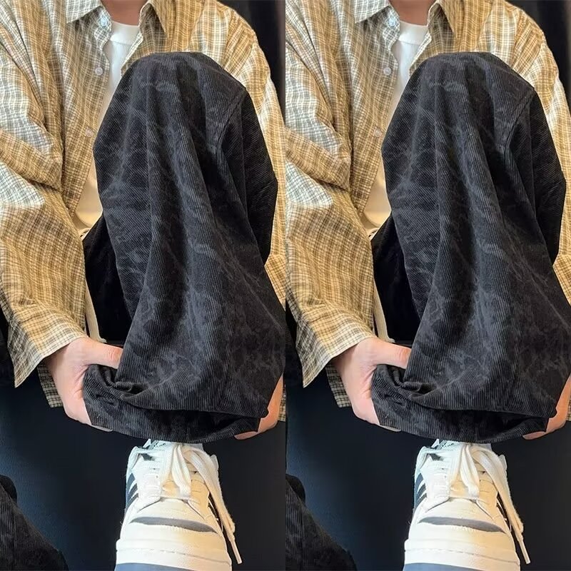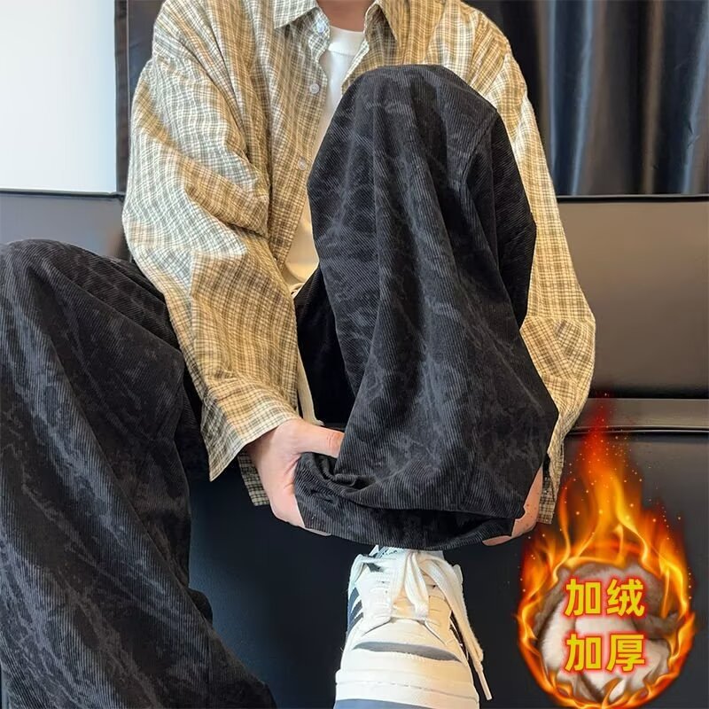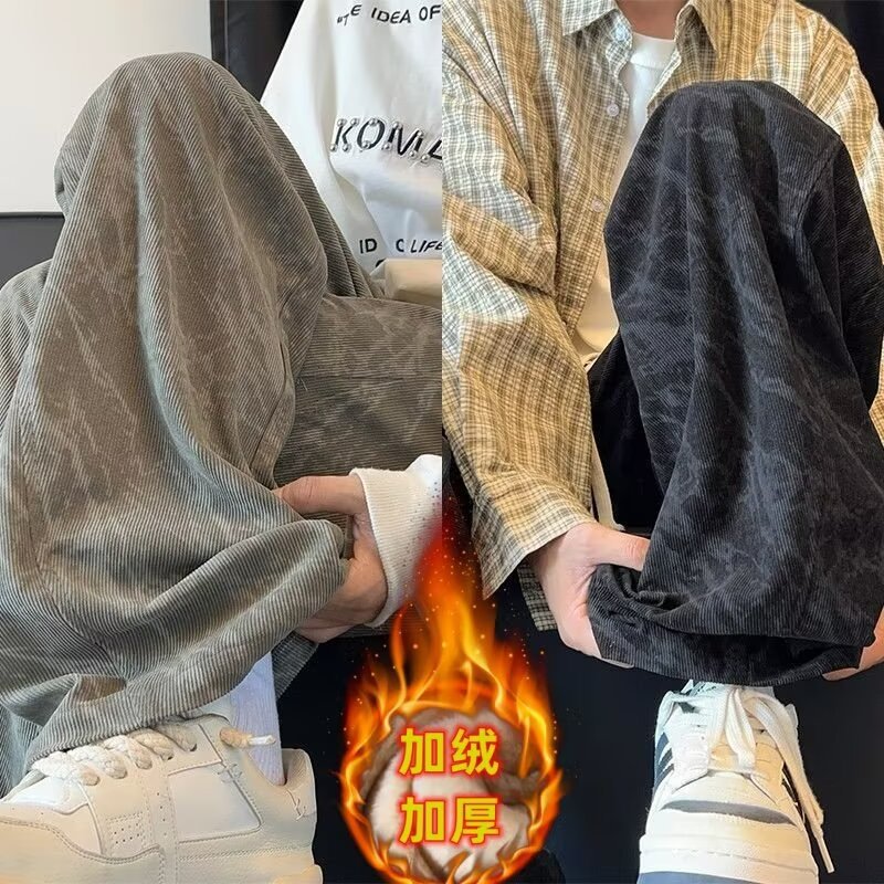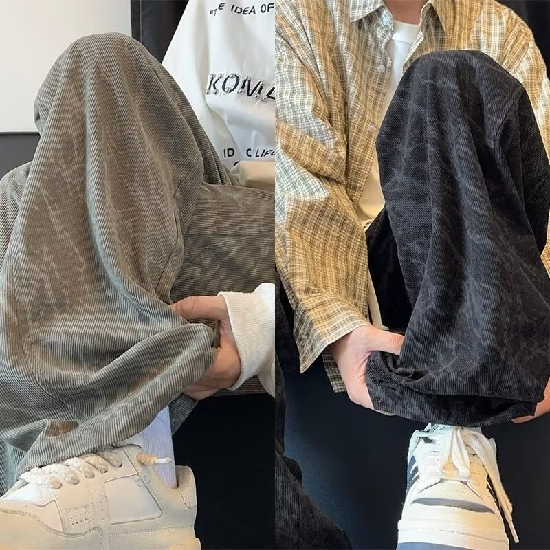 넥타이 염색 코듀로이 바지 남자 봄과 가을 스트레이트 느슨한 넓은 다리 바지 미국 캐주얼 남성 바지 더러운 바지스토어 가기