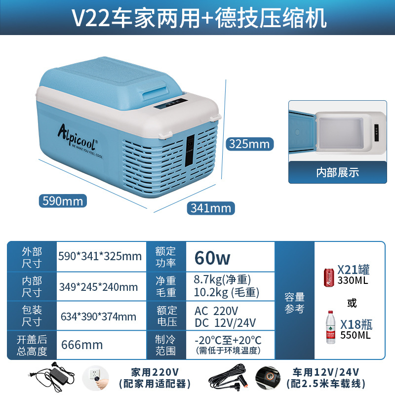 아이스 타이거 자동차 냉장고 압축기 냉동 12V24V 이중 도어 이중 온도 이중 제어 자동차 홈 이중 목적 소형 냉장고