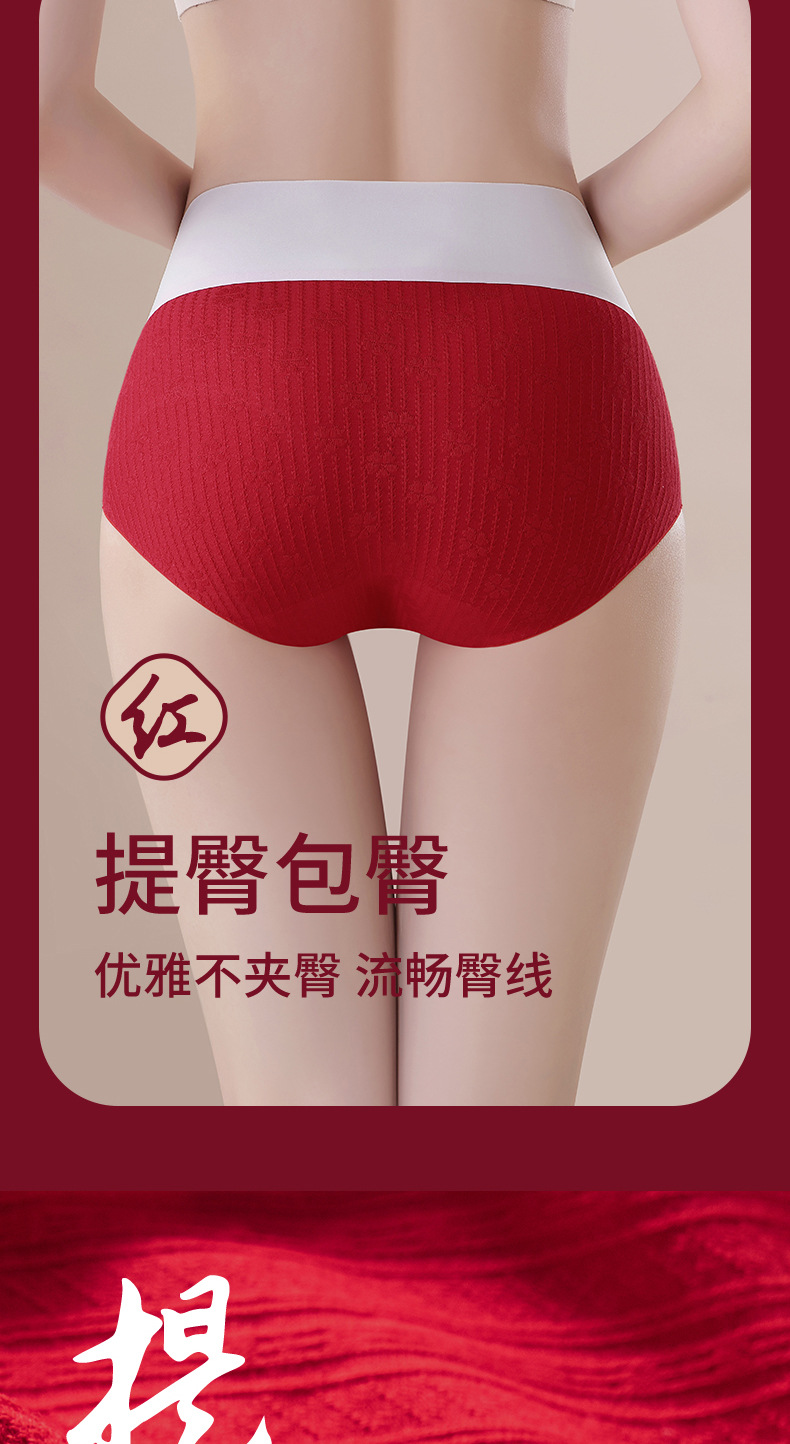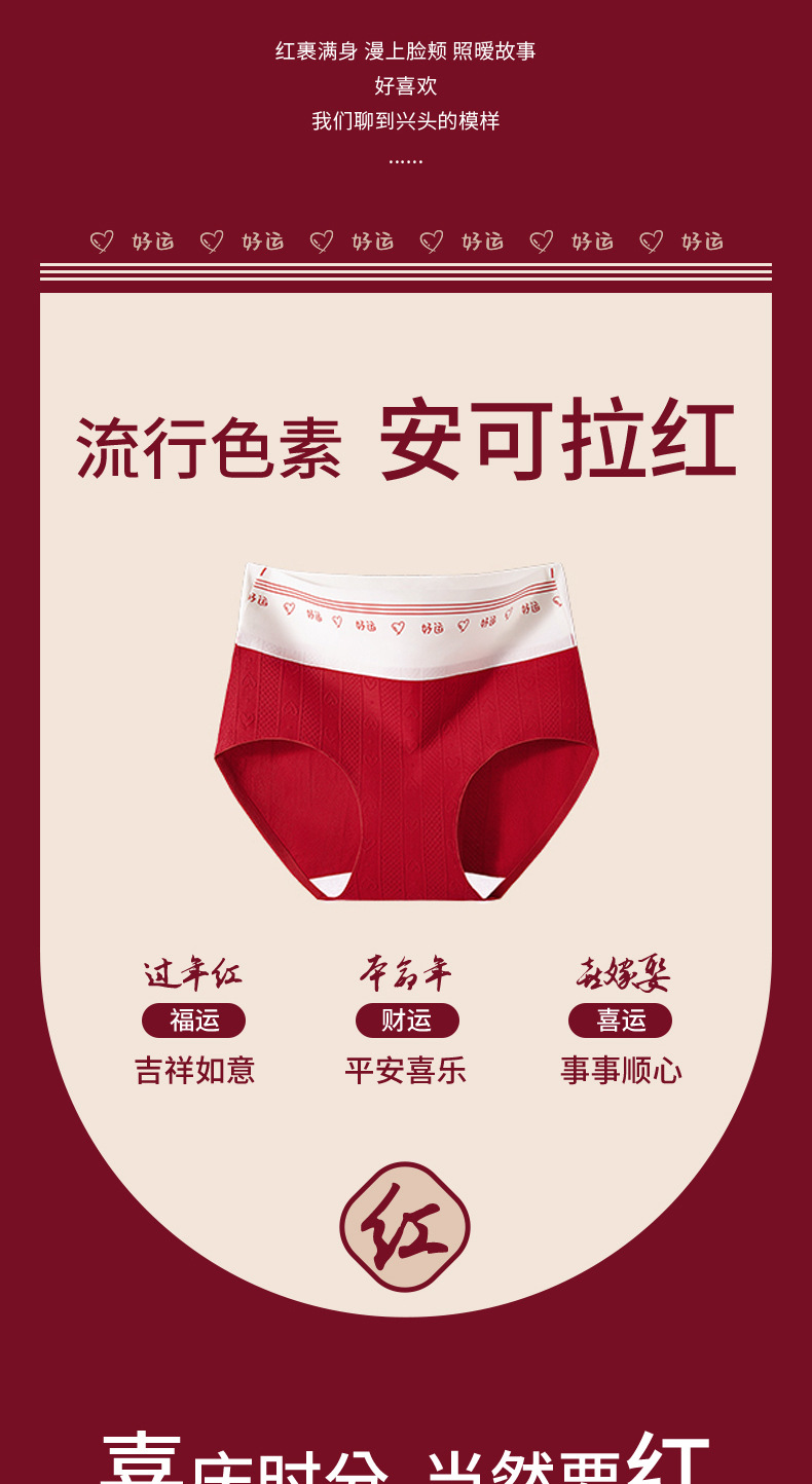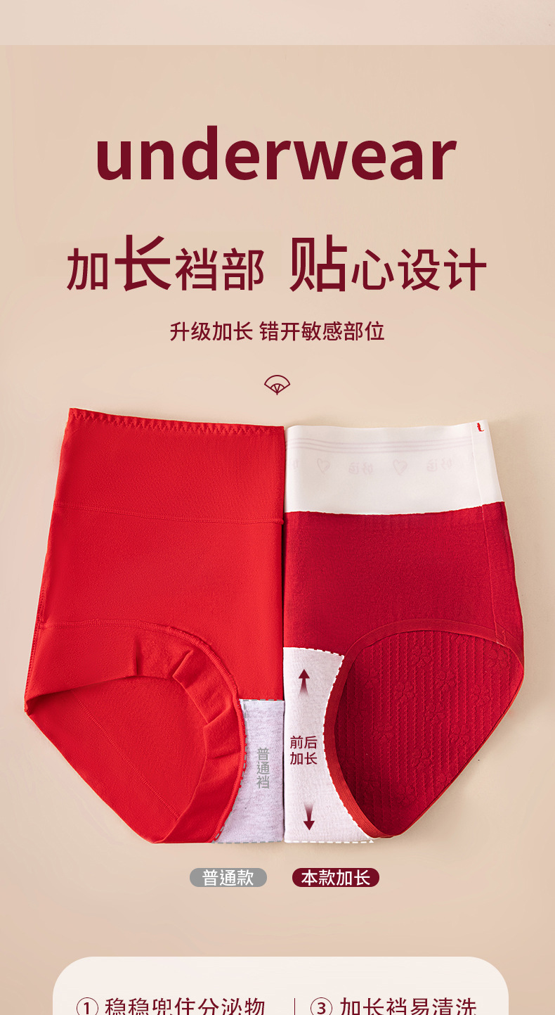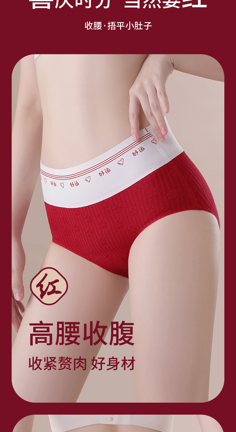 안코 라 레드 코튼 속옷 여성용 하이 허리 벨리 폐쇄 브리프 마모 방지 레이어드 크로치 웨딩 페스티벌 속옷스토어 가기