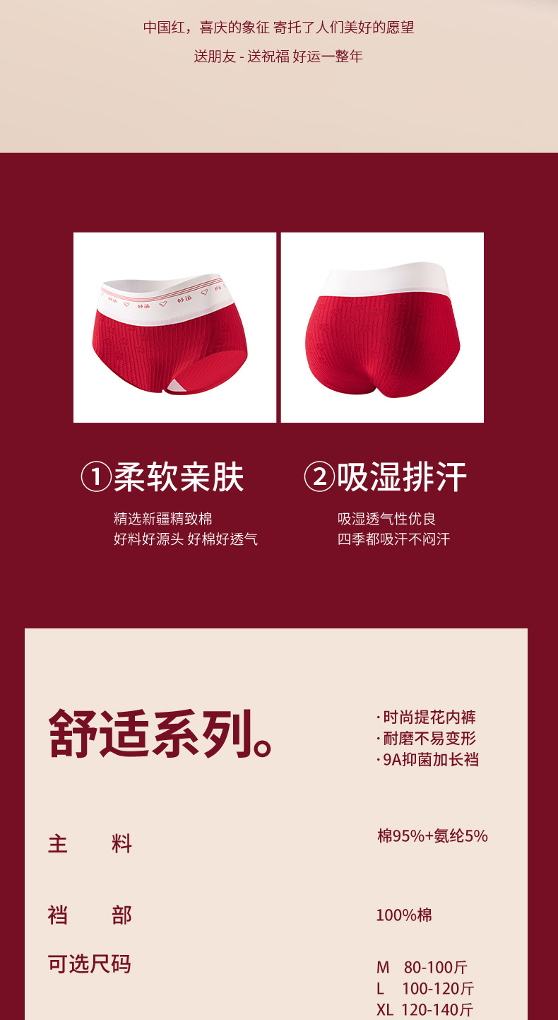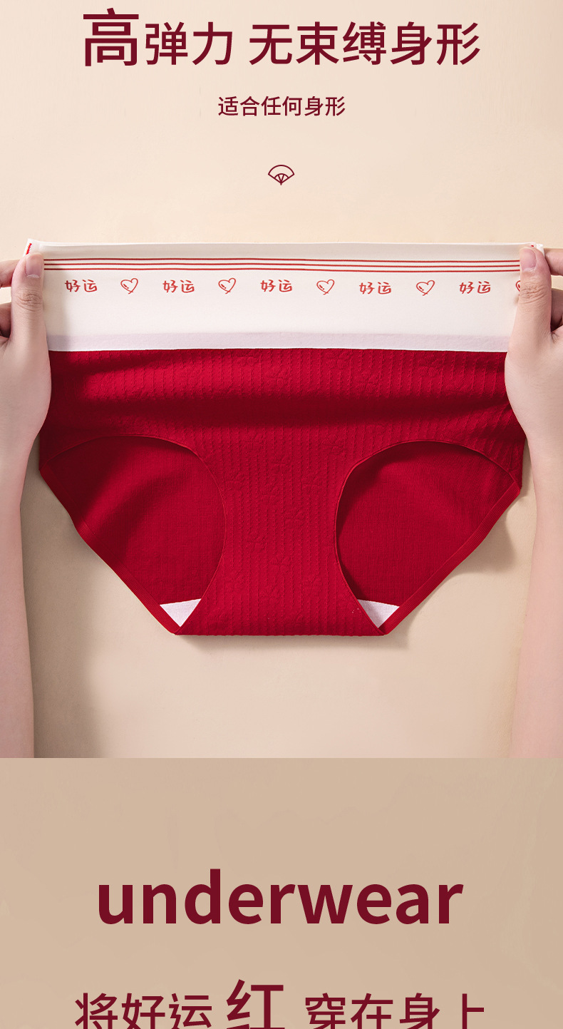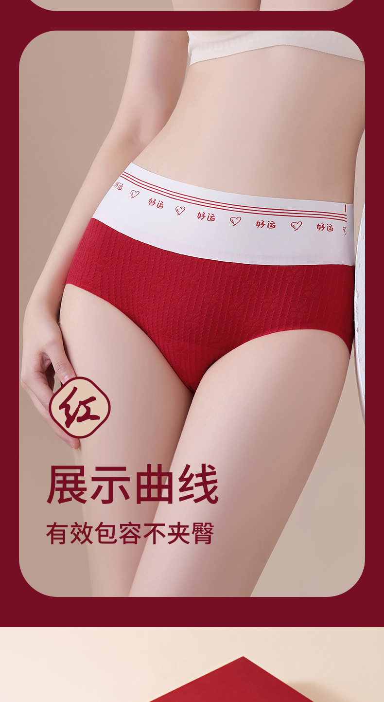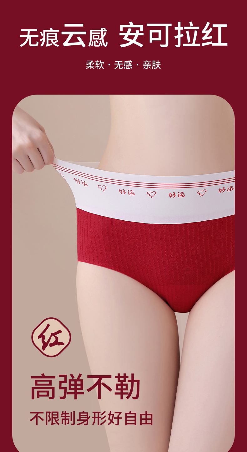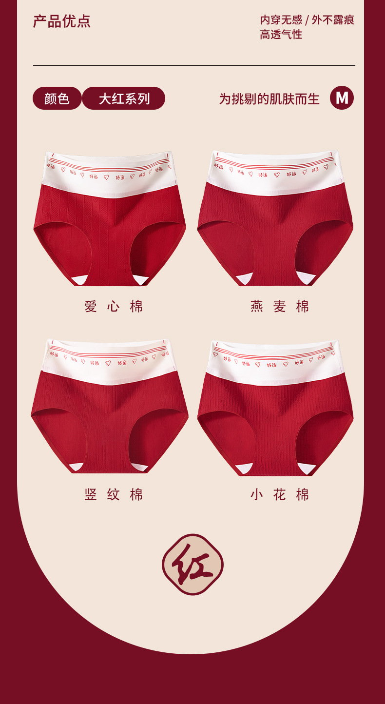 안코 라 레드 코튼 속옷 여성용 하이 허리 벨리 폐쇄 브리프 마모 방지 레이어드 크로치 웨딩 페스티벌 속옷스토어 가기