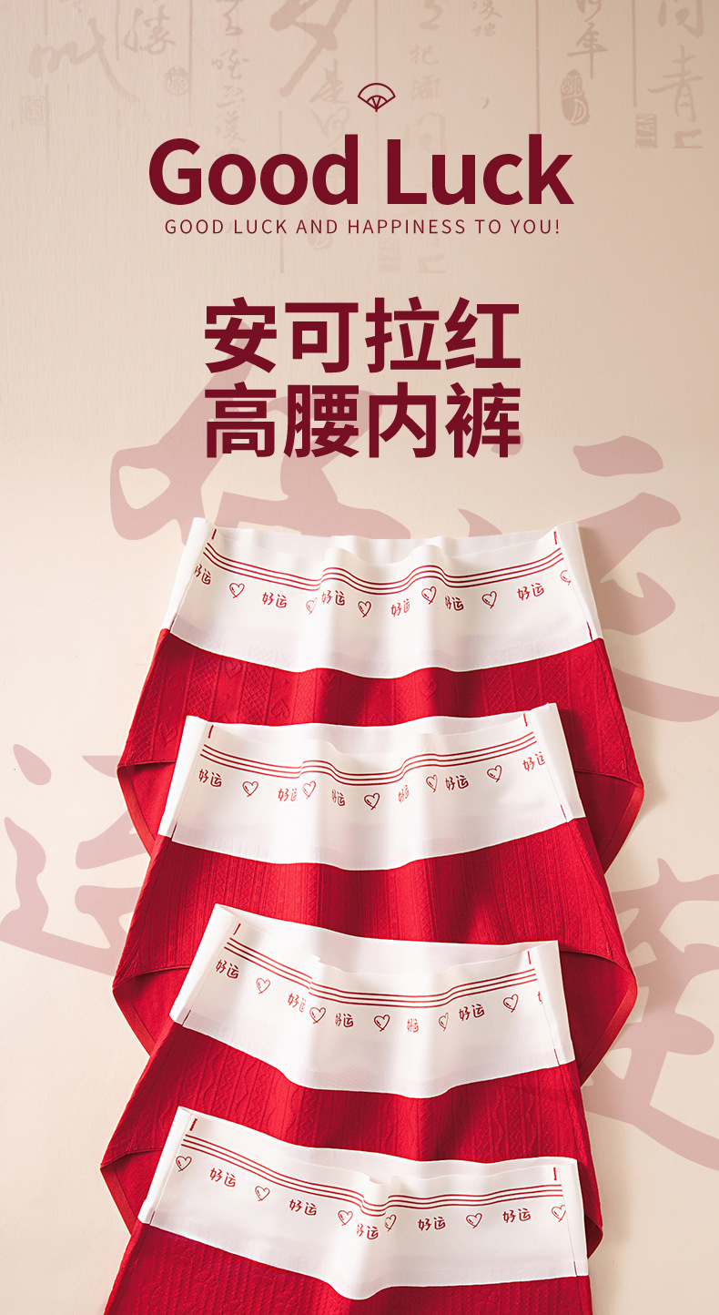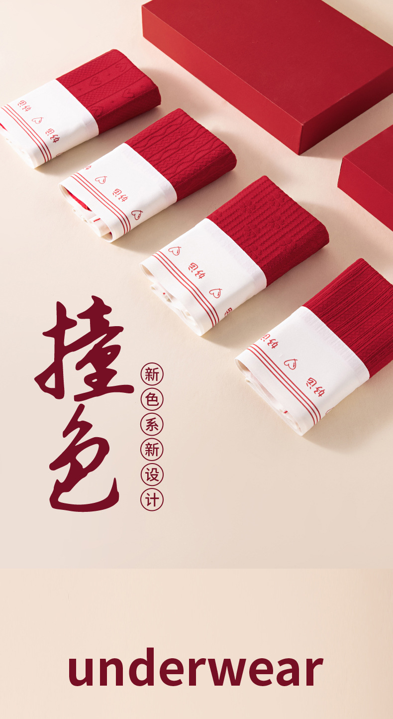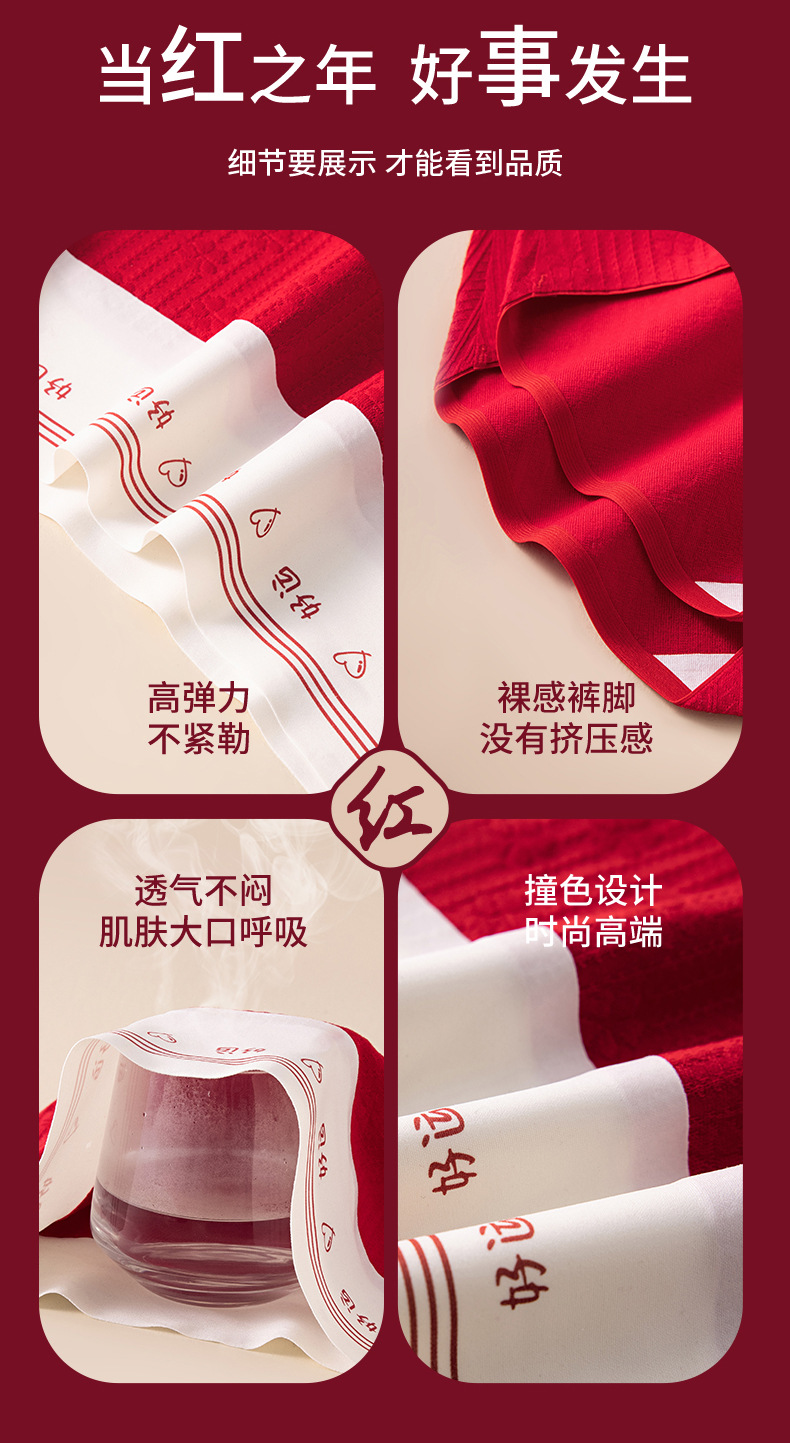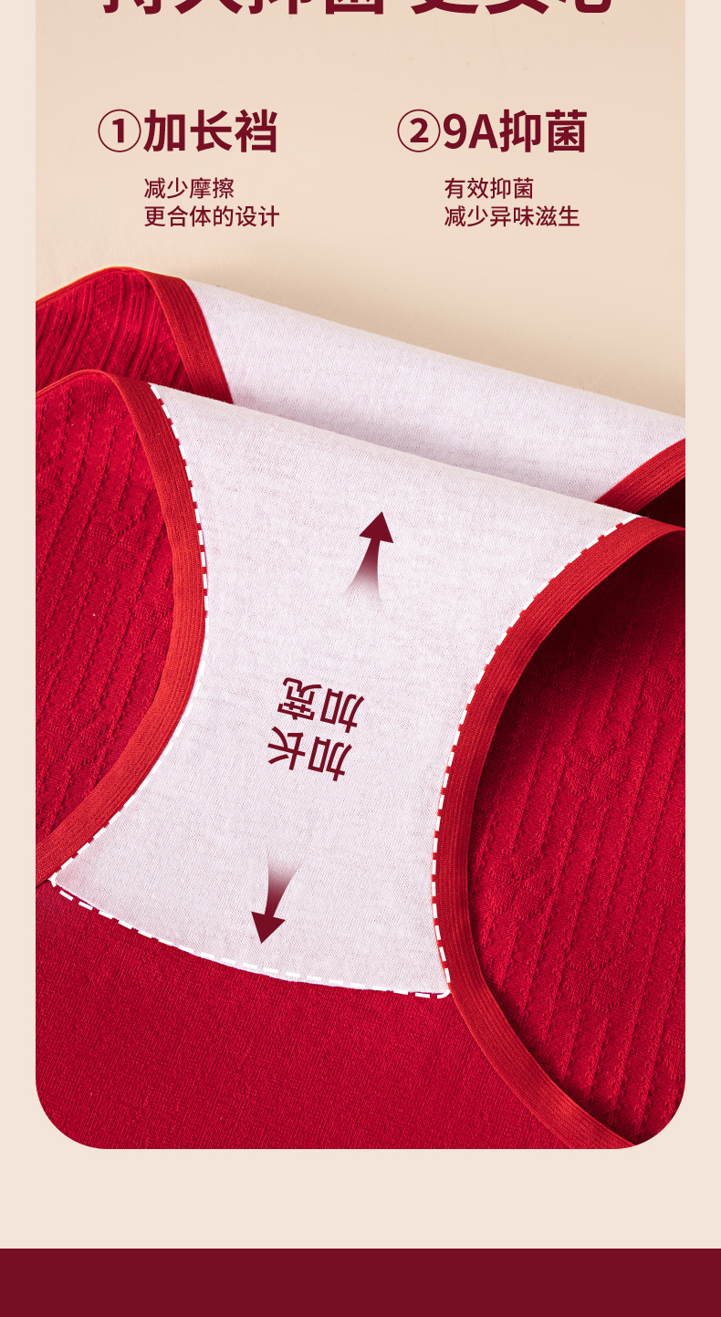 안코 라 레드 코튼 속옷 여성용 하이 허리 벨리 폐쇄 브리프 마모 방지 레이어드 크로치 웨딩 페스티벌 속옷스토어 가기