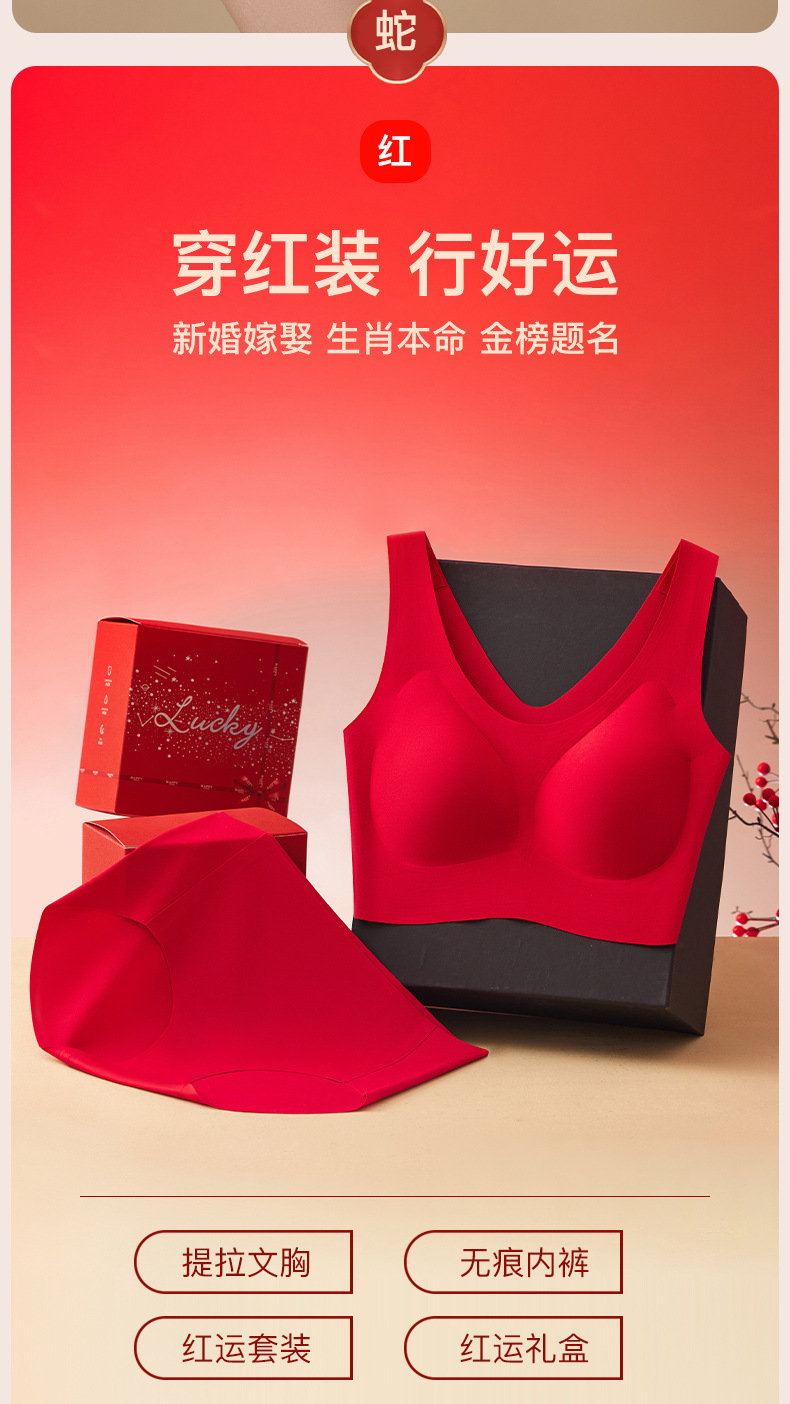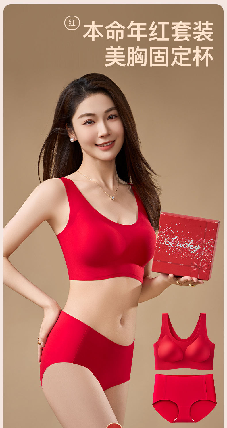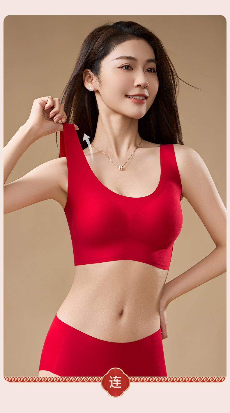 브림 니안 빅 레드 트레이스 브라 속옷 세트 여성용 무자비한 모임 편안한 결혼식 새해 브래지어