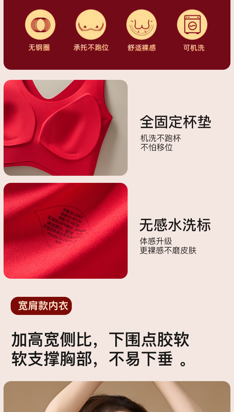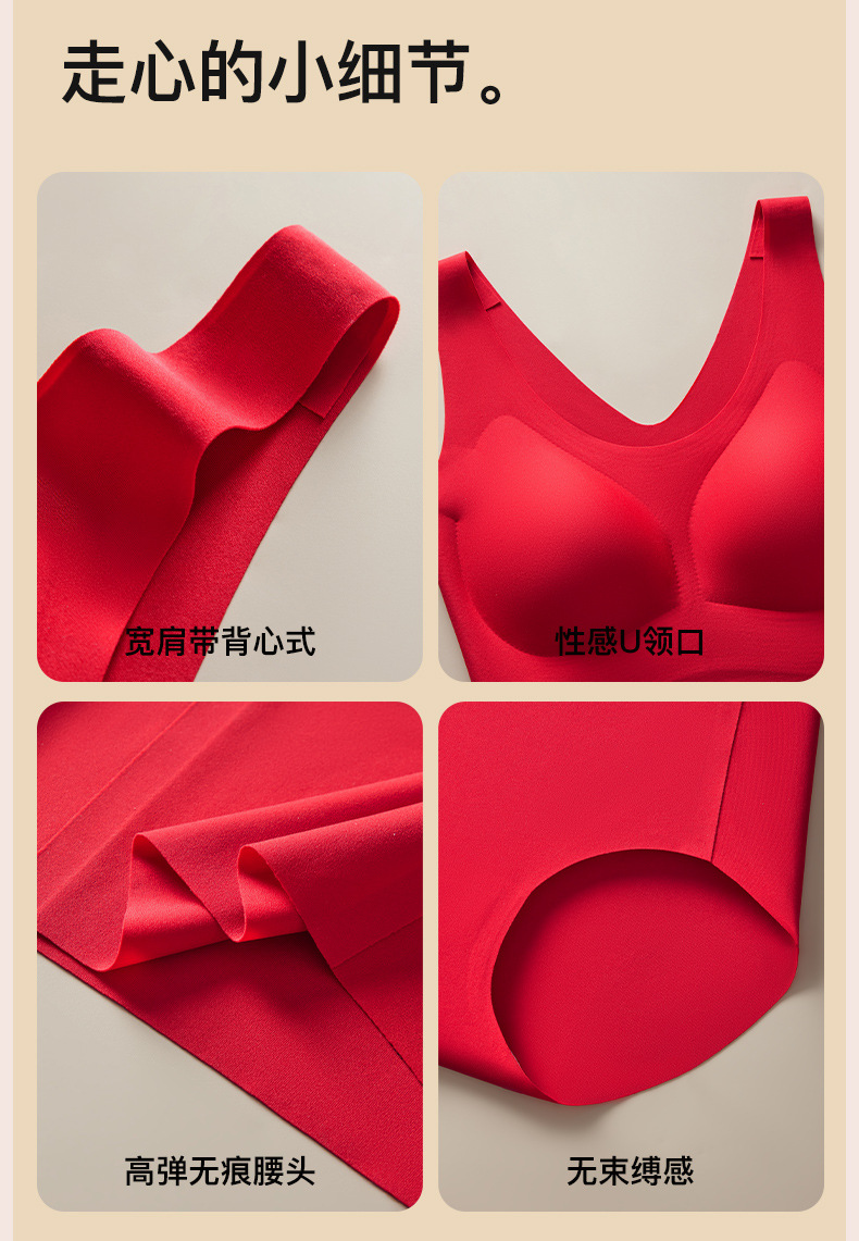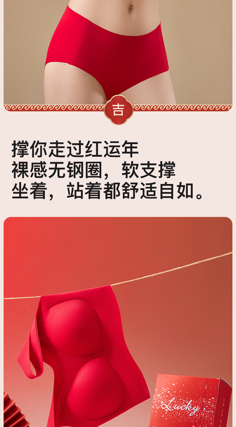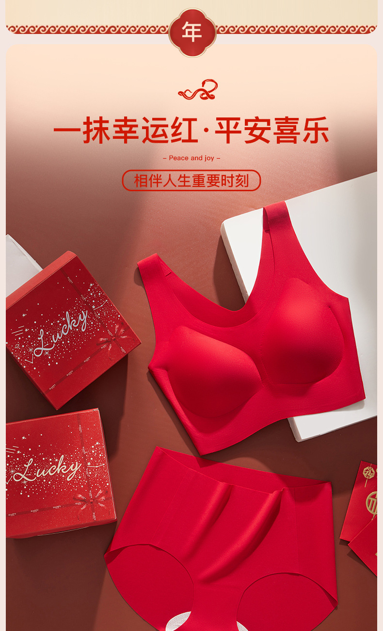 브림 니안 빅 레드 트레이스 브라 속옷 세트 여성용 무자비한 모임 편안한 결혼식 새해 브래지어