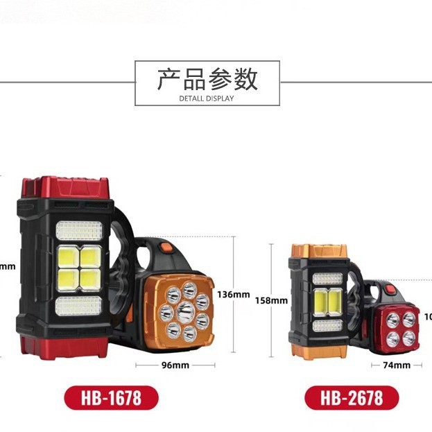 태양 에너지 2 헤드 휴대용 램프 가정용 비상 외부 강한 빛 충전 led 손전등 USB 듀얼 광원 캠핑 서치 라이트