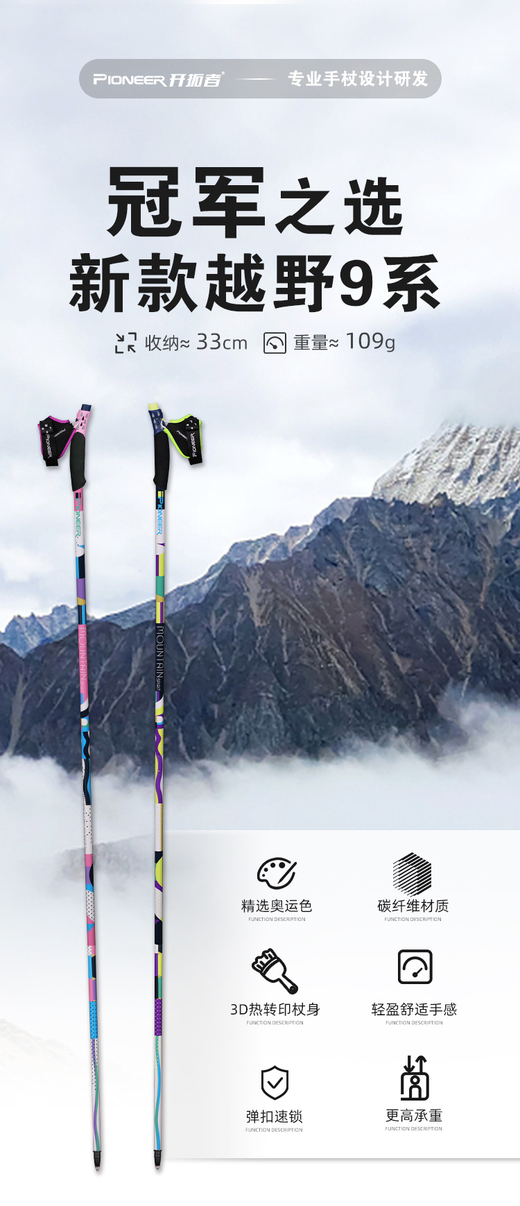 2025 새로운 트레일 블레이저 크로스 컨트리 핸드 파이터 99% 탄소 섬유 폴딩 클라이머 스틱 탄소 초경량 클라이머 스틱