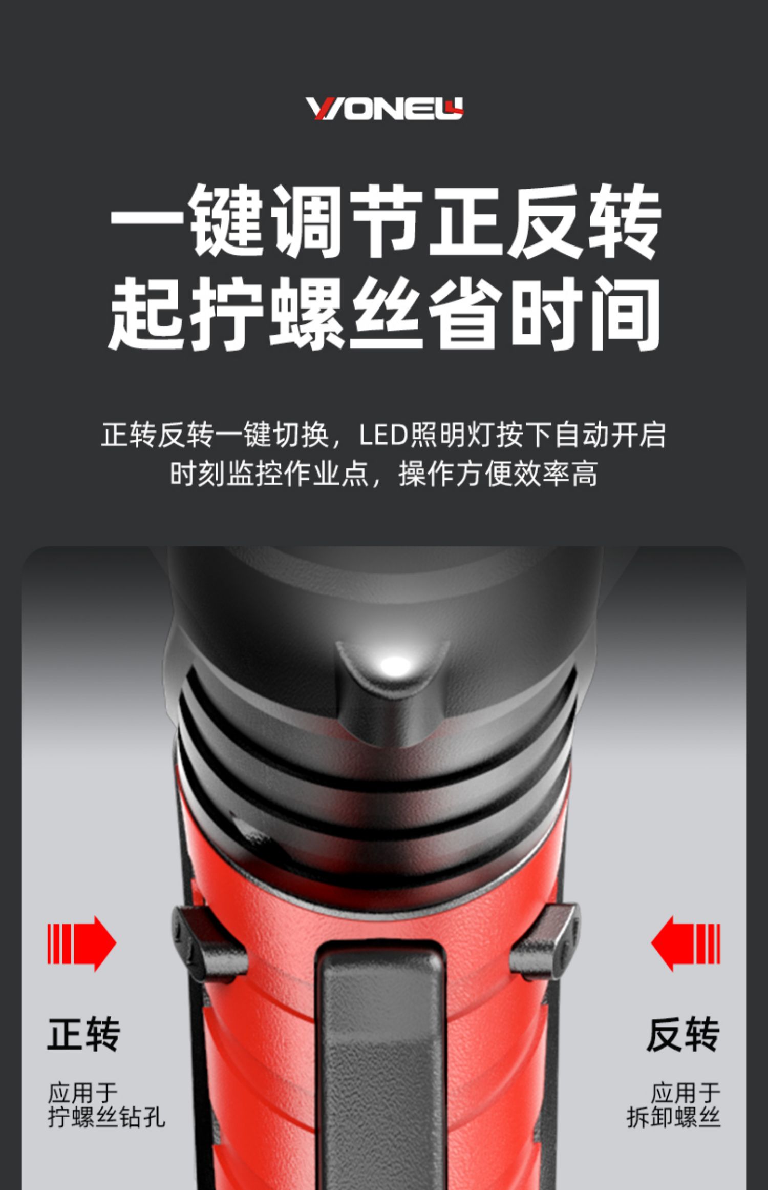 • 다양한 작업 요구 사항을 충족하기 위해 본체를 회전할 수 있는 정방향 및 역방향 조정 기능이 있는 독일 전동 드라이버