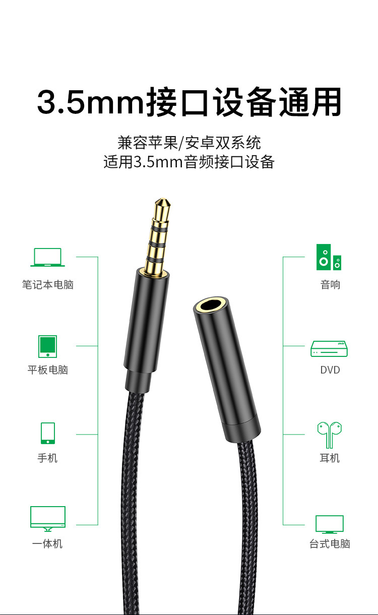 Aux 남성 대 여성 3.5 오디오 확장 케이블 오디오 케이블 연장 헤드폰 컴퓨터 마이크 휴대 전화 연결 스피커 케이블