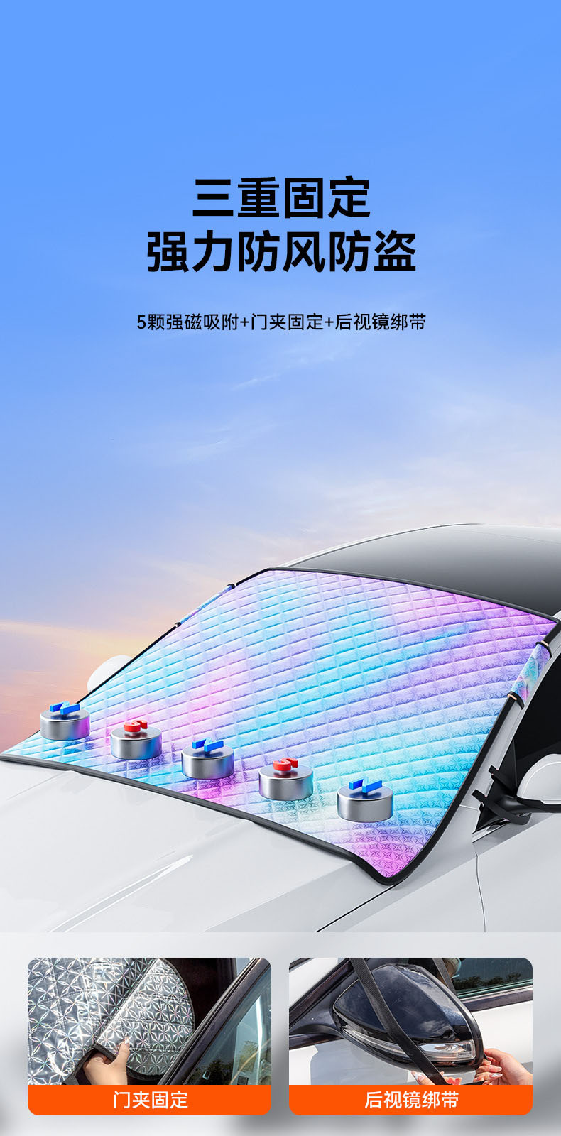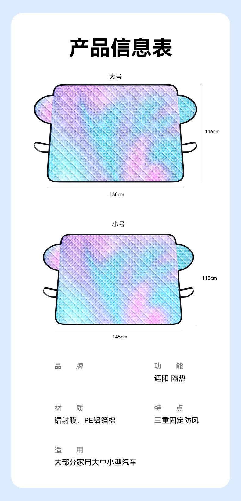 • 160-116cm 자석 없는 레이저 앞유리 햇빛 가리개 (백미러 거치 스트랩 포함)