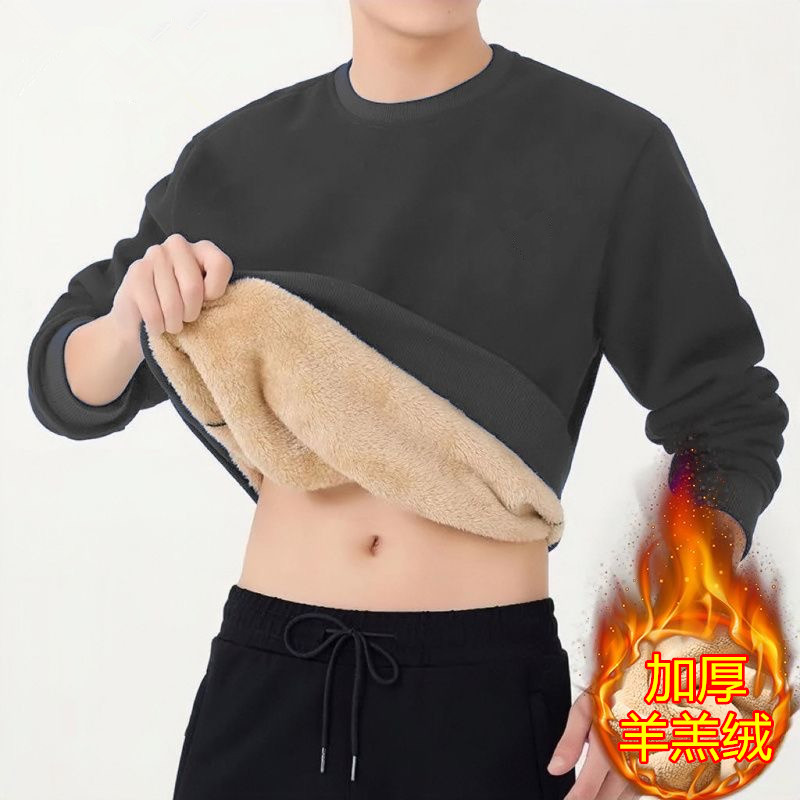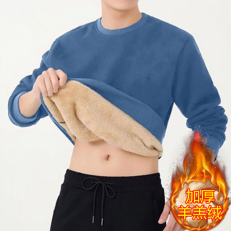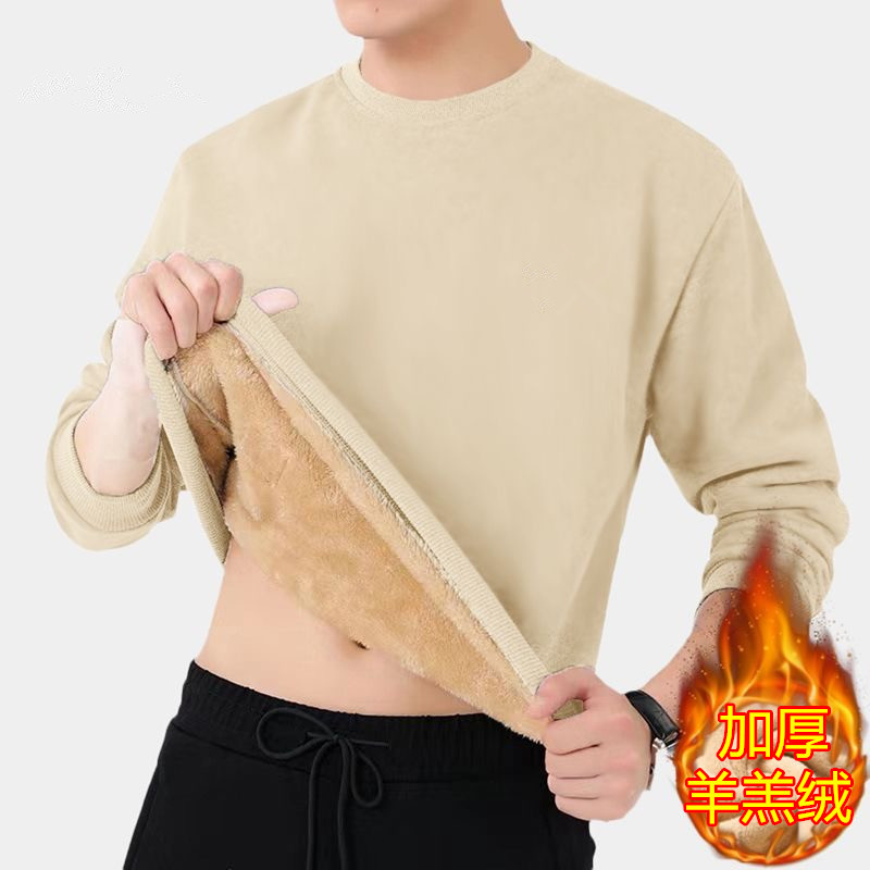 겨울 크루 넥 양가죽 스웨터 남자 기모 두꺼운 재킷 무거운 무게 따뜻한 면화 패딩 느슨한 풀오버베이스 셔츠스토어 가기
