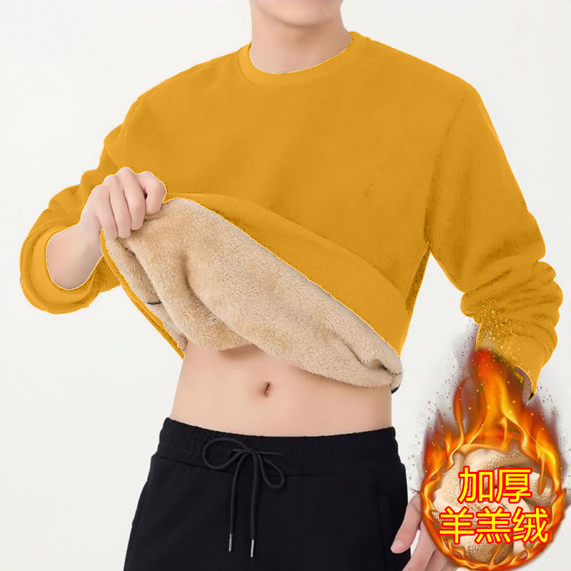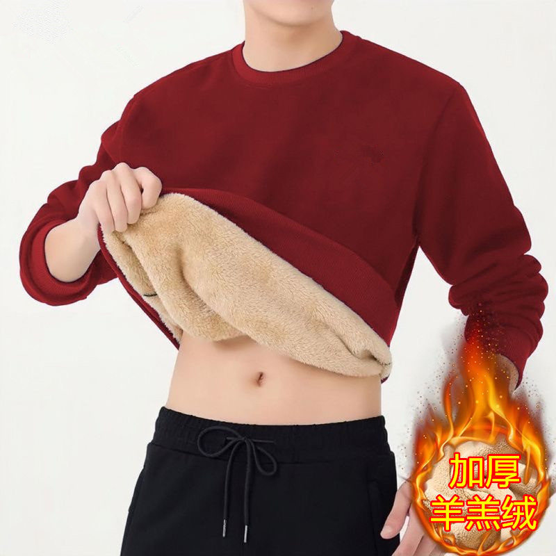 겨울 크루 넥 양가죽 스웨터 남자 기모 두꺼운 재킷 무거운 무게 따뜻한 면화 패딩 느슨한 풀오버베이스 셔츠