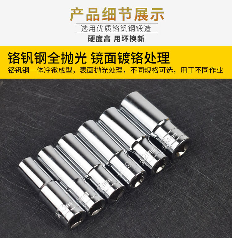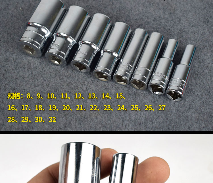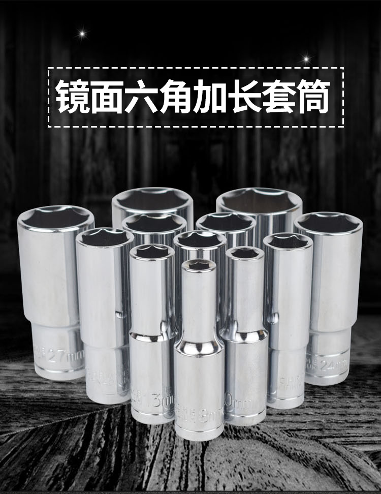 六角加长套筒头万能长套头汽修工具内六角套头棘轮扳手套筒