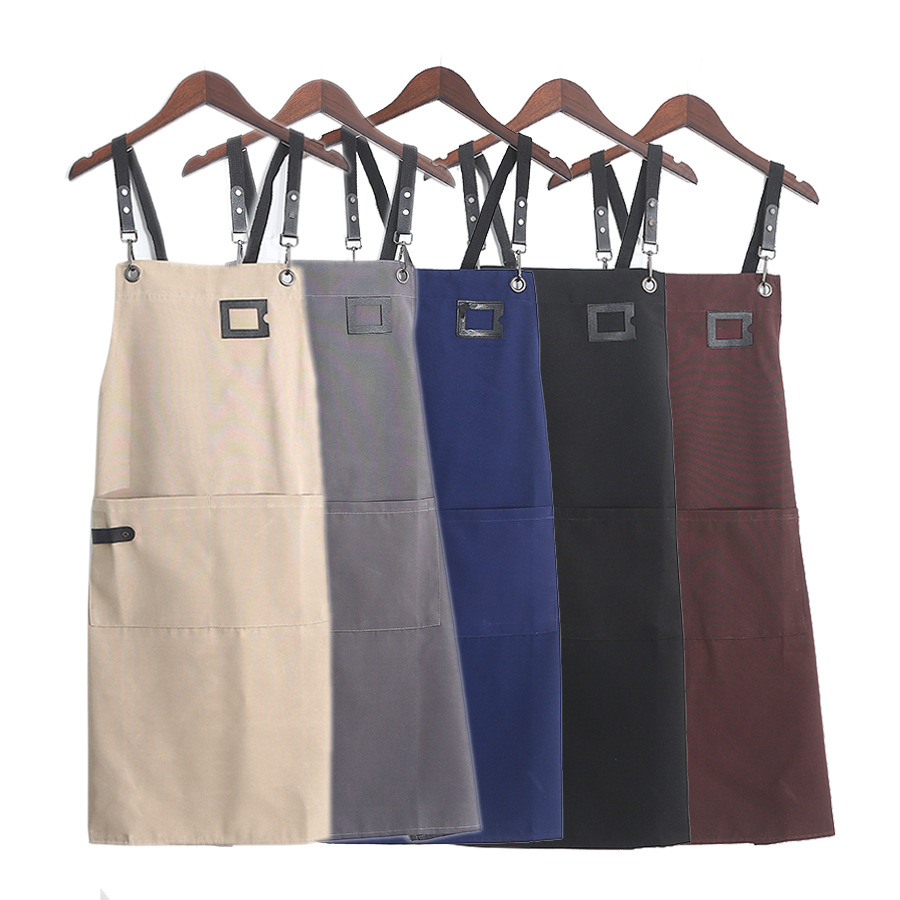 여성용 맞춤형 방수 작업복 앞치마 케이터링용 캔버스 앞치마 특수 로고 인쇄 매니큐어 밀크티 샵 과일 가게스토어 가기