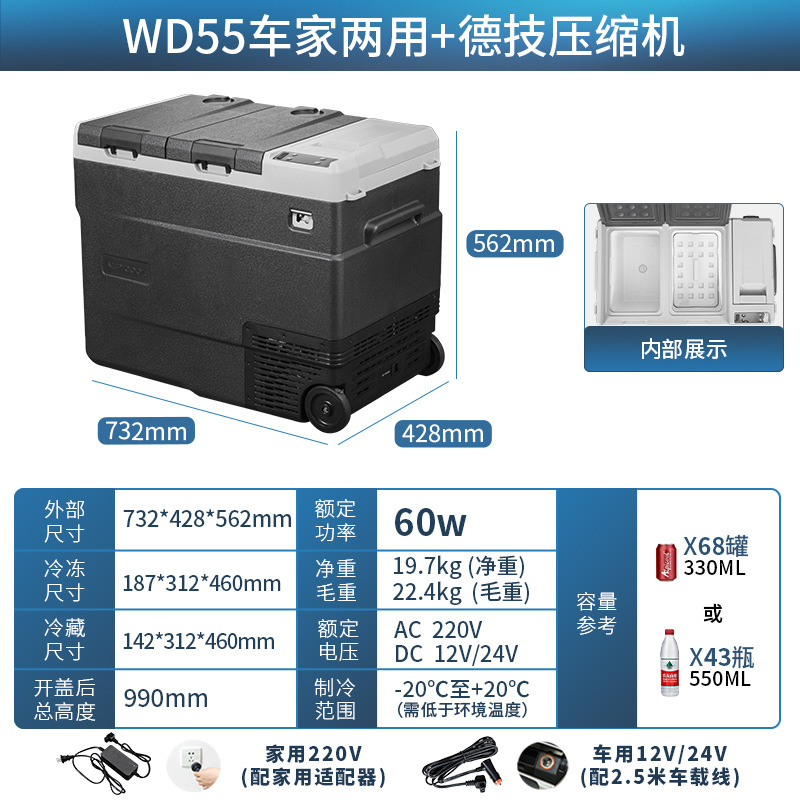 아이스 타이거 자동차 냉장고 압축기 냉동 12V24V 이중 도어 이중 온도 이중 제어 자동차 홈 이중 목적 소형 냉장고