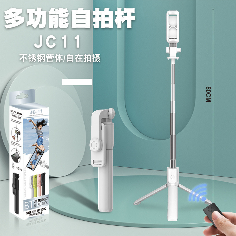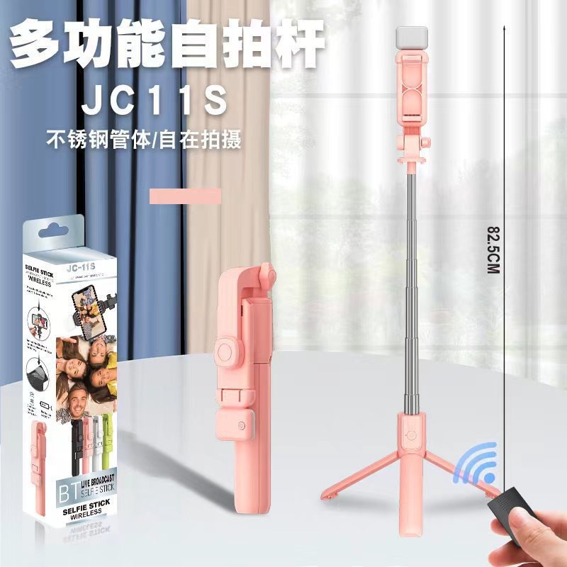 공장 도매 블루투스 셀카 스틱 채우기 빛 미니 스탠드 다기능 라이브 삼각대 휴대 전화 셀카 스틱스토어 가기