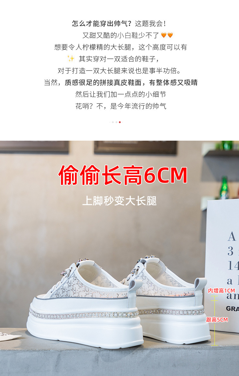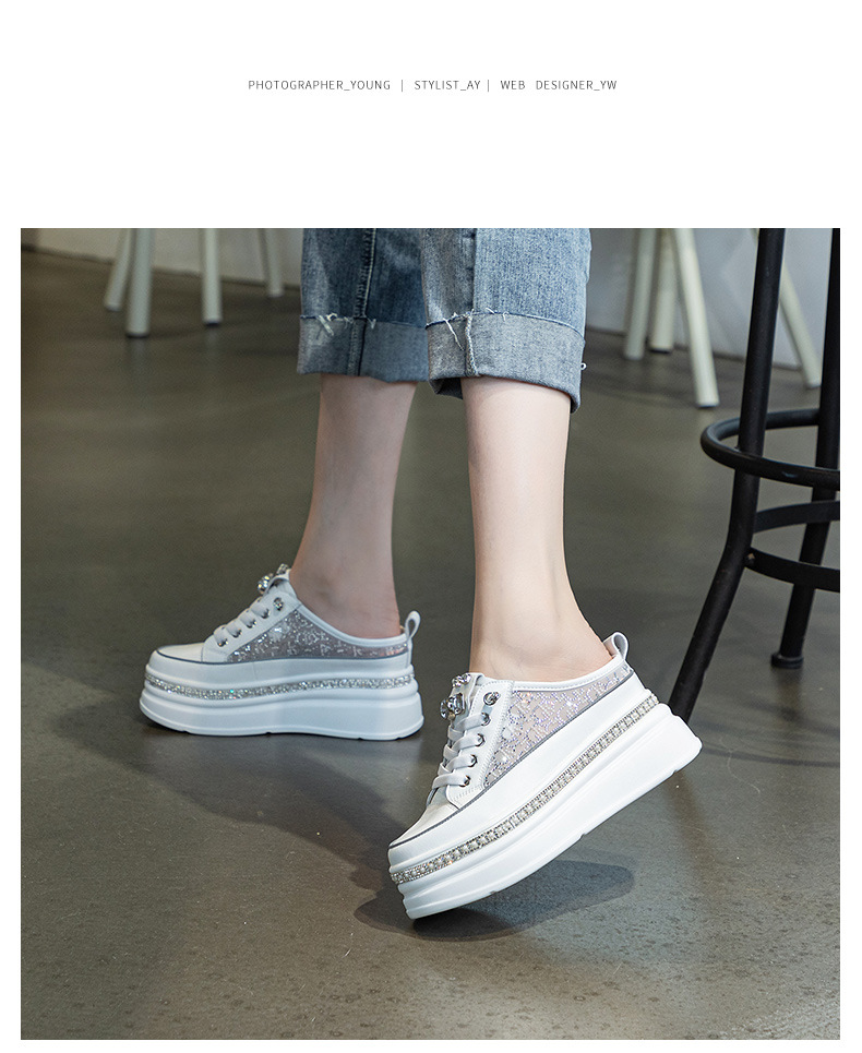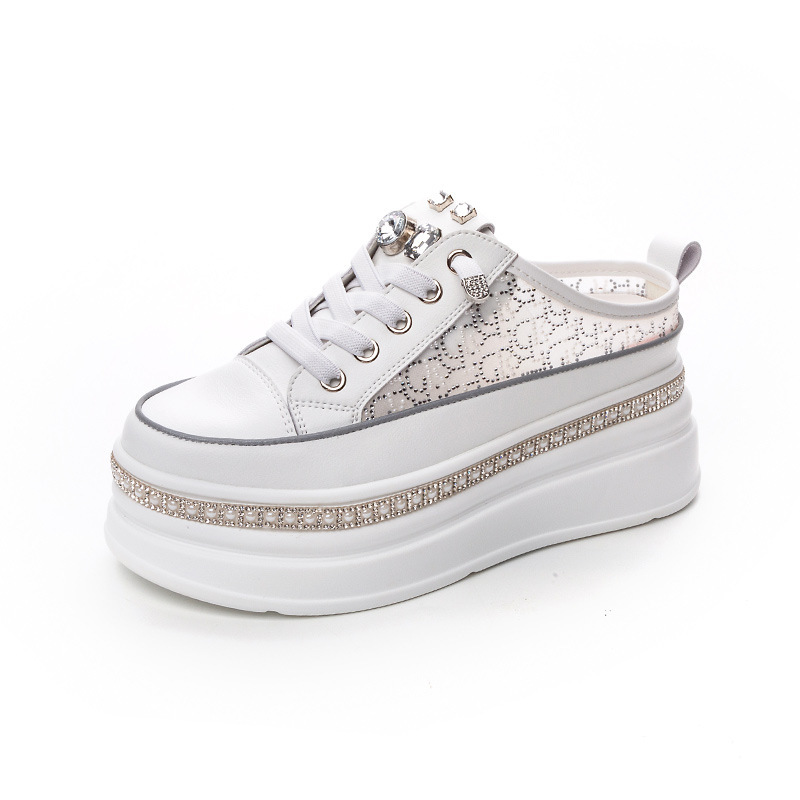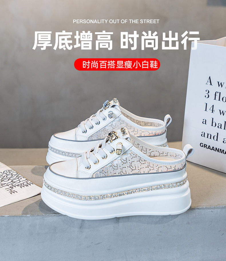 두꺼운 밑창의 흰색 신발 2025 여름 신상 메쉬 슬리퍼 인기 키높이 앞코가 덮인 외출용 캐주얼 여성 신발스토어 가기