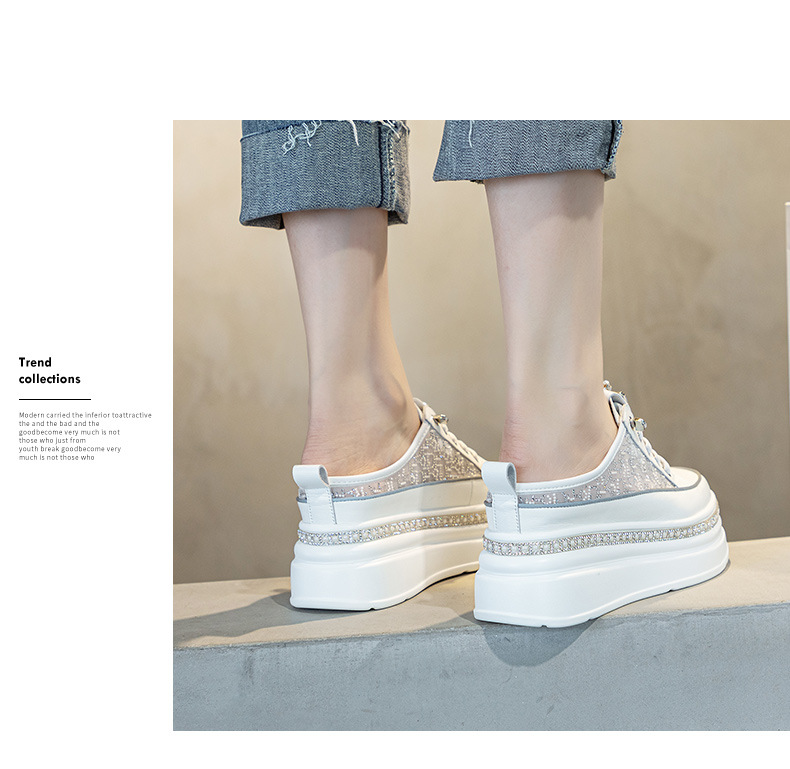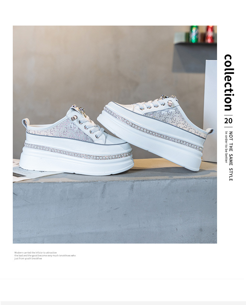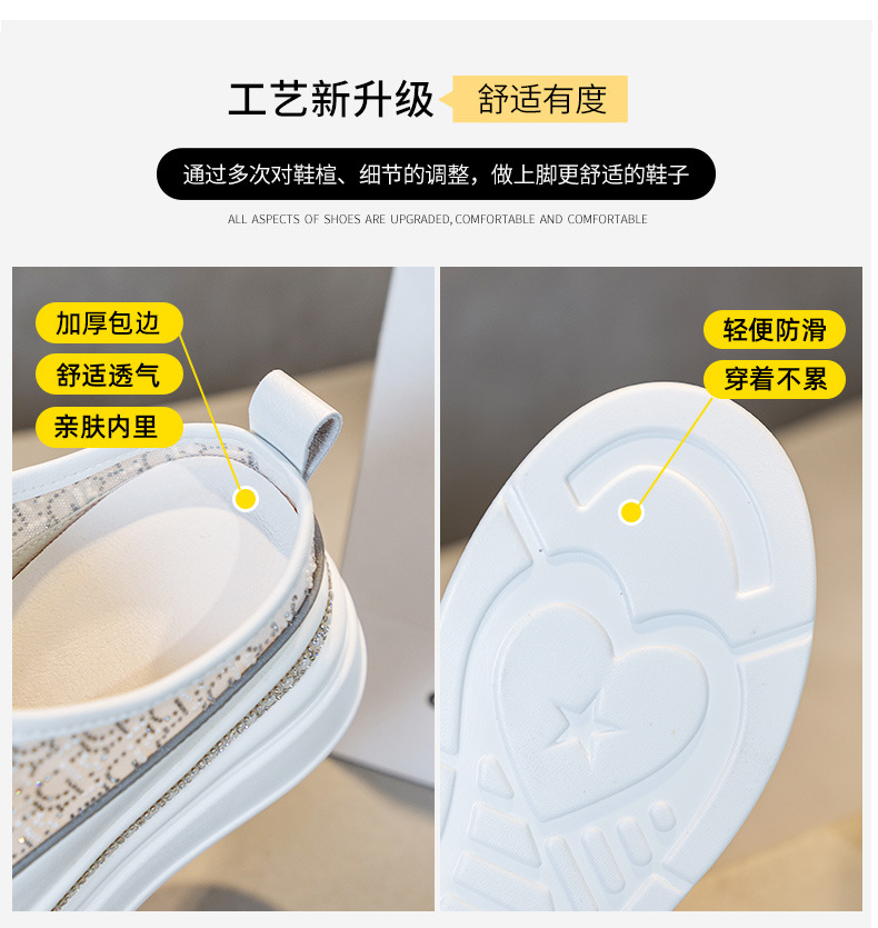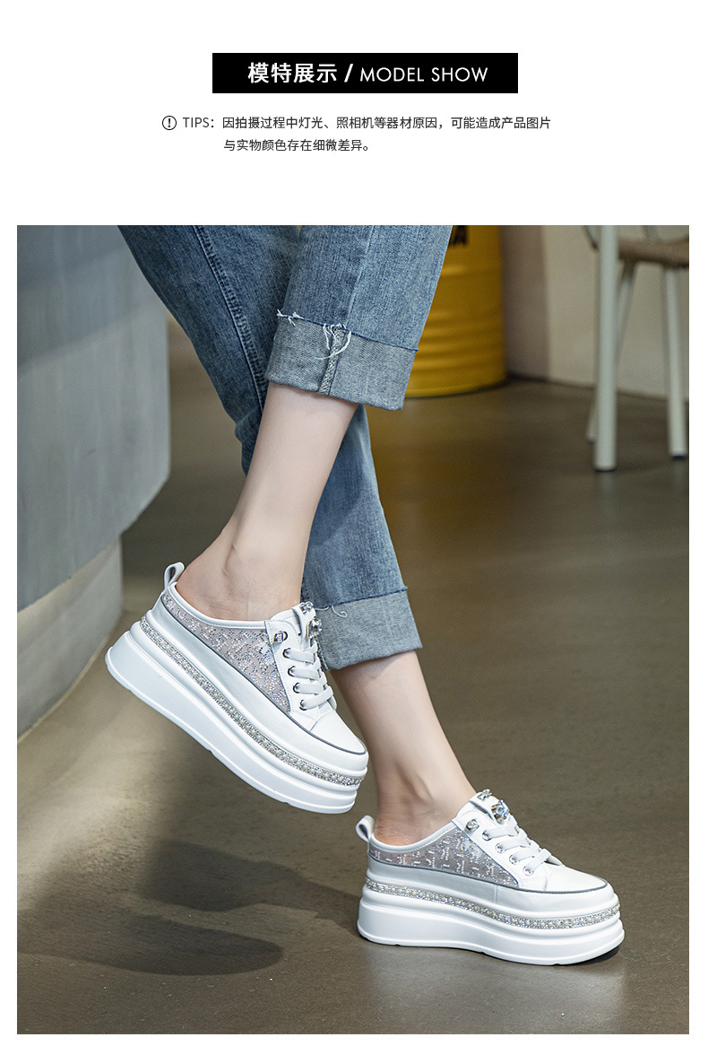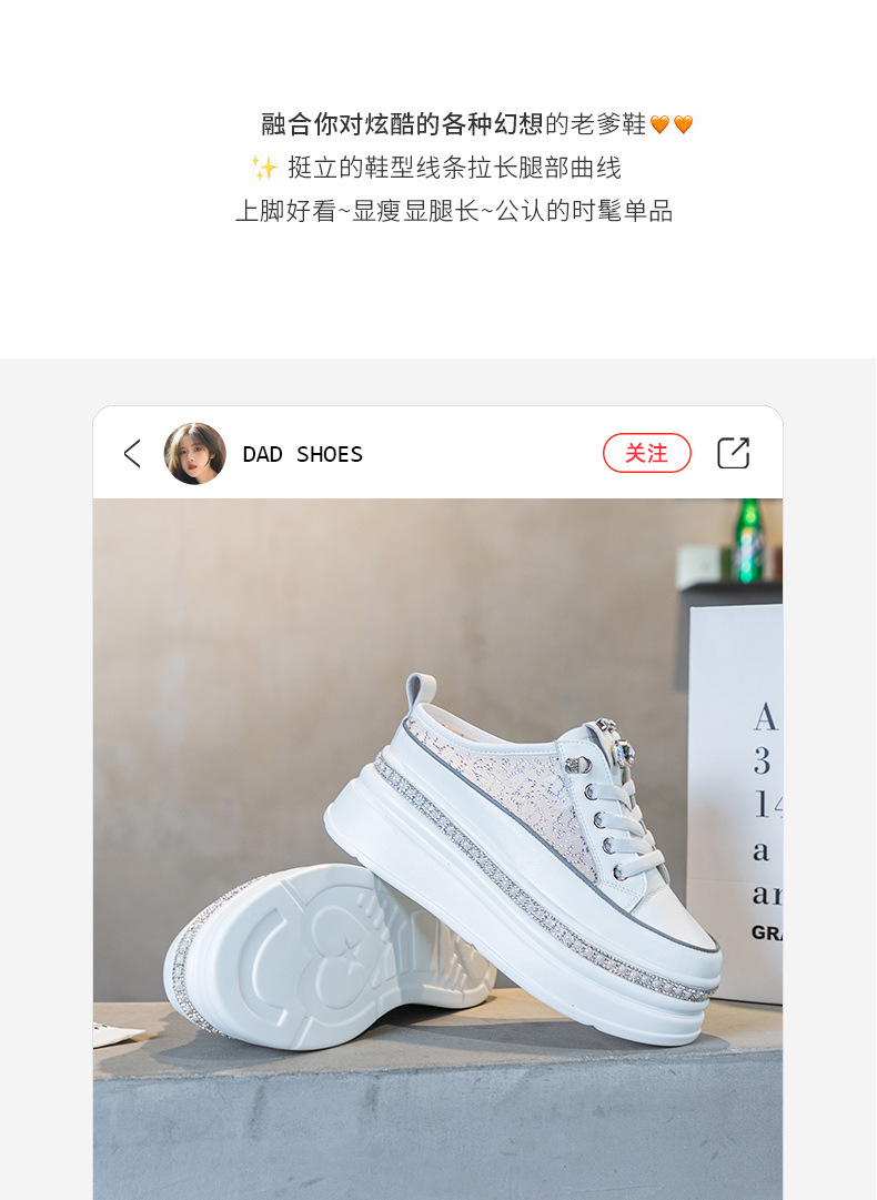 두꺼운 밑창의 흰색 신발 2025 여름 신상 메쉬 슬리퍼 인기 키높이 앞코가 덮인 외출용 캐주얼 여성 신발스토어 가기