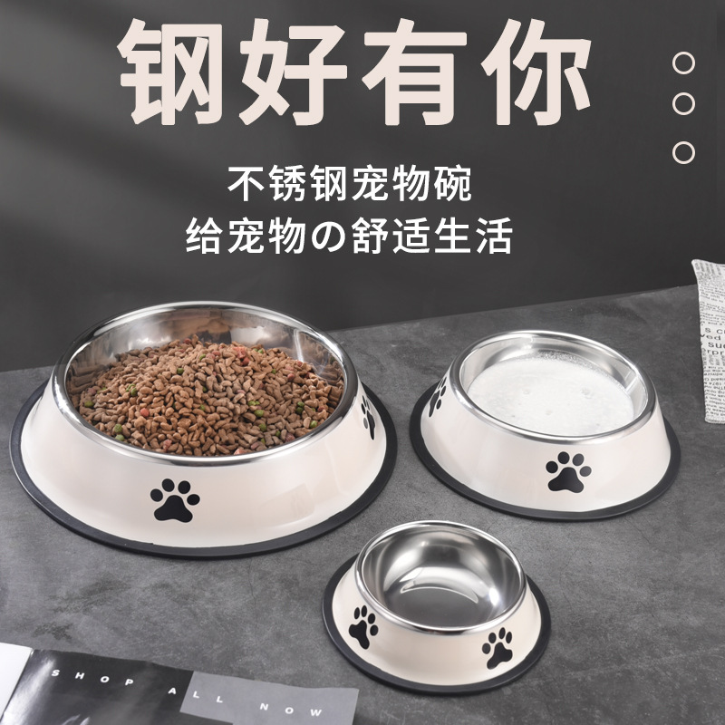 밀크 화이트 다크 그레이 인쇄 개 그릇 애완 동물 미끄럼 방지 그릇 개 고양이 그릇 고양이 그릇 스테인리스 개 식품 그릇 밥 그릇스토어 가기