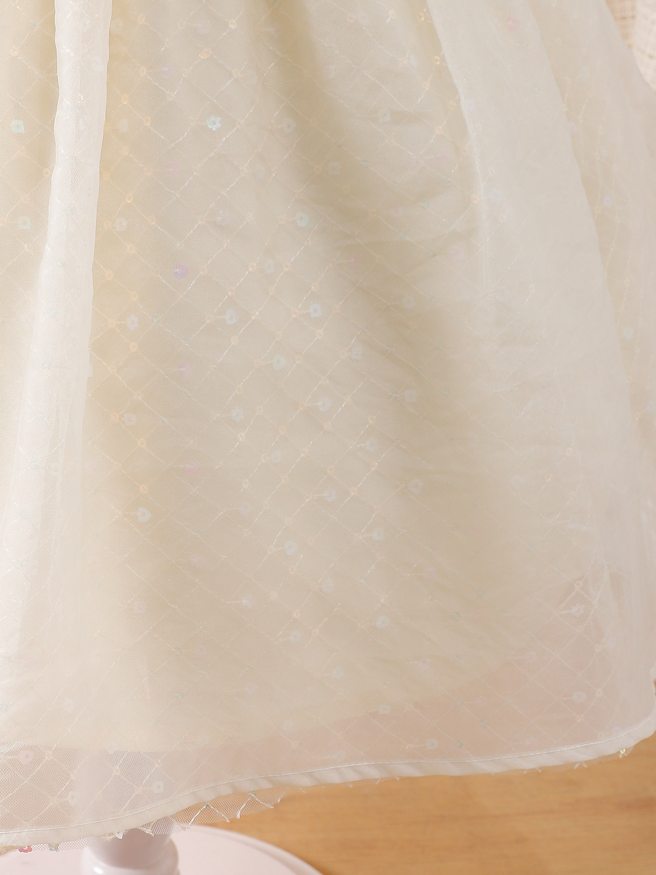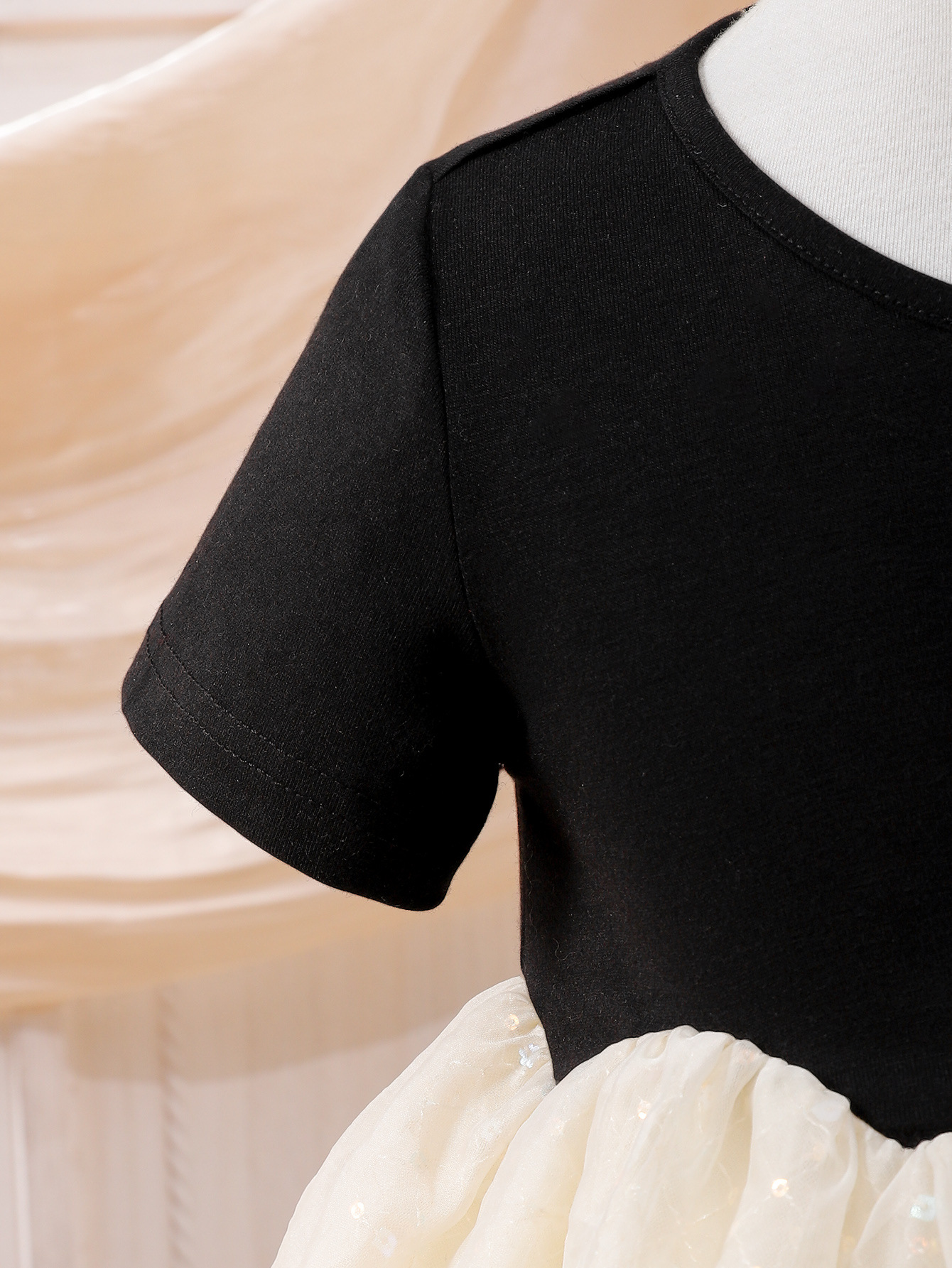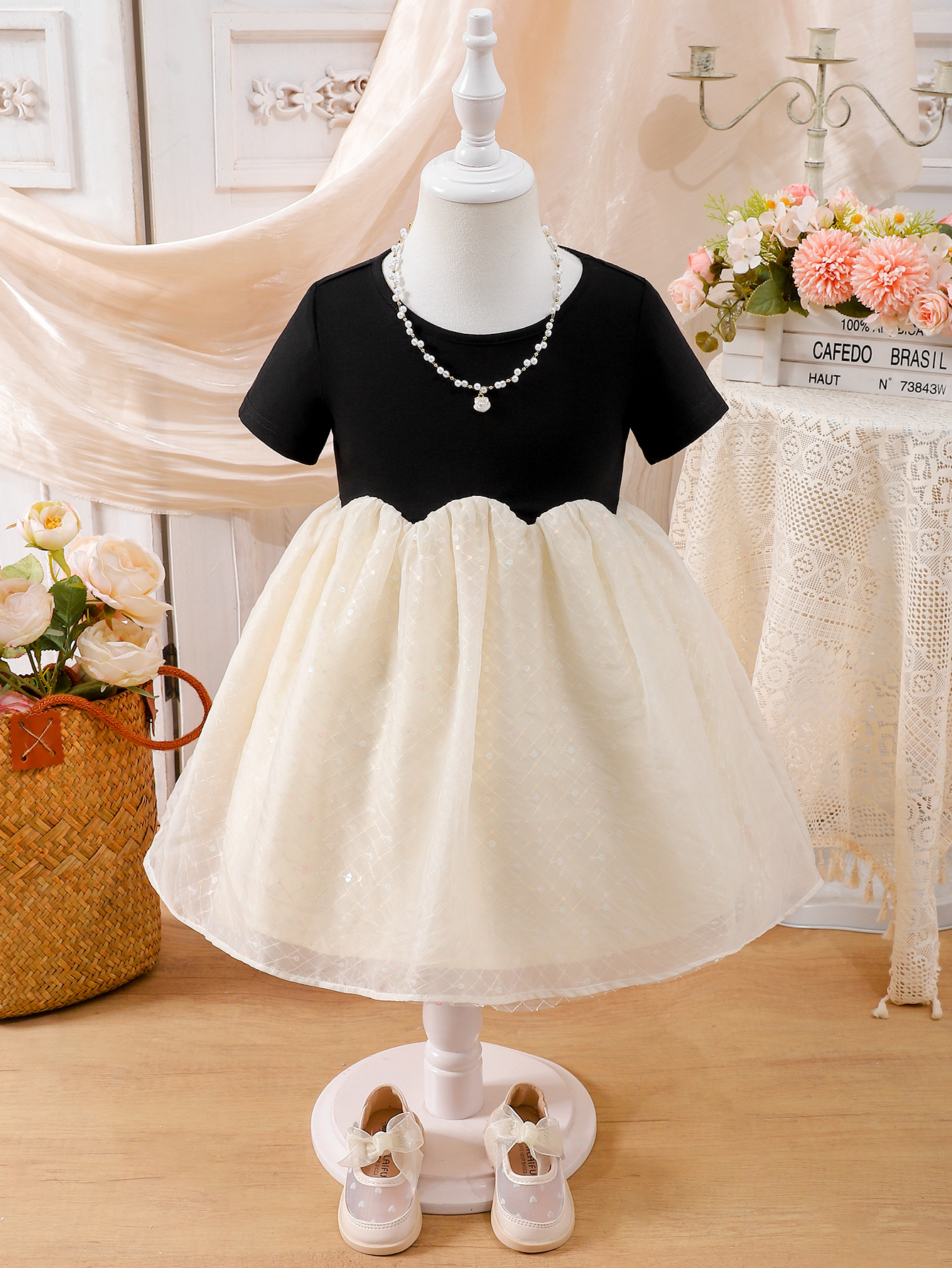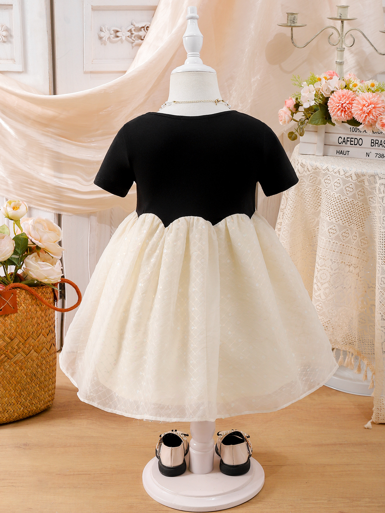 소녀 새로운 꽃 짧은 소매 단색 메쉬 원피스