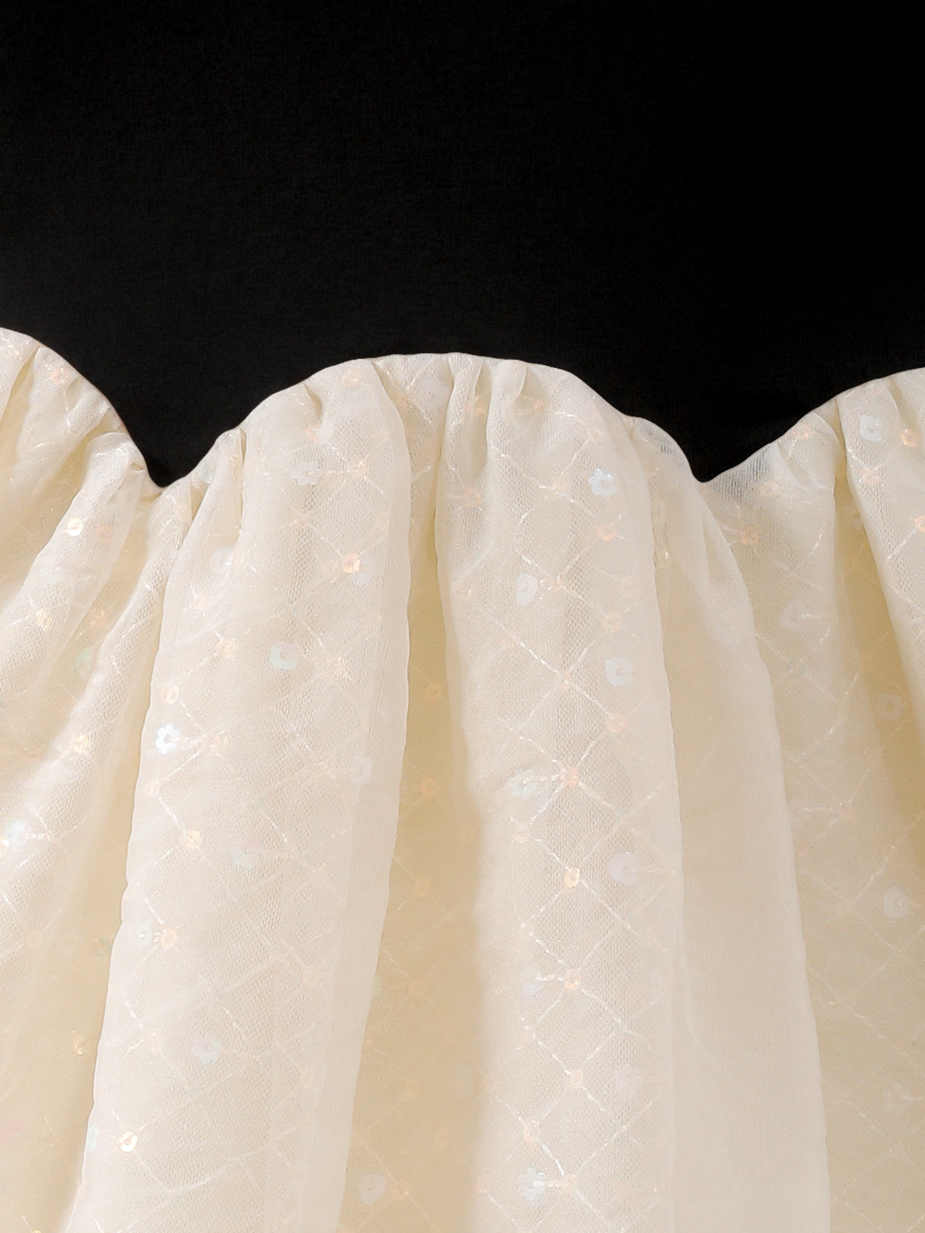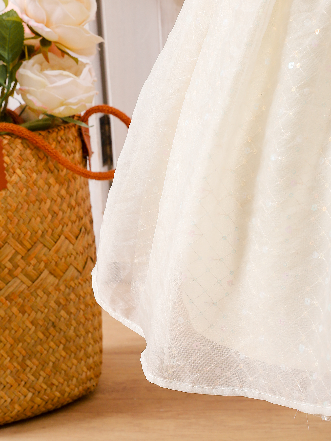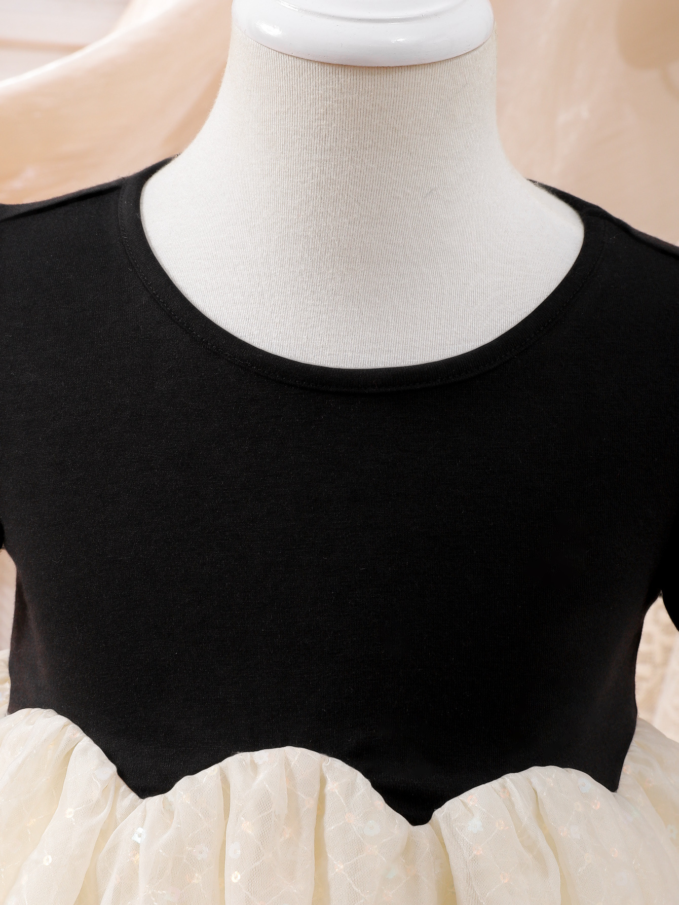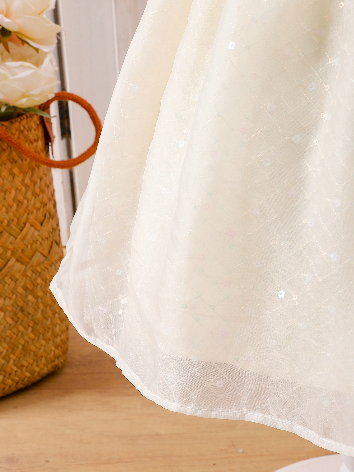 소녀 새로운 꽃 짧은 소매 단색 메쉬 원피스