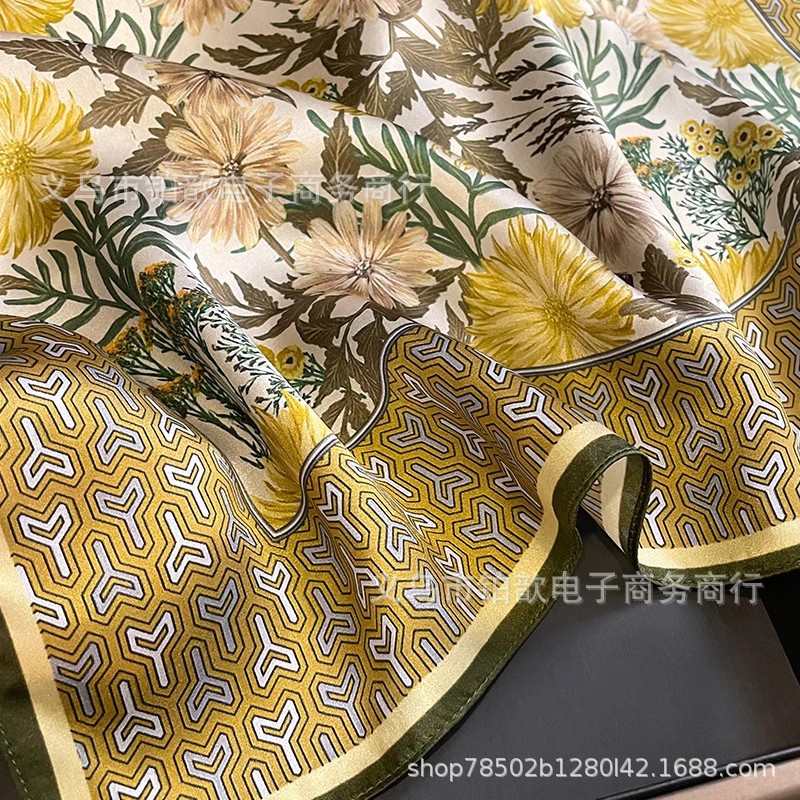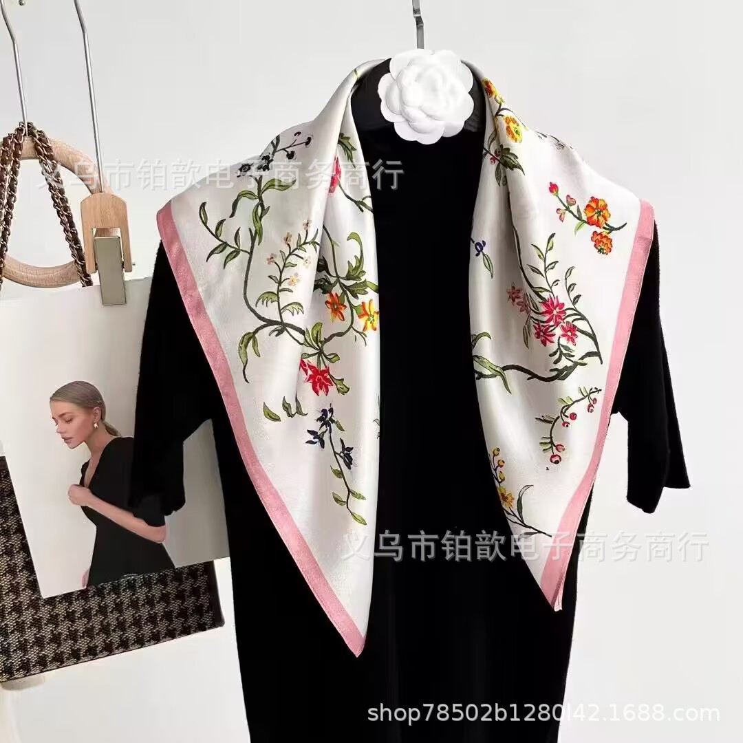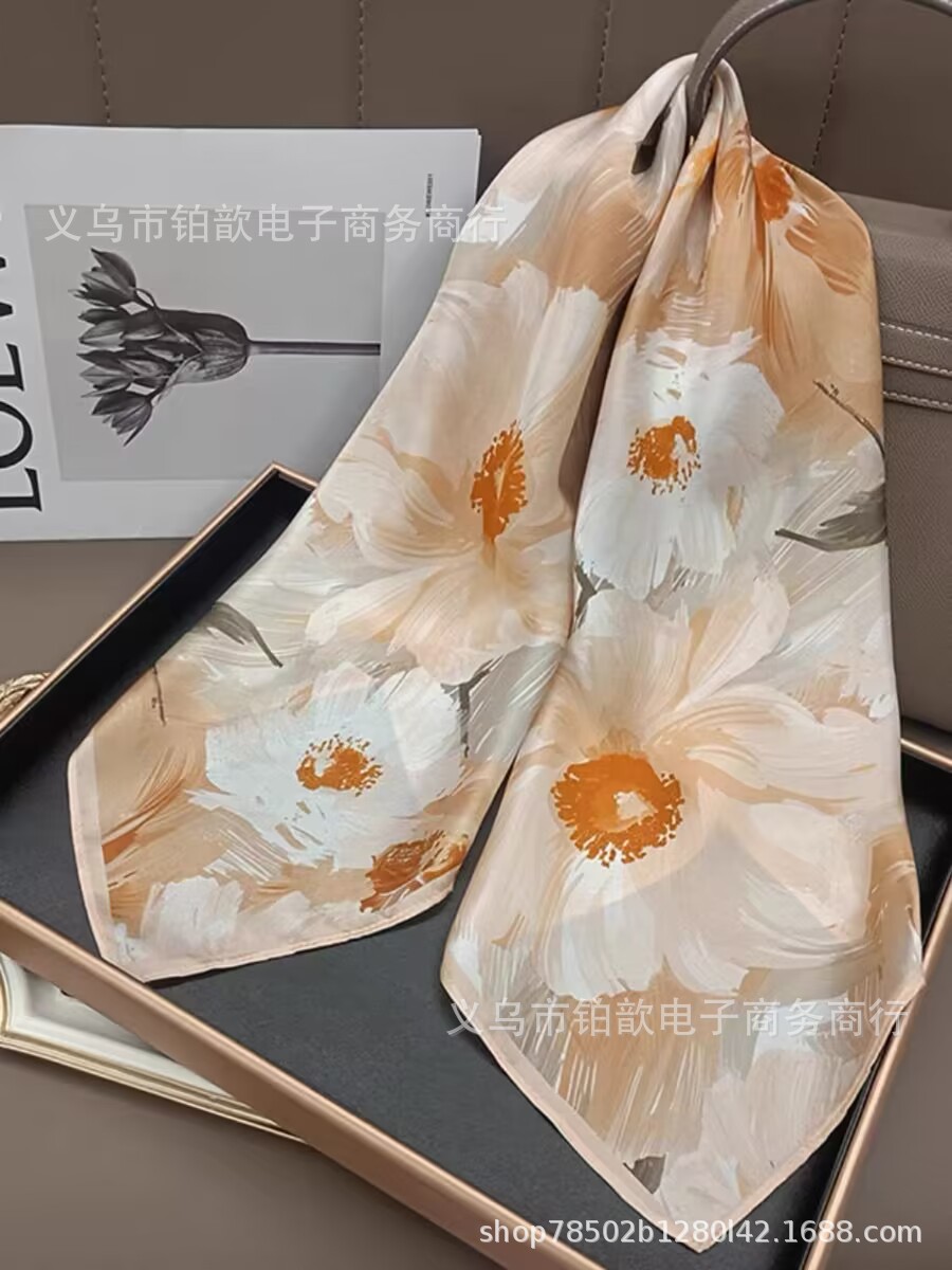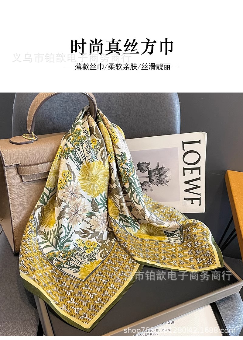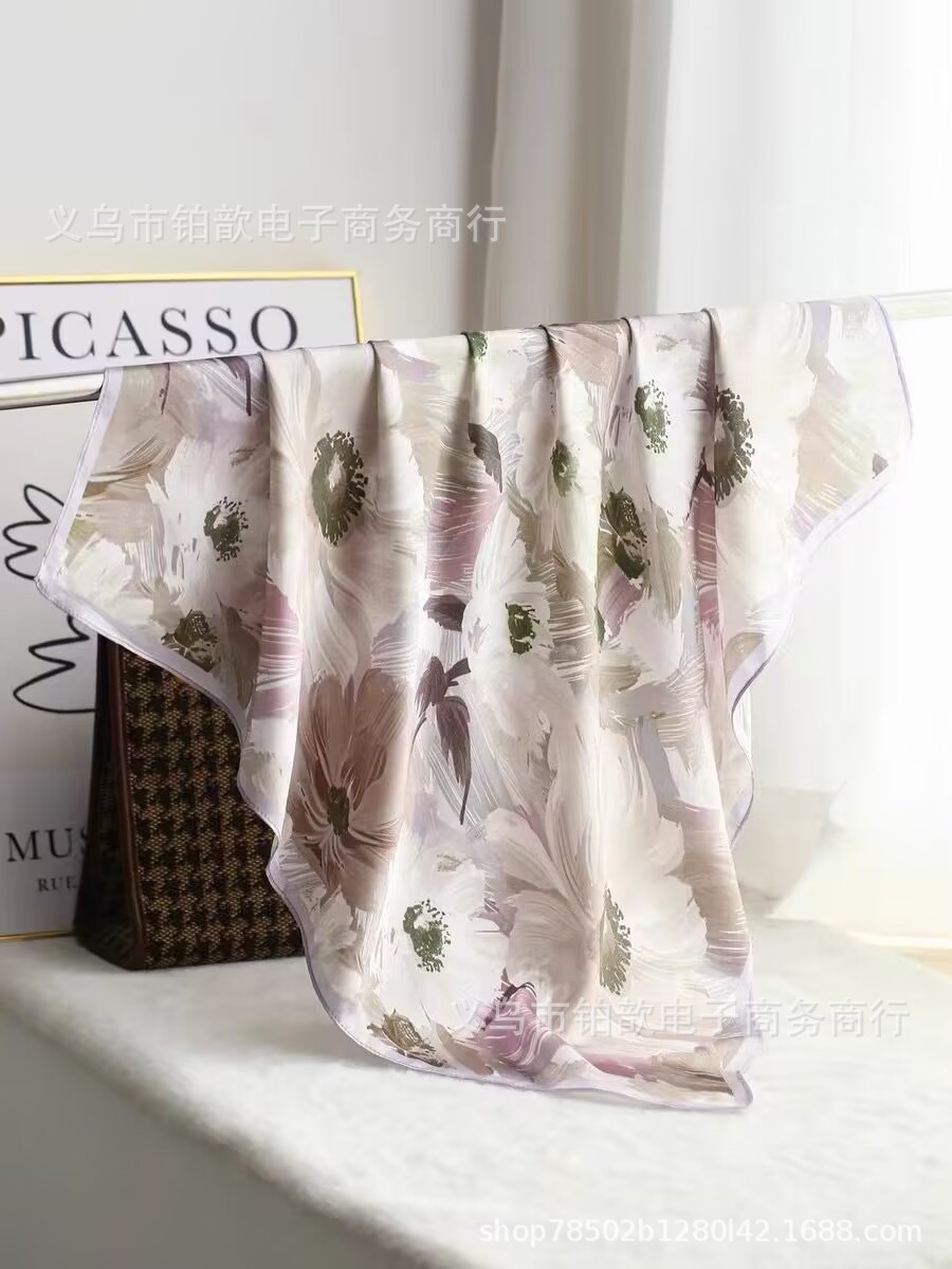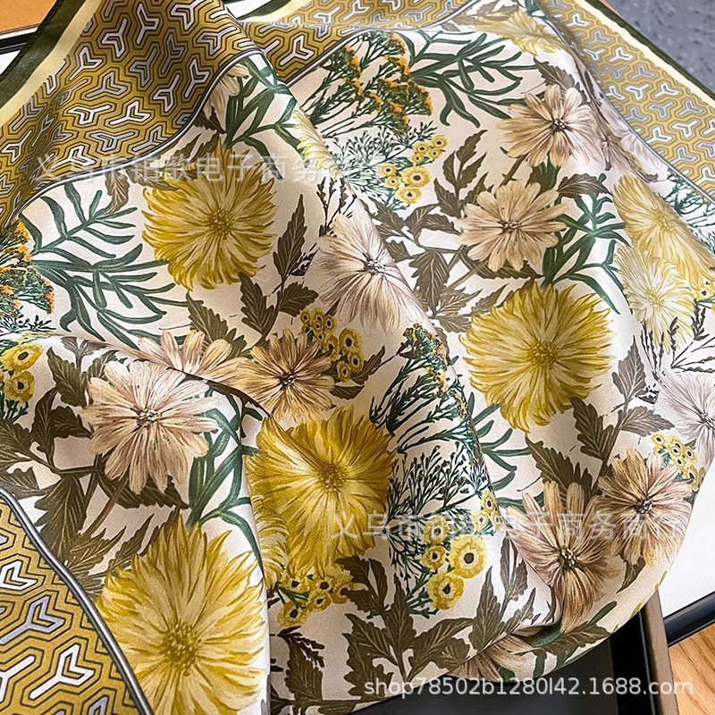 봄과 가을 여성 65 스퀘어 실크 스카프 뽕나무 실크 스카프 실크 스카프 우아한 패션 서양식 꽃 목 보호 스킨 화이트스토어 가기