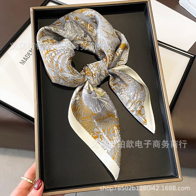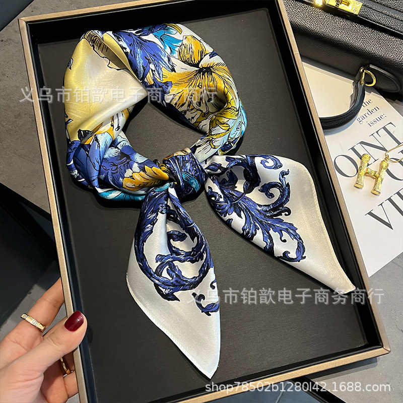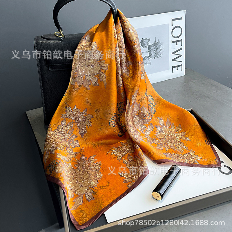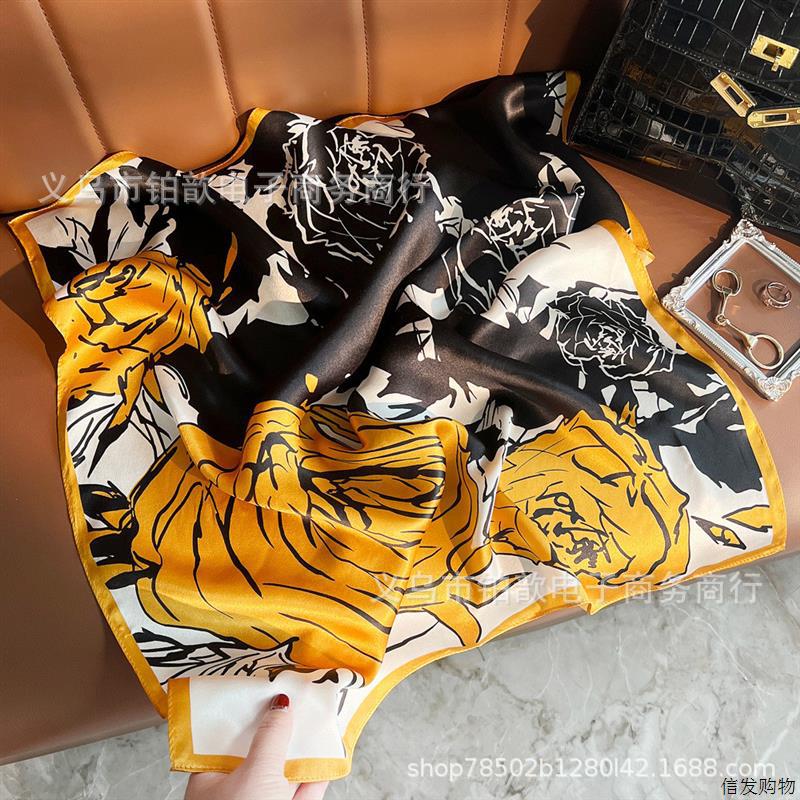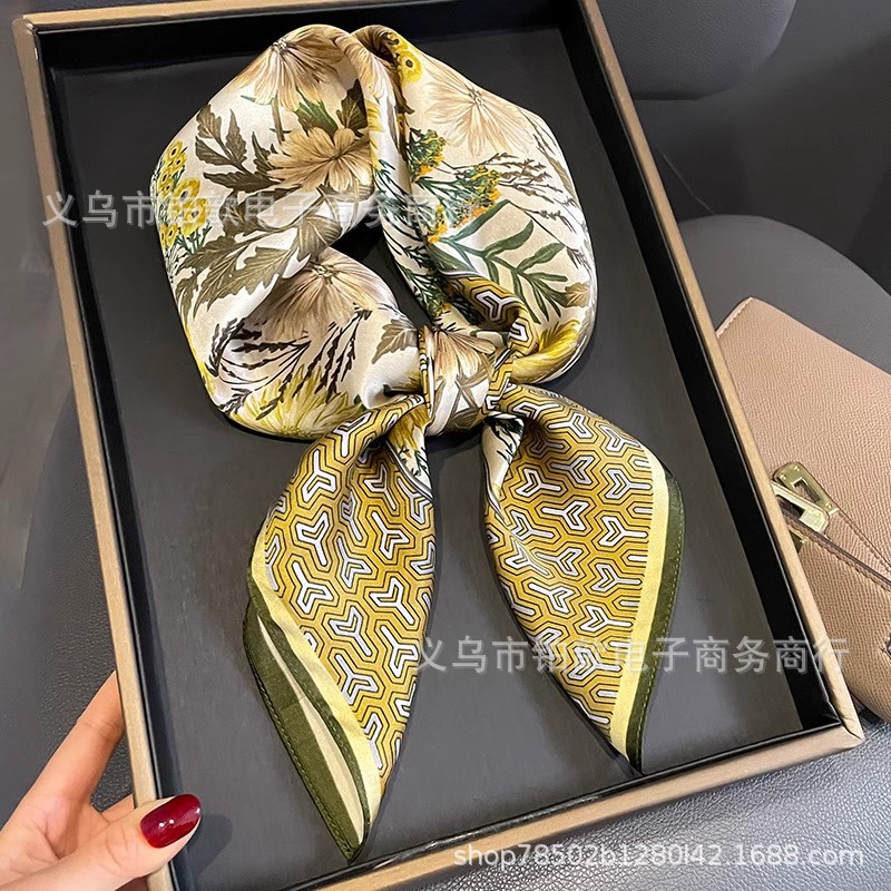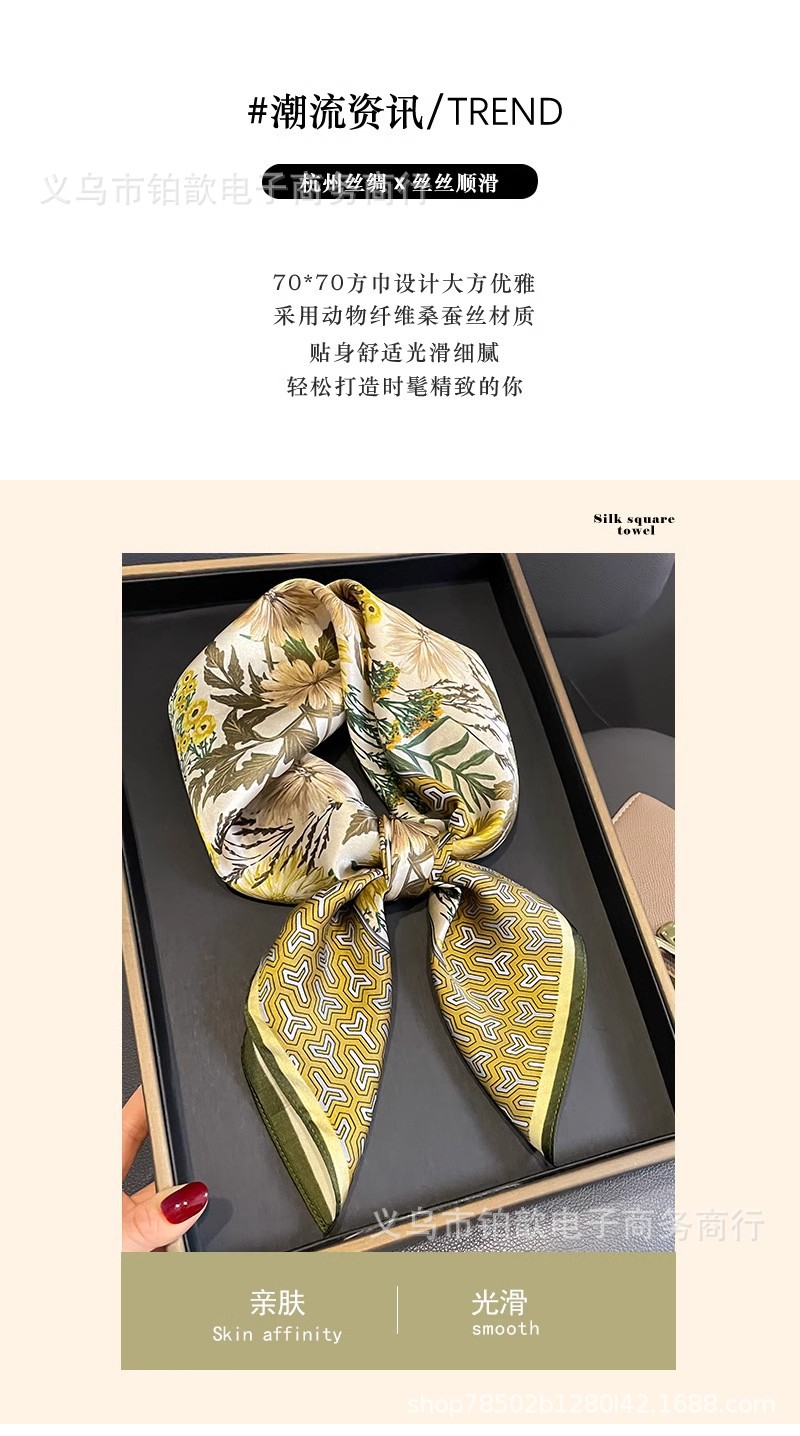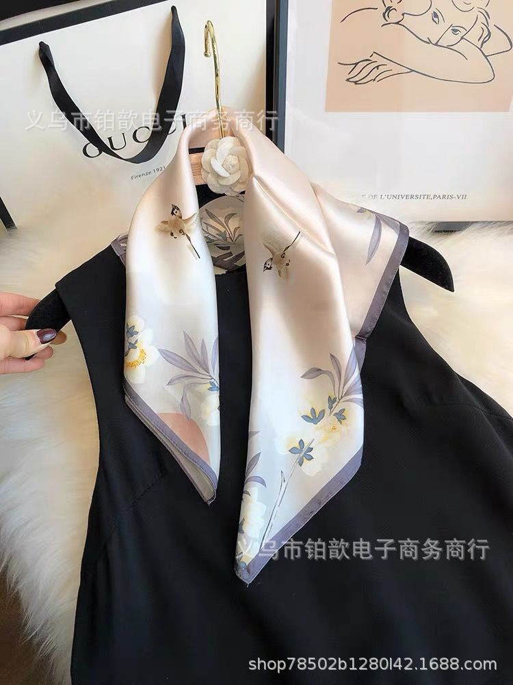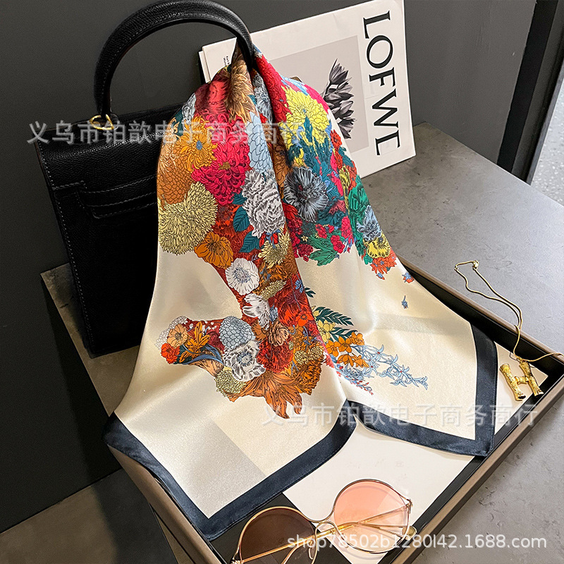 봄과 가을 여성 65 스퀘어 실크 스카프 뽕나무 실크 스카프 실크 스카프 우아한 패션 서양식 꽃 목 보호 스킨 화이트스토어 가기