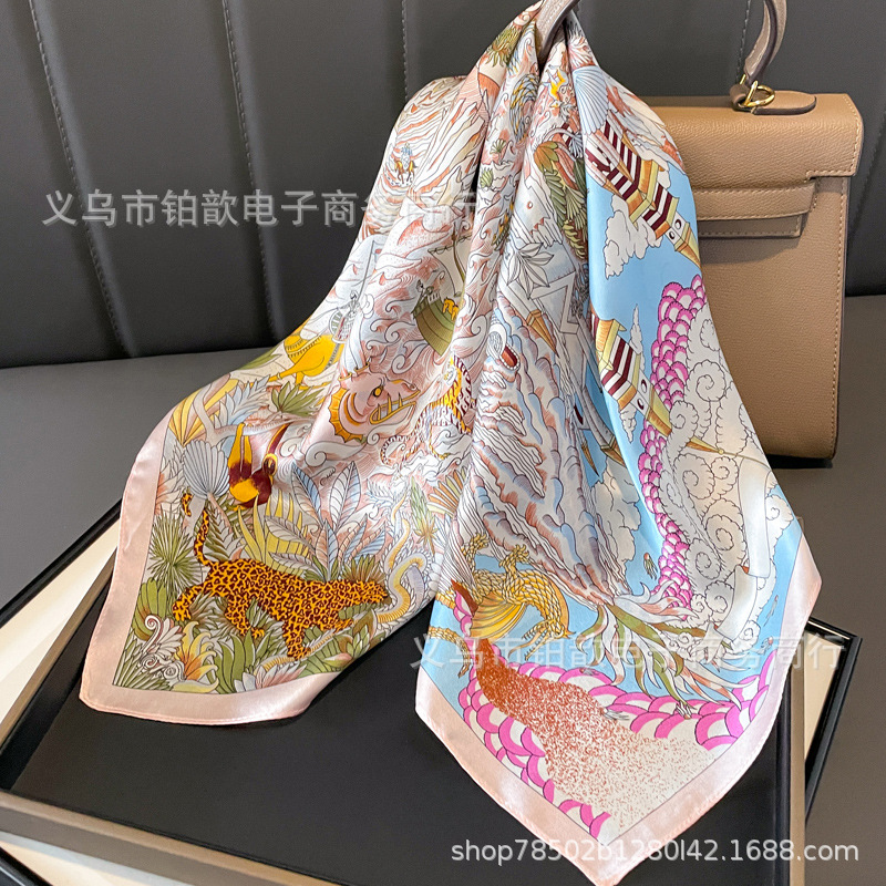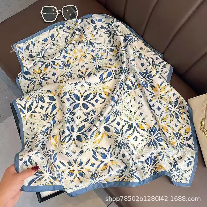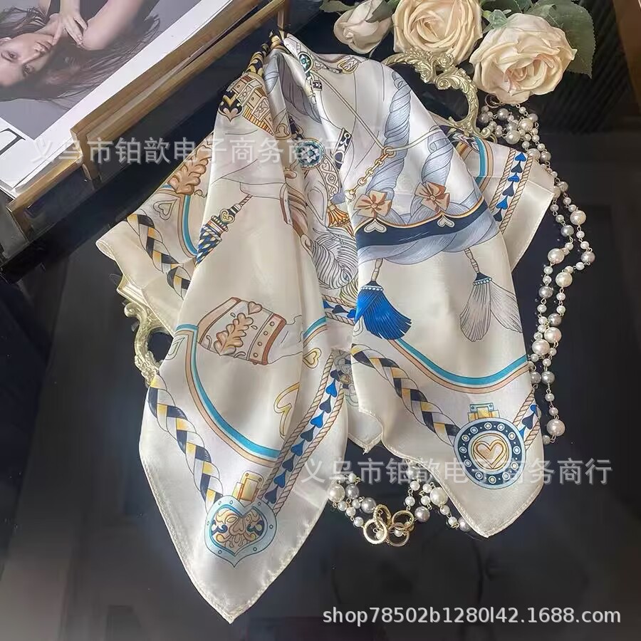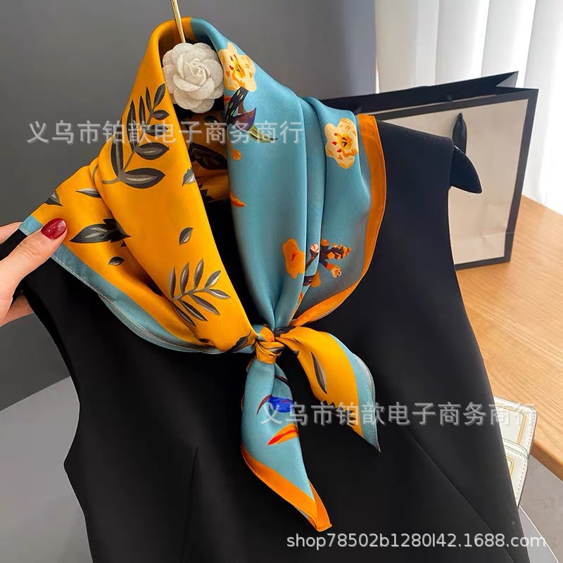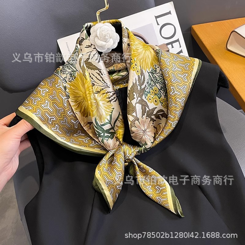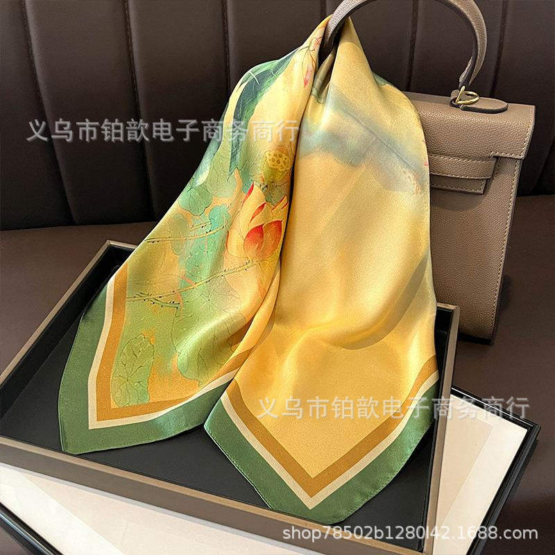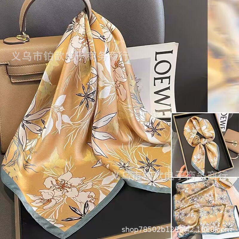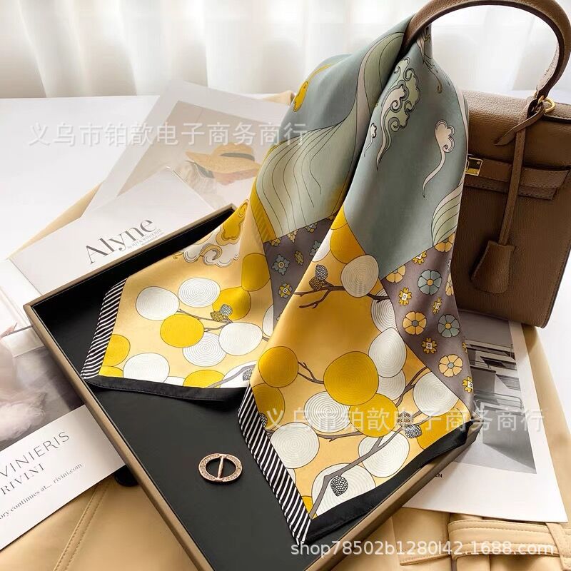 봄과 가을 여성 65 스퀘어 실크 스카프 뽕나무 실크 스카프 실크 스카프 우아한 패션 서양식 꽃 목 보호 스킨 화이트스토어 가기