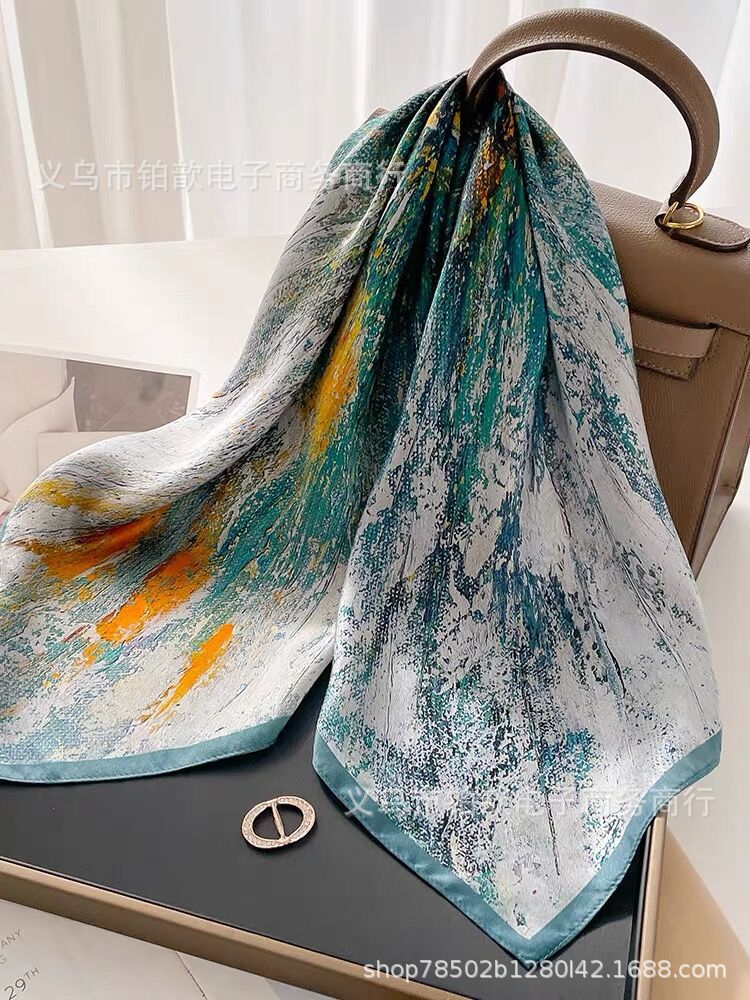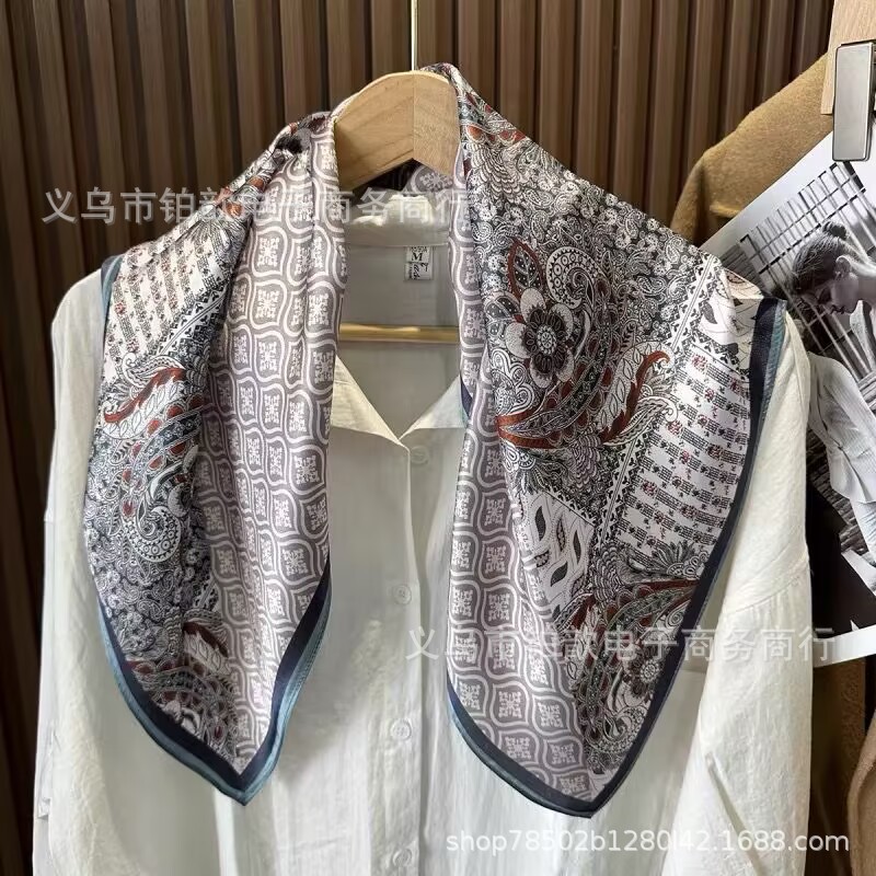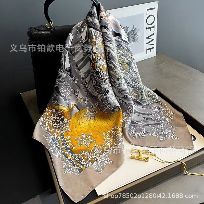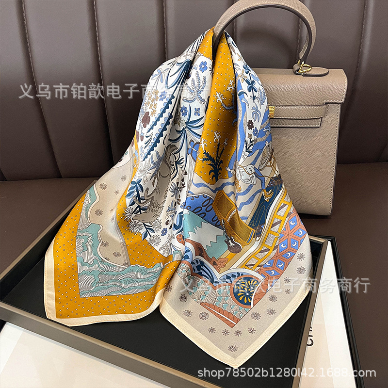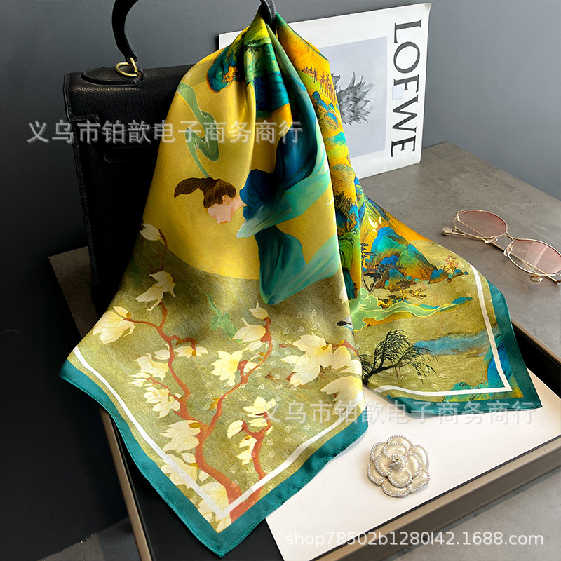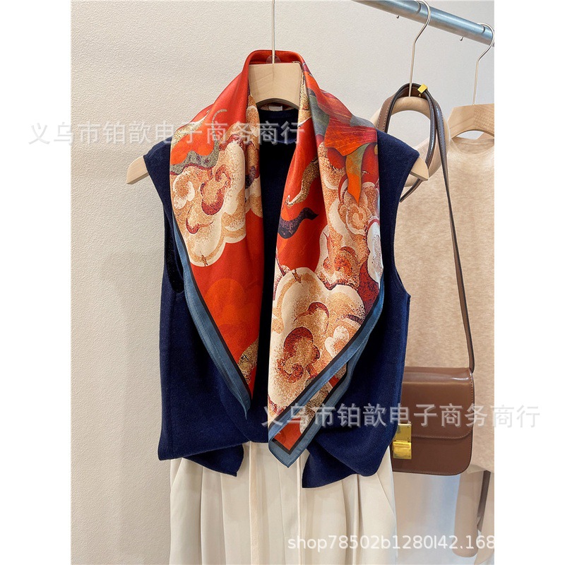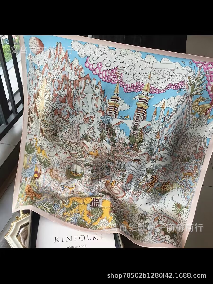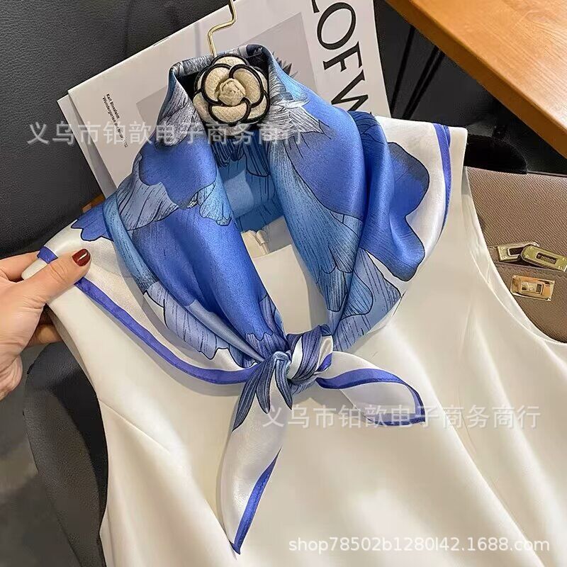 봄과 가을 여성 65 스퀘어 실크 스카프 뽕나무 실크 스카프 실크 스카프 우아한 패션 서양식 꽃 목 보호 스킨 화이트스토어 가기