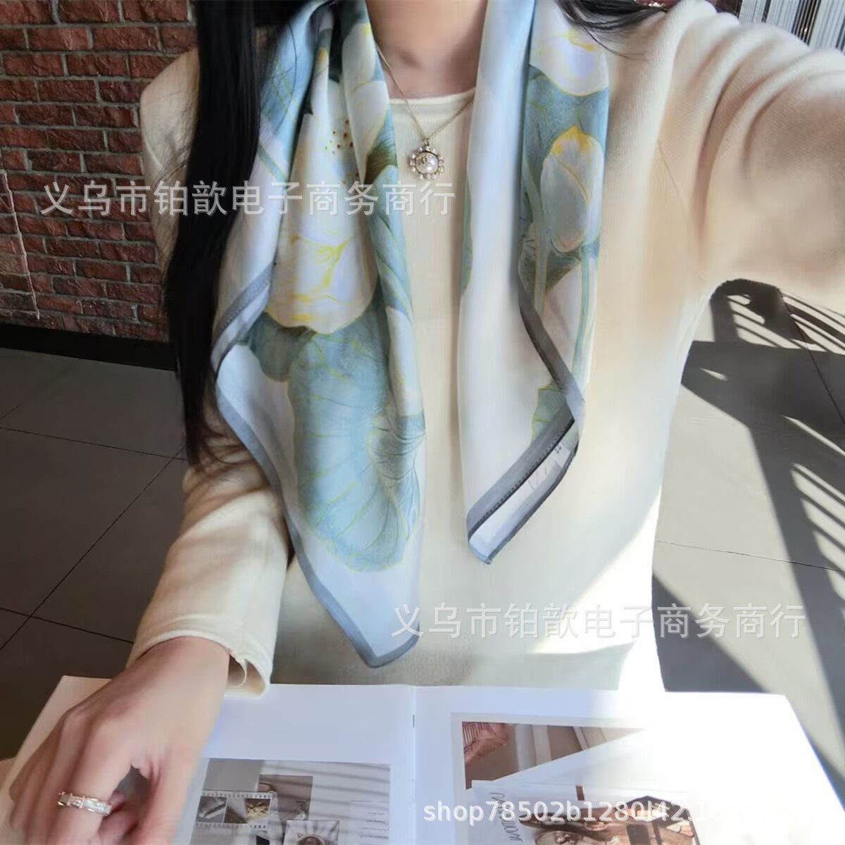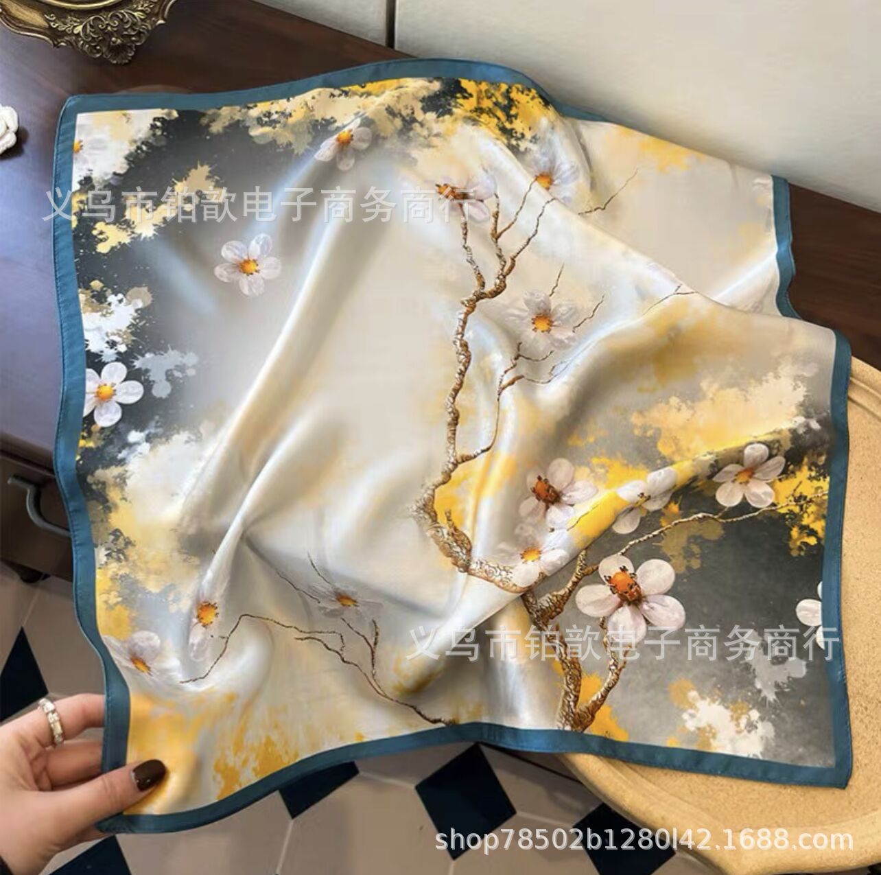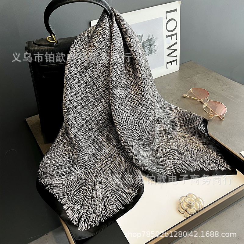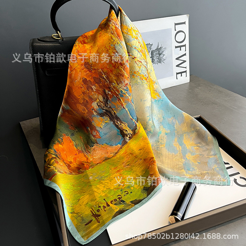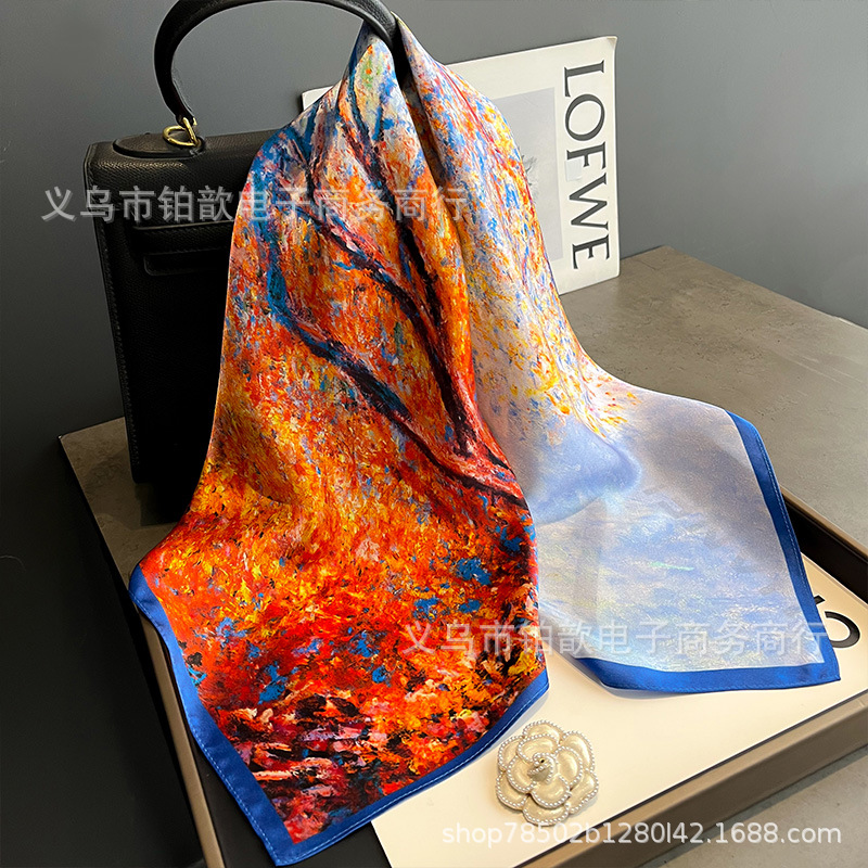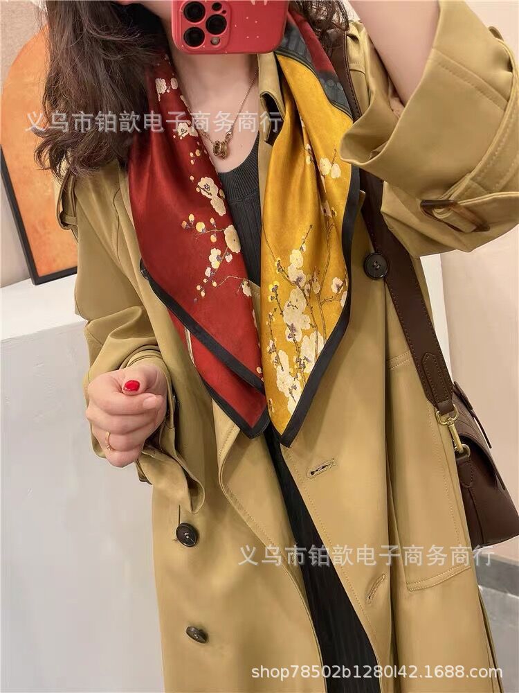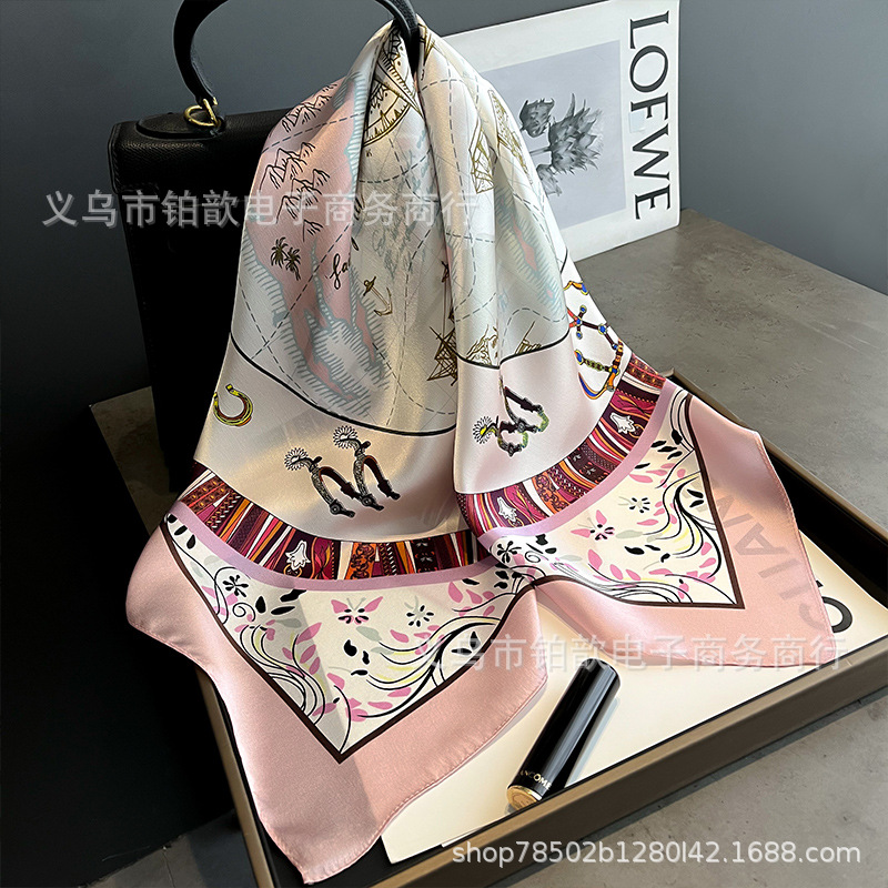 봄과 가을 여성 65 스퀘어 실크 스카프 뽕나무 실크 스카프 실크 스카프 우아한 패션 서양식 꽃 목 보호 스킨 화이트스토어 가기