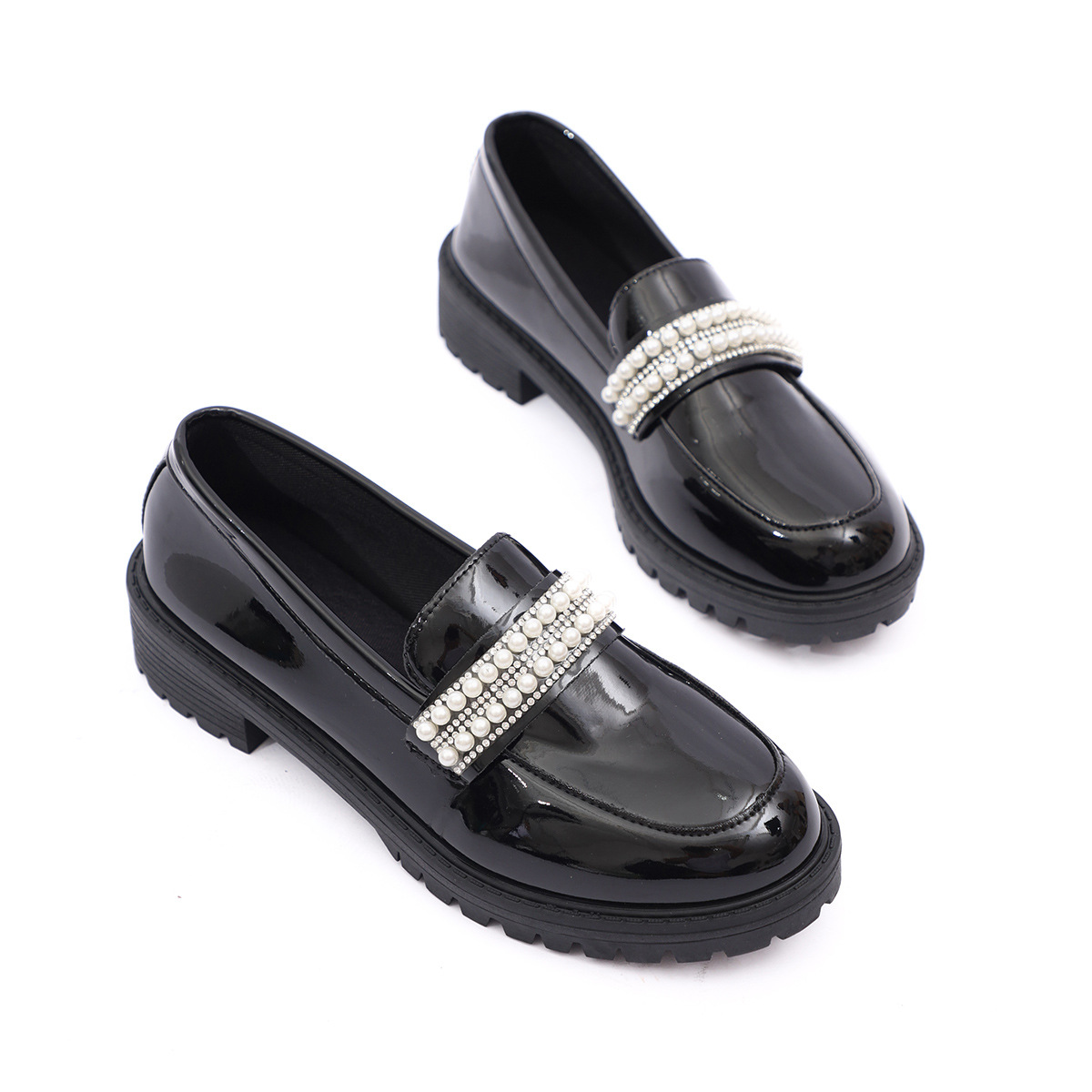 유럽 역 새로운 틈새 레트로 로퍼 슬립 온 캐주얼 싱글 레이어 신발 플러스 사이즈 미드 힐 펄 레이디스 작은 가죽 신발스토어 가기