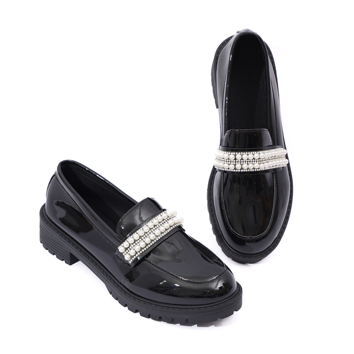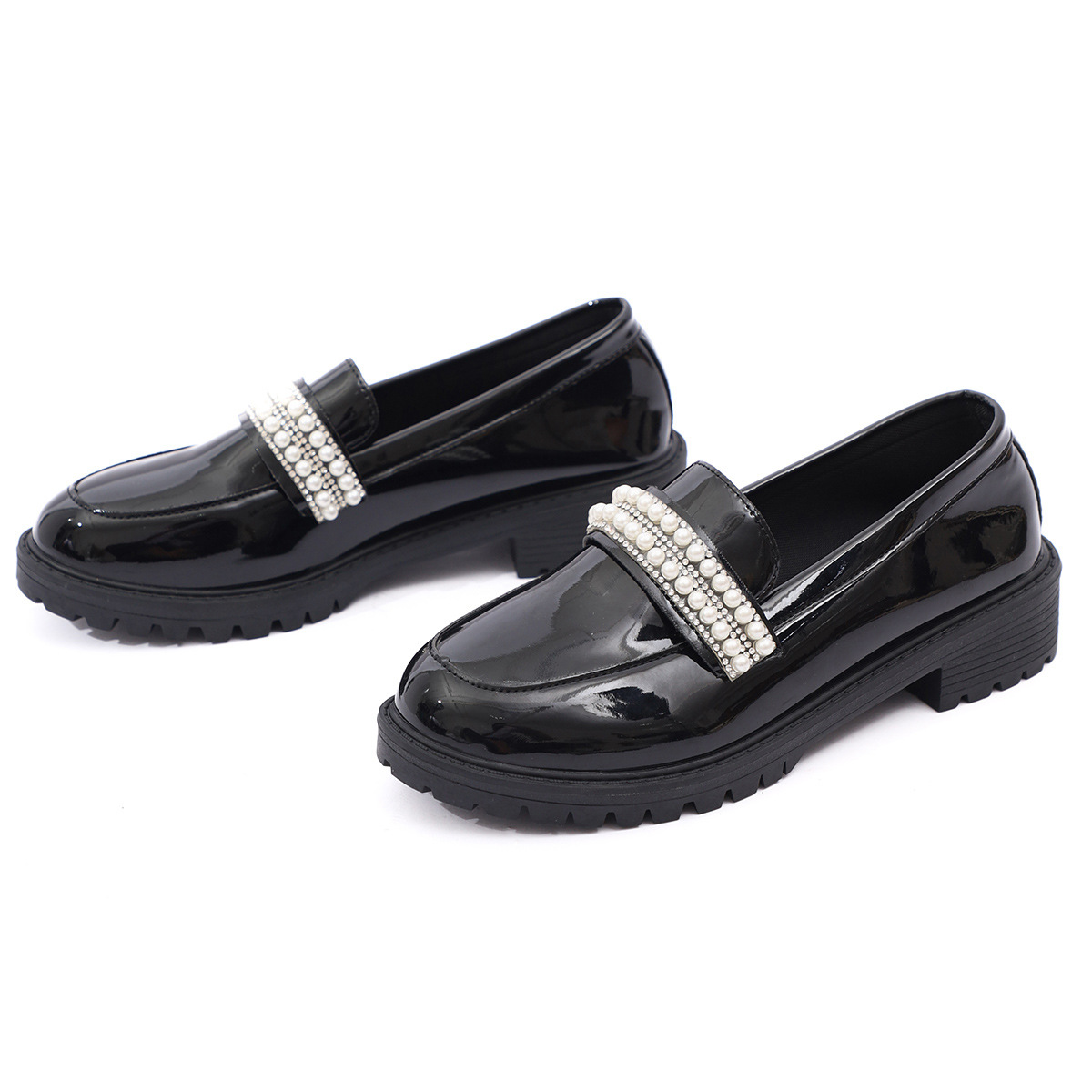 유럽 역 새로운 틈새 레트로 로퍼 슬립 온 캐주얼 싱글 레이어 신발 플러스 사이즈 미드 힐 펄 레이디스 작은 가죽 신발