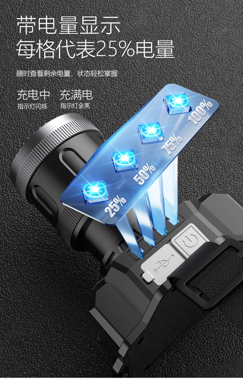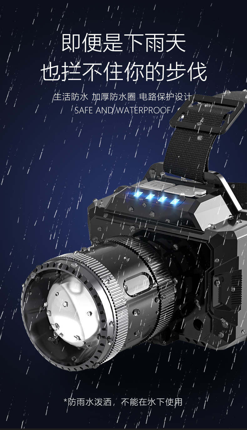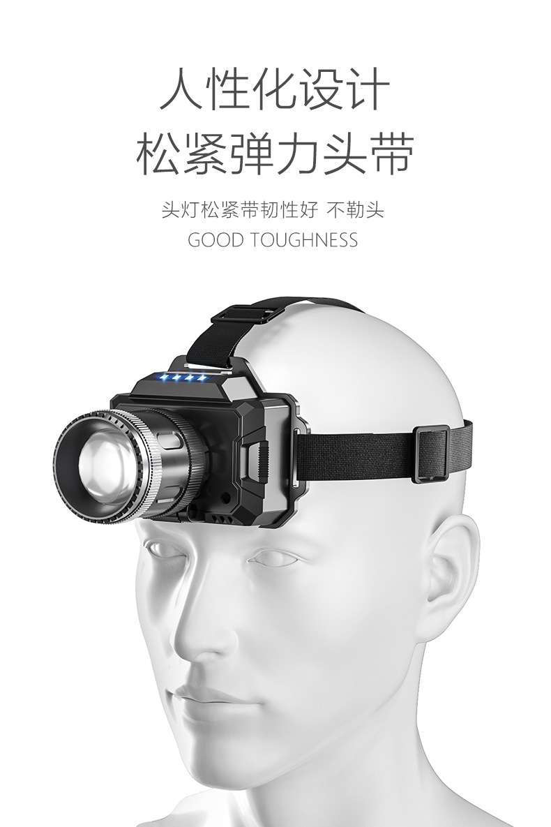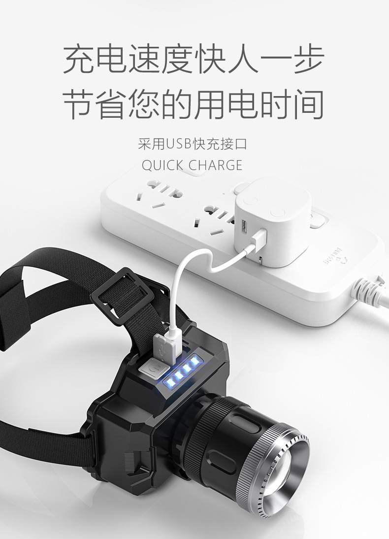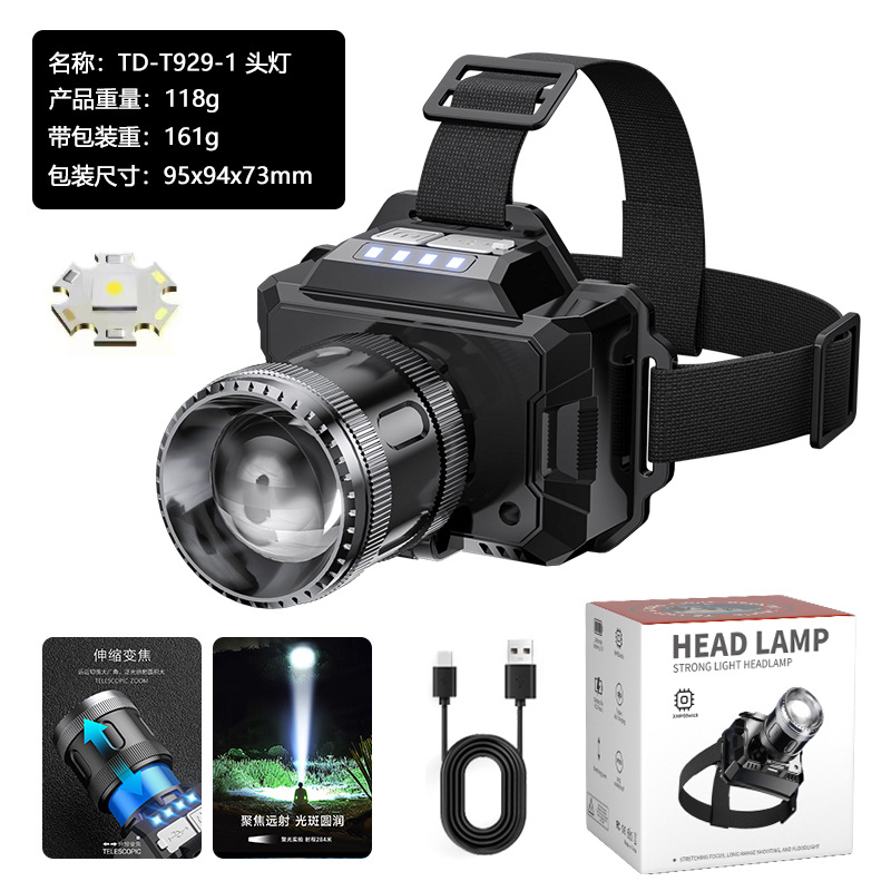 국경 간 야외 밝은 헤드 라이트 휴대용 충전 긴 지구력 방수 비오는 날 안개가 자욱한 밤 낚시 하이킹 야간 헤드 라이트