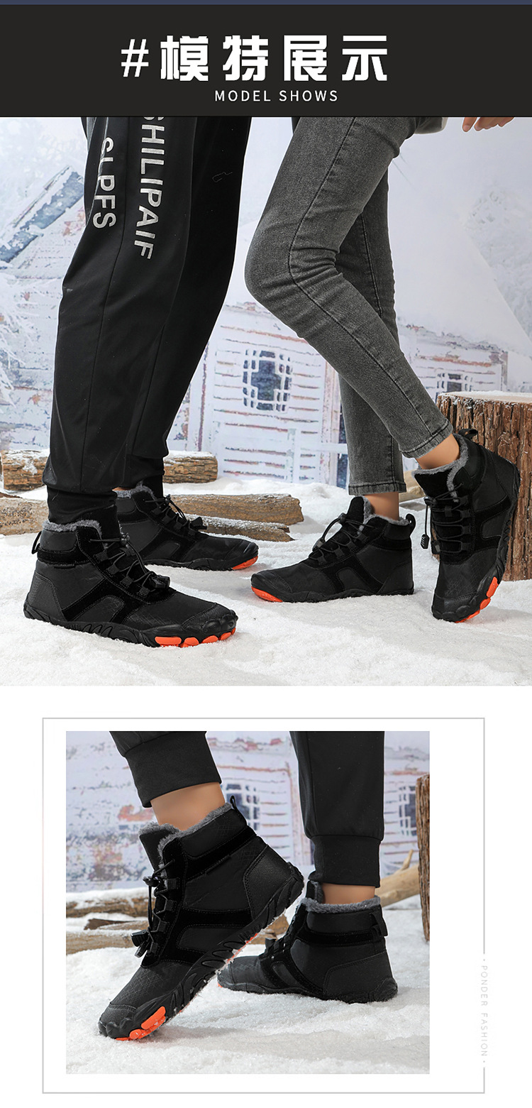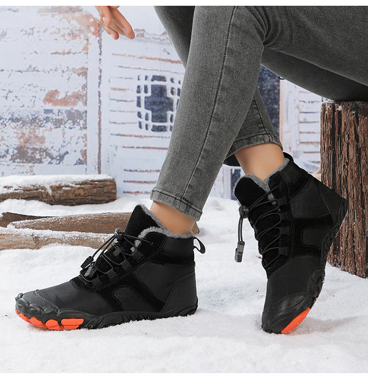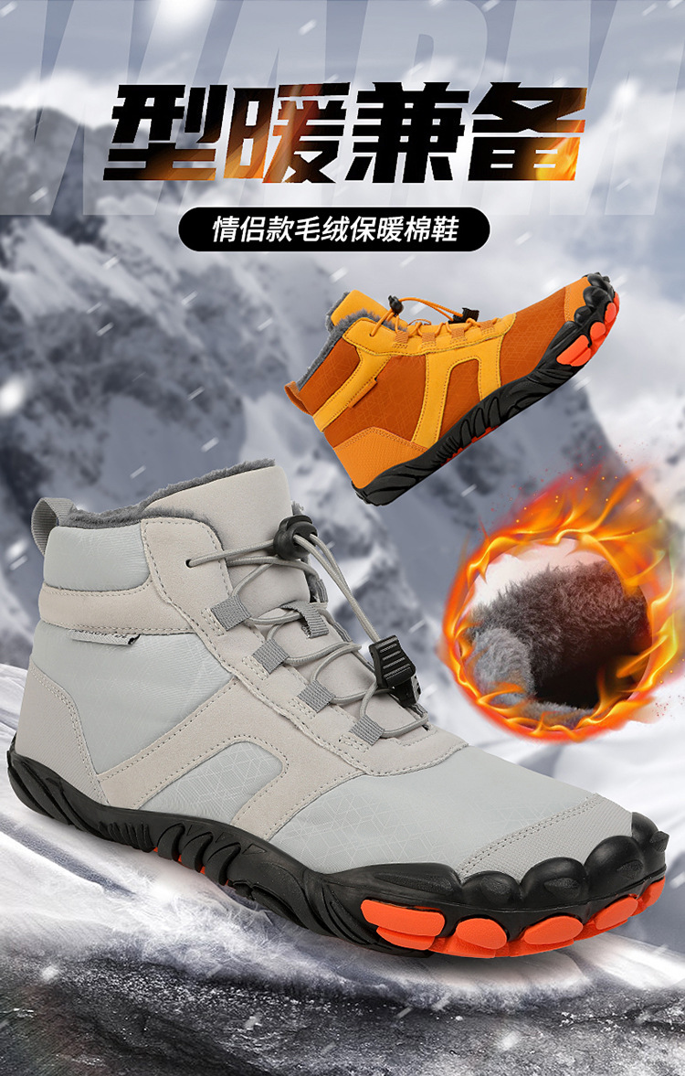 새로운 겨울 야외 5 손가락 맨발 코튼 슈즈 남성용 기모 두꺼운 스노우 부츠 여성용 냉난방 따뜻한 코튼 부츠