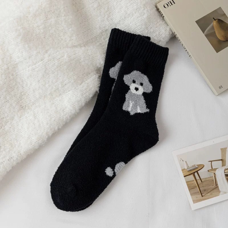 가을과 겨울 양면 벨벳 귀여운 양말 어린이 인 조수 학업 스타일 올 매치 패션 소녀 강아지 양말 편안한 바닥 양말