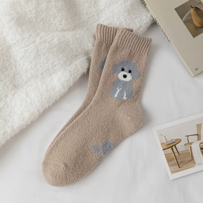 가을과 겨울 양면 벨벳 귀여운 양말 어린이 인 조수 학업 스타일 올 매치 패션 소녀 강아지 양말 편안한 바닥 양말스토어 가기
