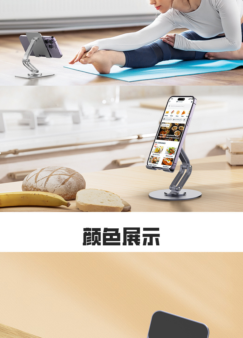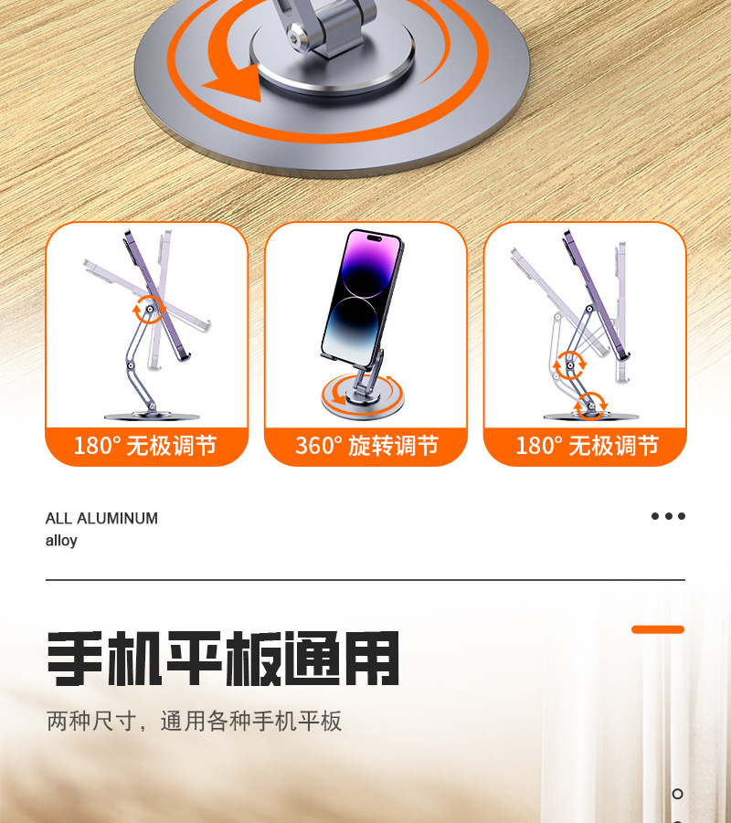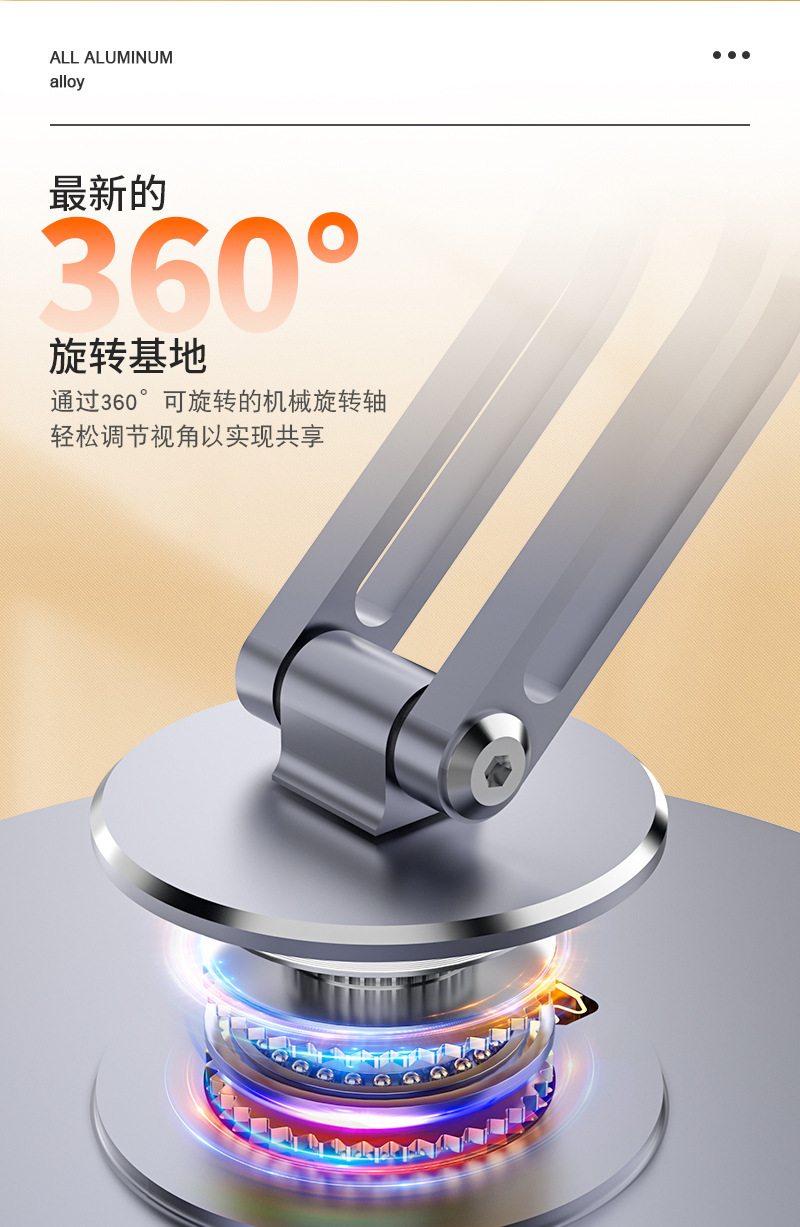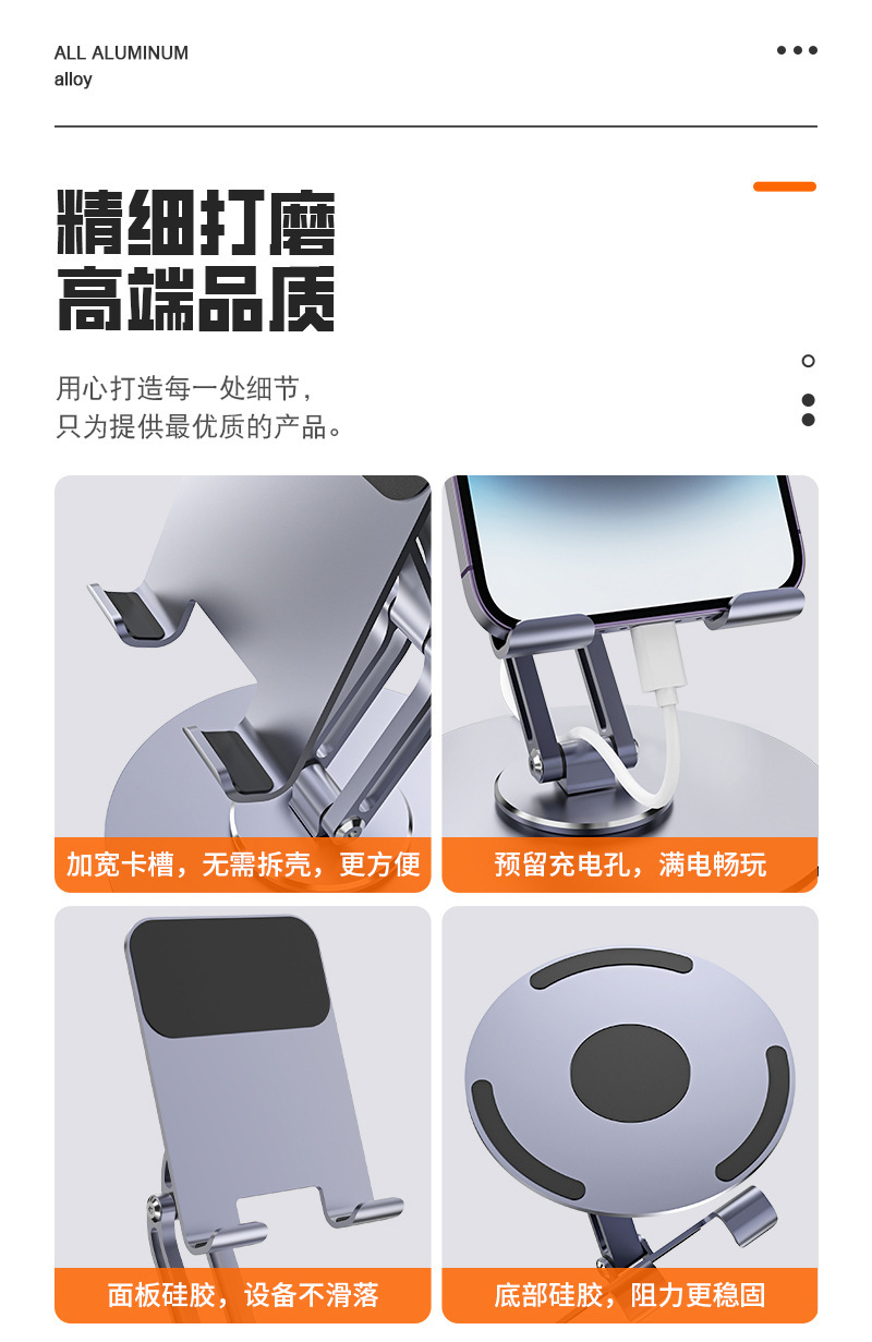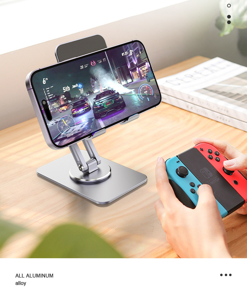 P3A 모든 금속 휴대 전화 태블릿 미끄럼 방지 360 도 회전 데스크탑 스탠드 게으른 라이브 스탠드 접이식 스토리지