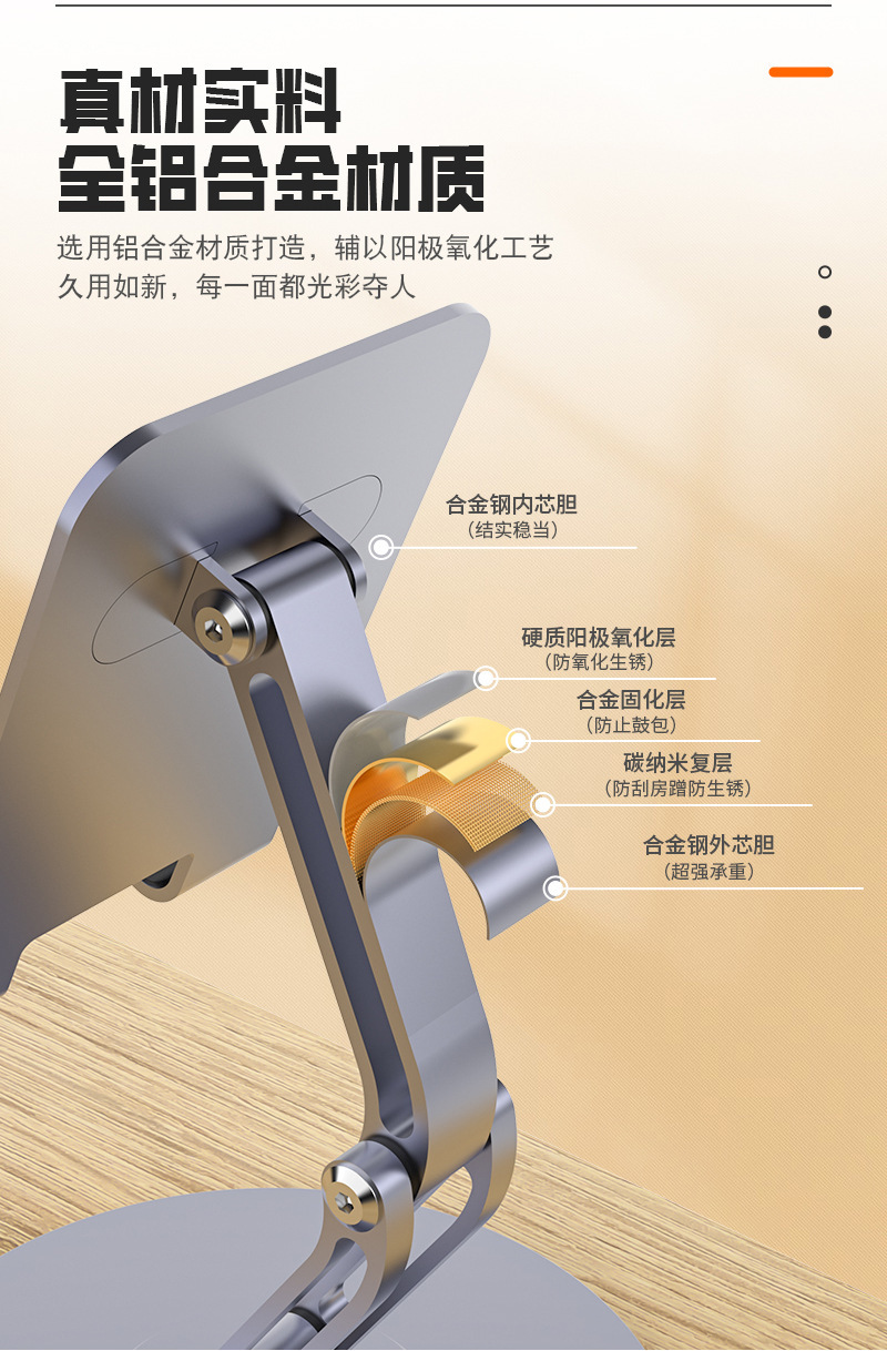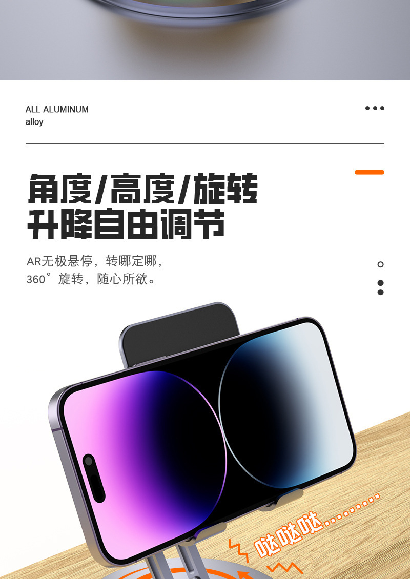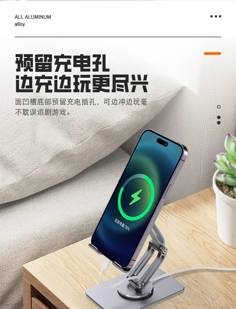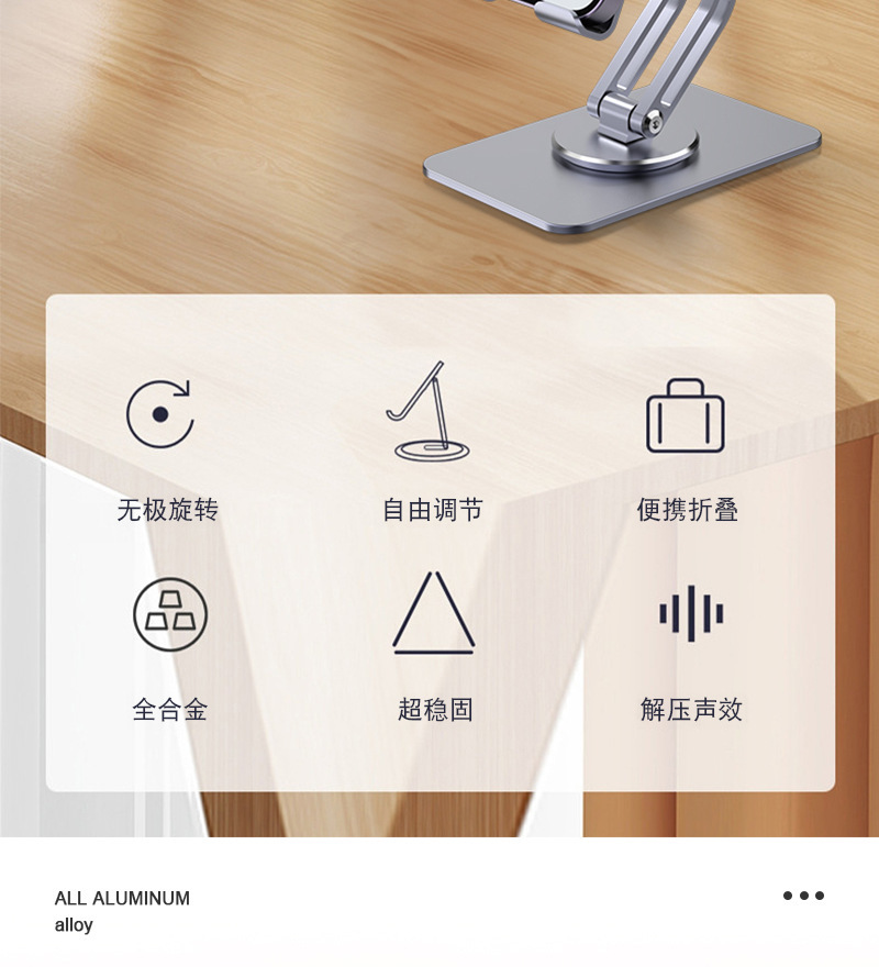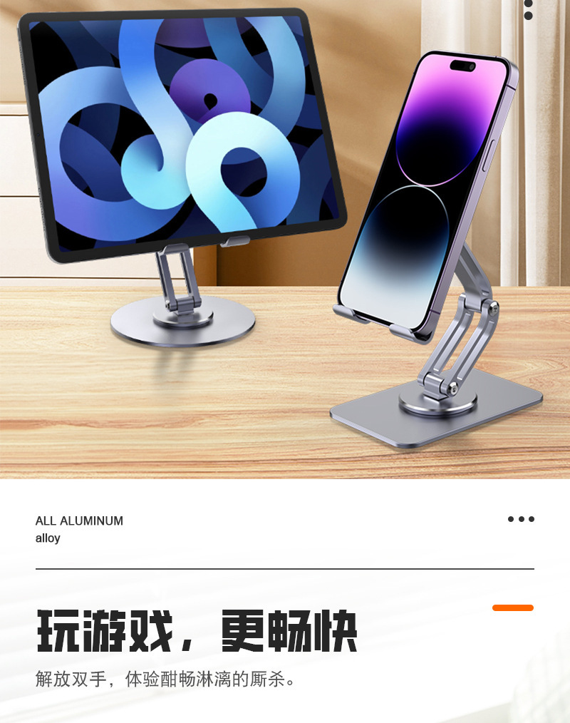 P3A 모든 금속 휴대 전화 태블릿 미끄럼 방지 360 도 회전 데스크탑 스탠드 게으른 라이브 스탠드 접이식 스토리지