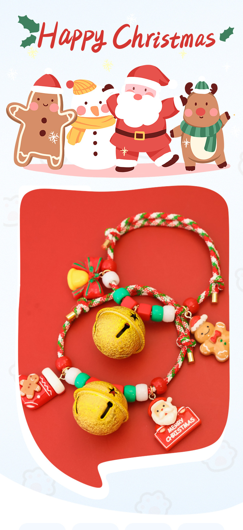 크리스마스 애완 동물 목걸이 개 목걸이 고양이 큰 벨 휴일 장식 중소 개 귀여운 다채로운 구슬
