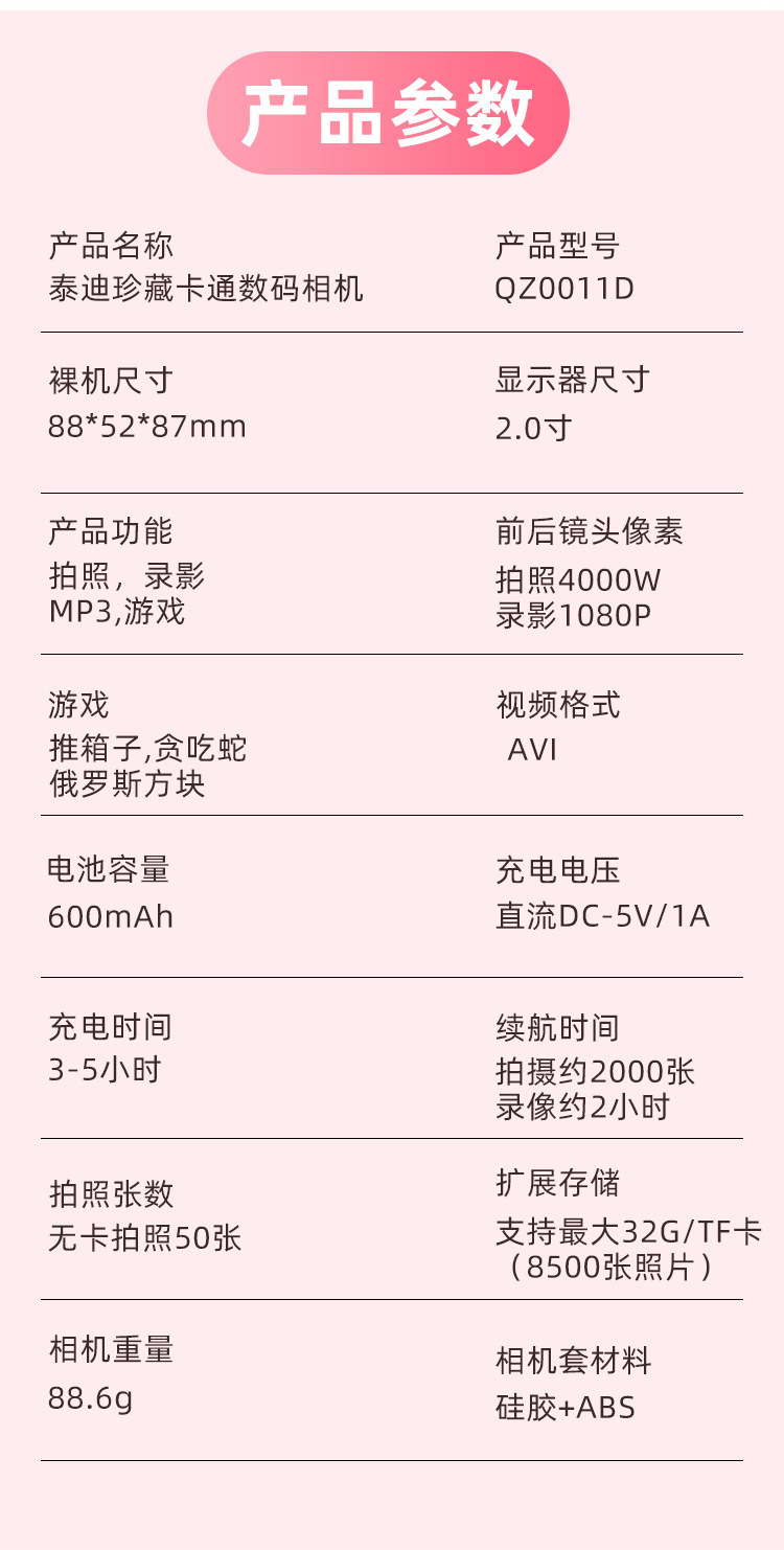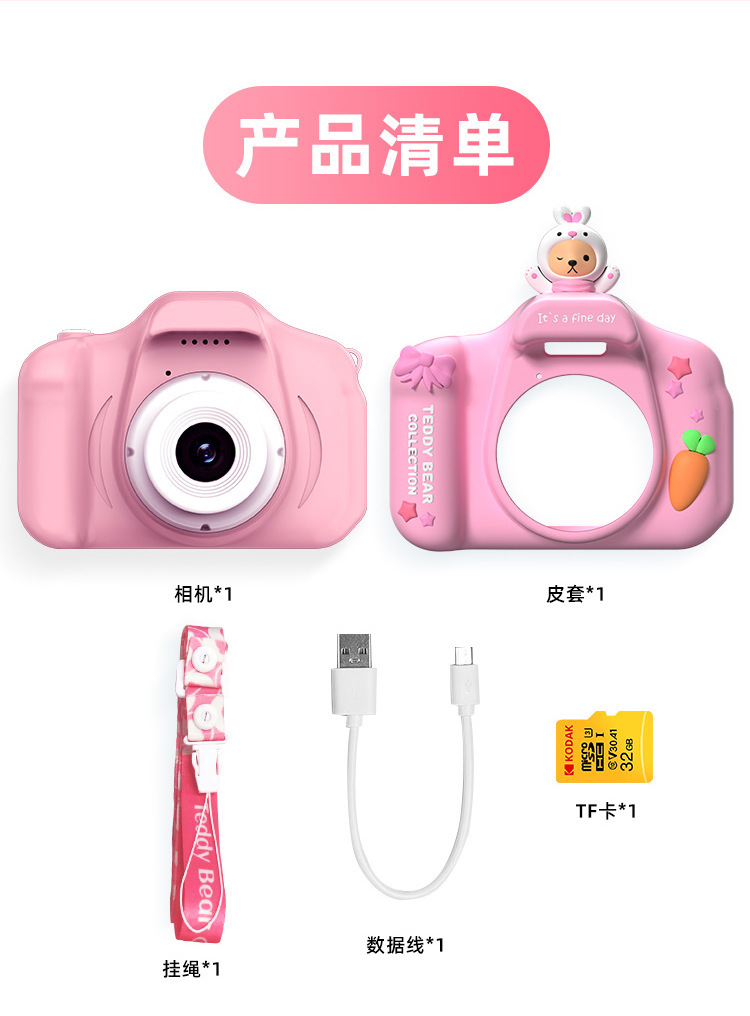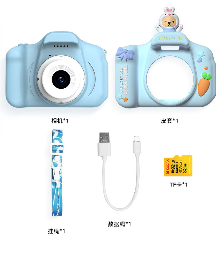 테디 수집가 만화 장난감 디지털 카메라 국경 휴대용 고화질 듀얼 카메라 사진 비디오 교육 선물