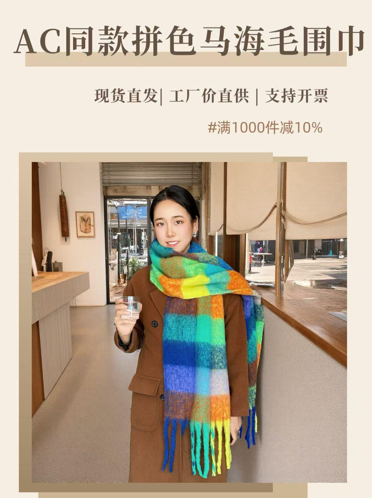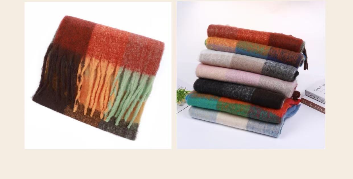 레인보우 스카프 여성 가을, 겨울 한국 커플 격자 무늬 다목적 AC 같은 스타일 목도리 양모 두꺼운 따뜻한 스카프 유행 색상 매칭스토어 가기