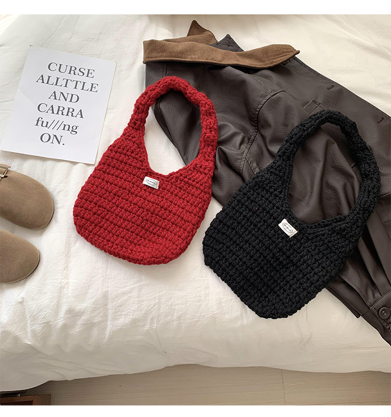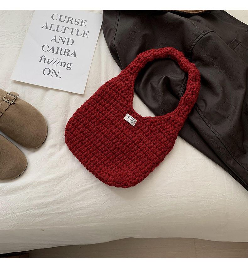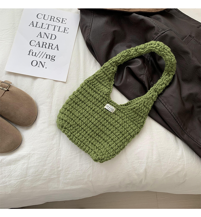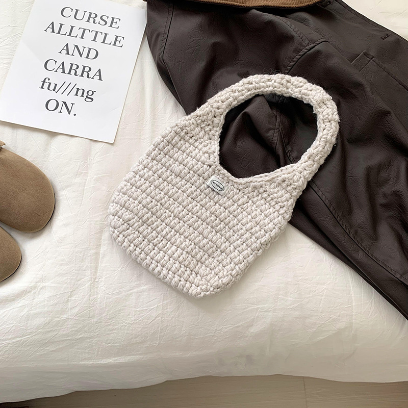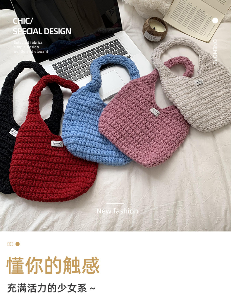 숄더백 한국 스타일 패치 귀여운 소녀 모직 니트 가방 단색 학생 통근 핸드백 짠 핸드백스토어 가기