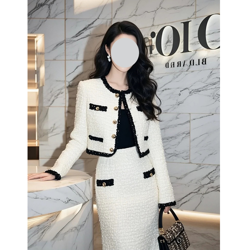 프랑스 패션 세트 여성 디자인 센스 연예인 우아한 여신 팬 샤오 샹 스타일 재킷 탑 스커트 투피스 세트스토어 가기