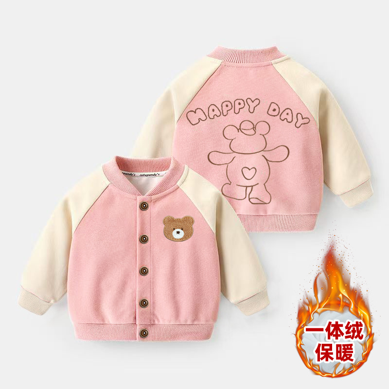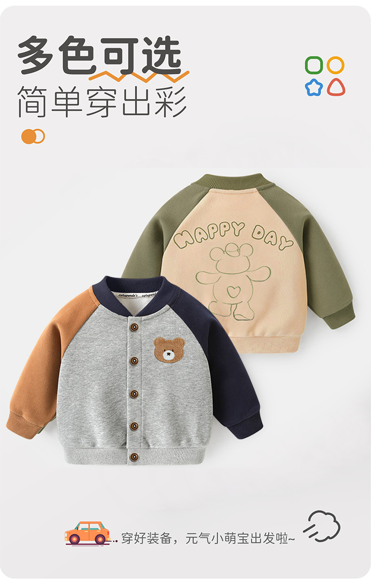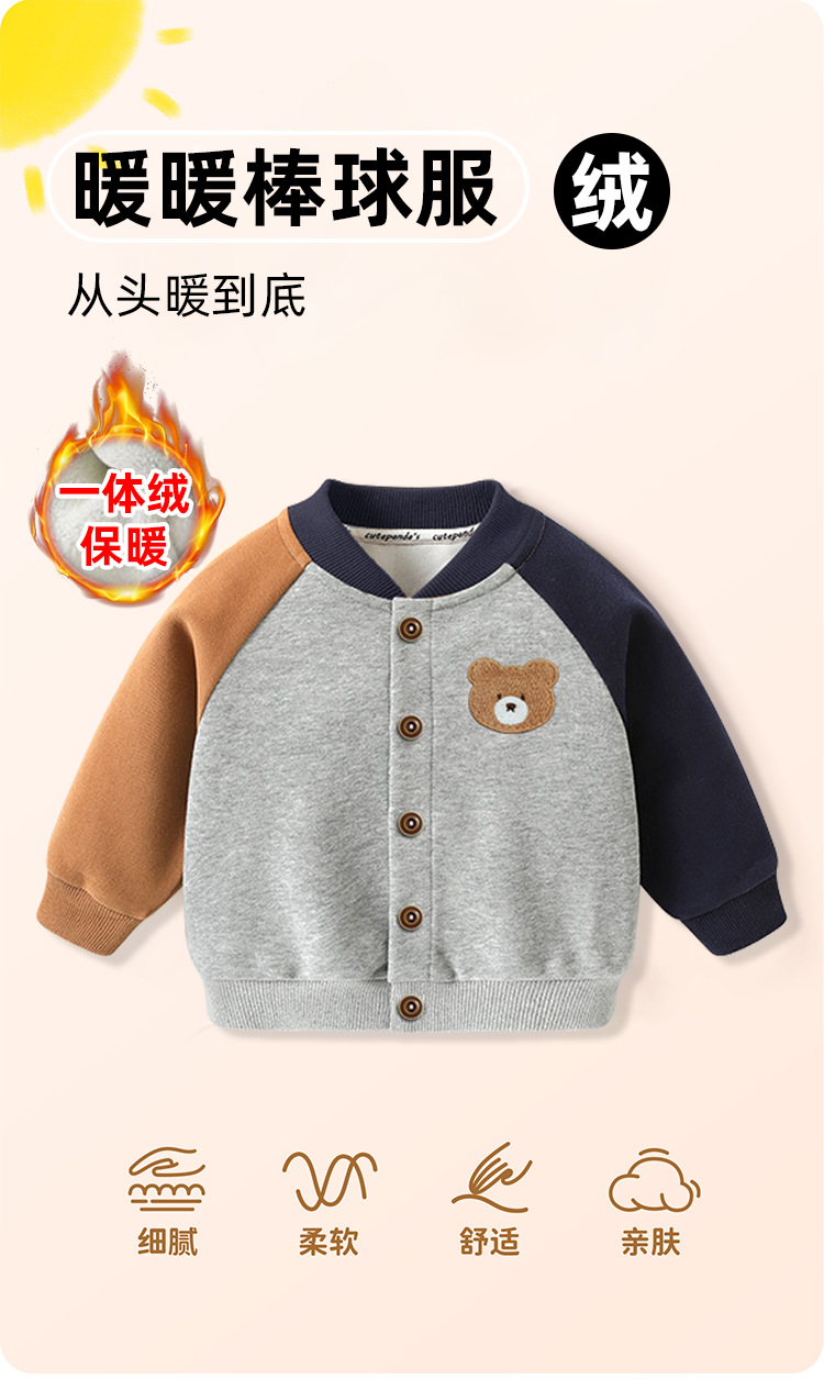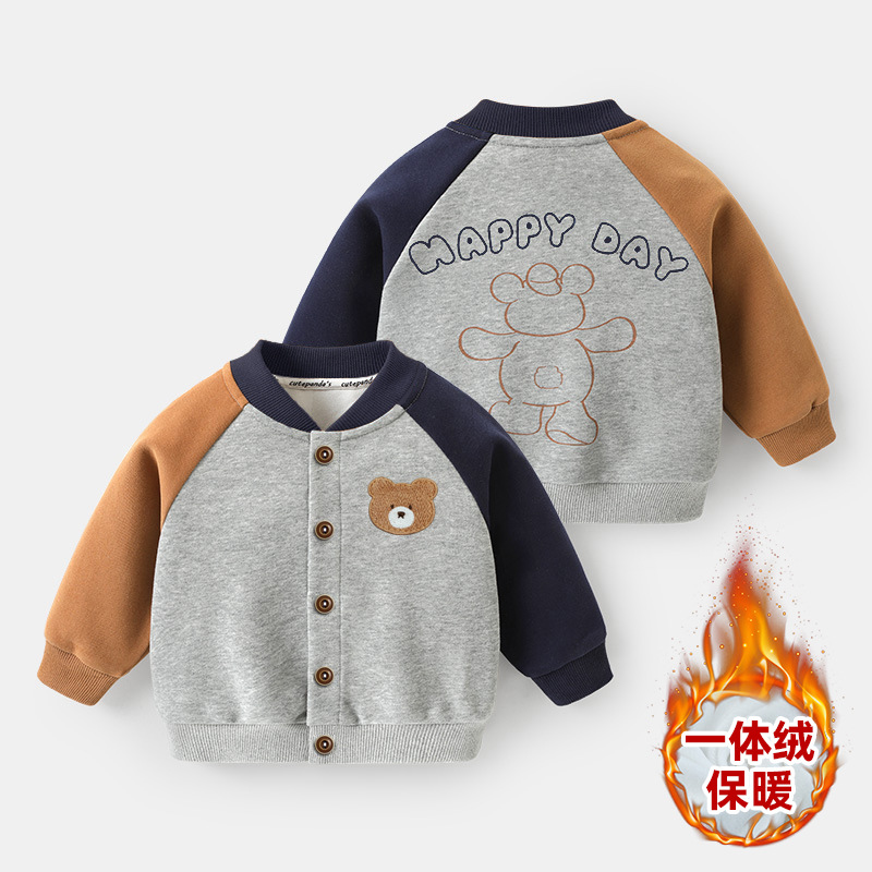 아기옷, 남자아이 야구복, 기모 자켓, 겨울옷, 가을 겨울 아기 및 어린이용 두꺼운 상의, 유행하는 아동복스토어 가기
