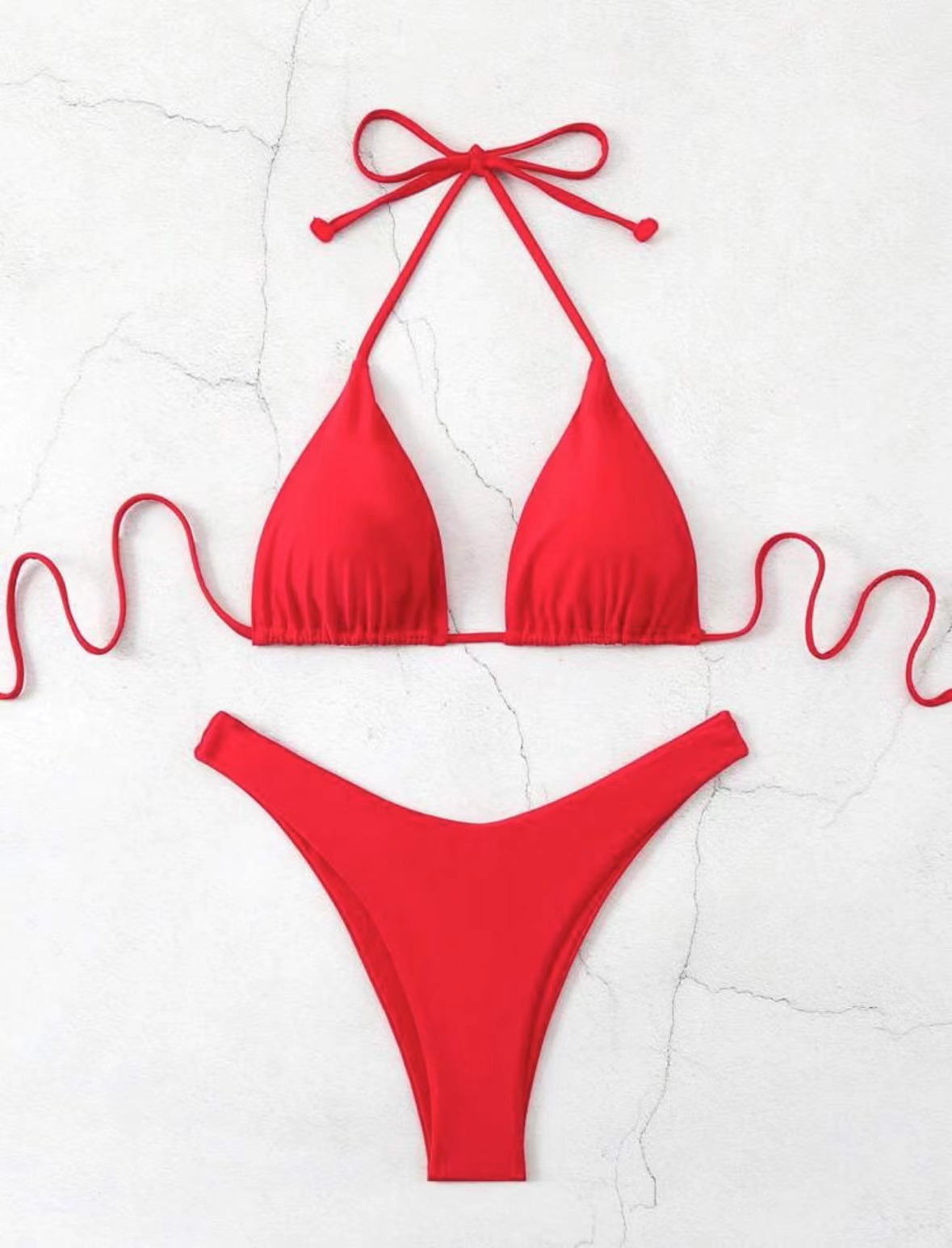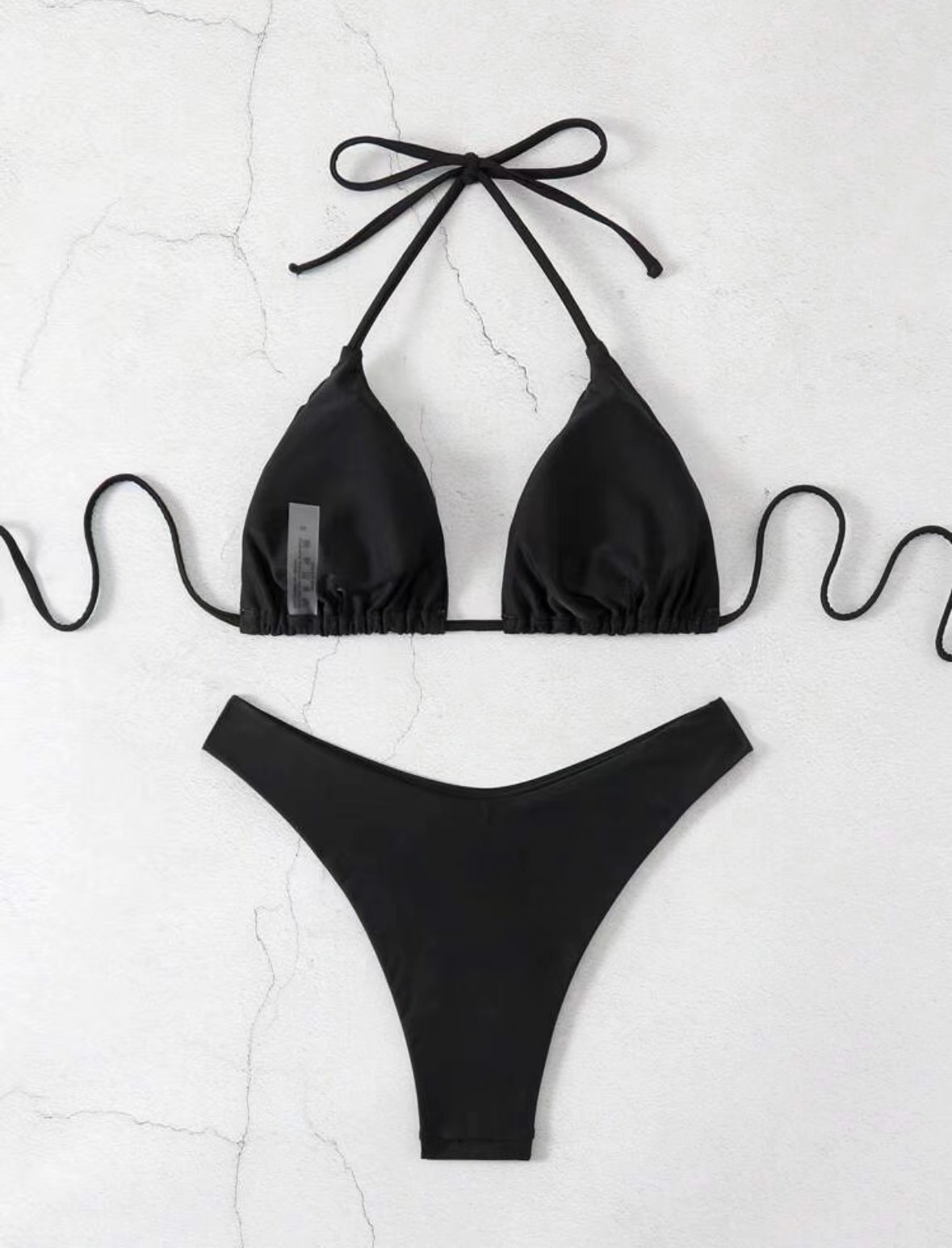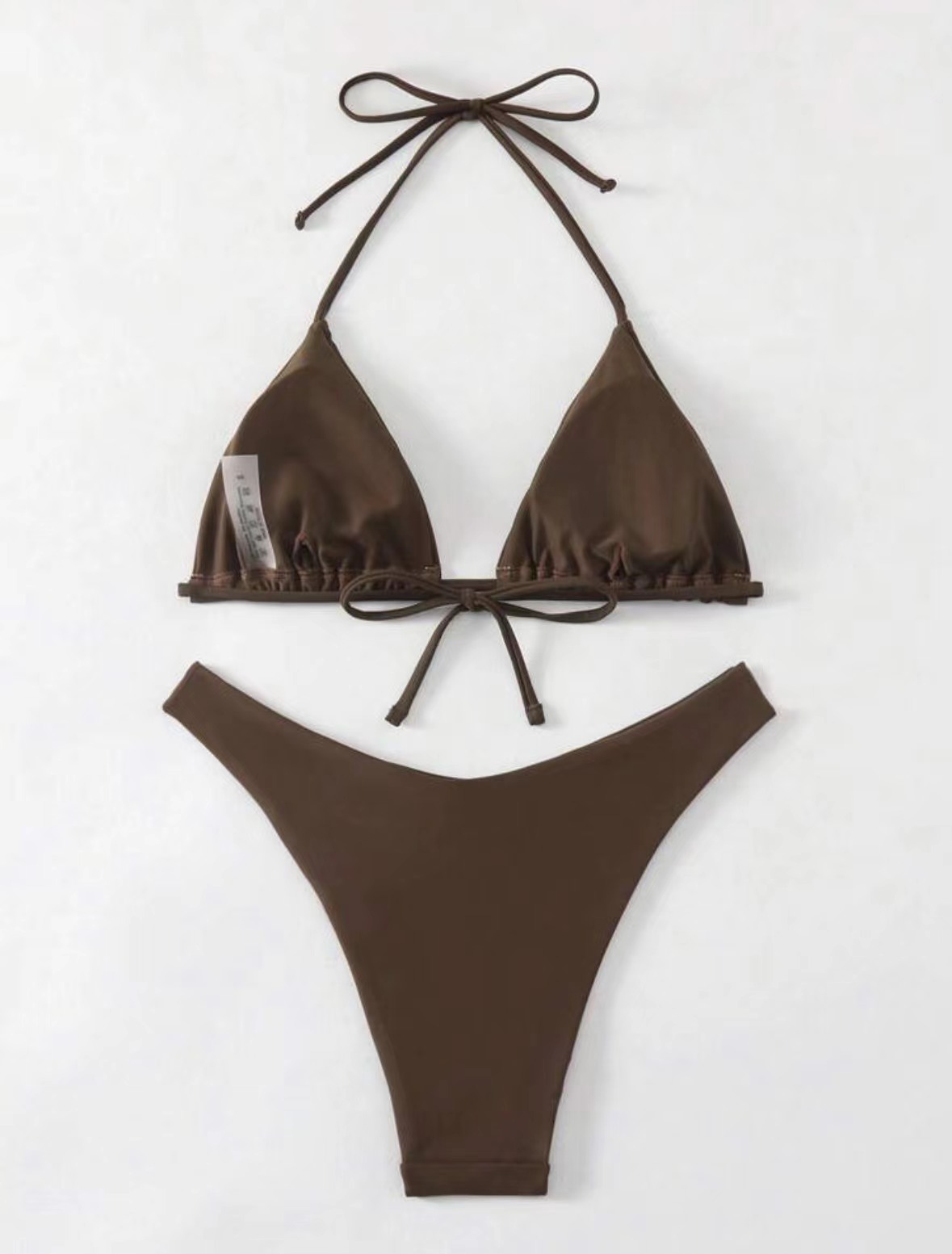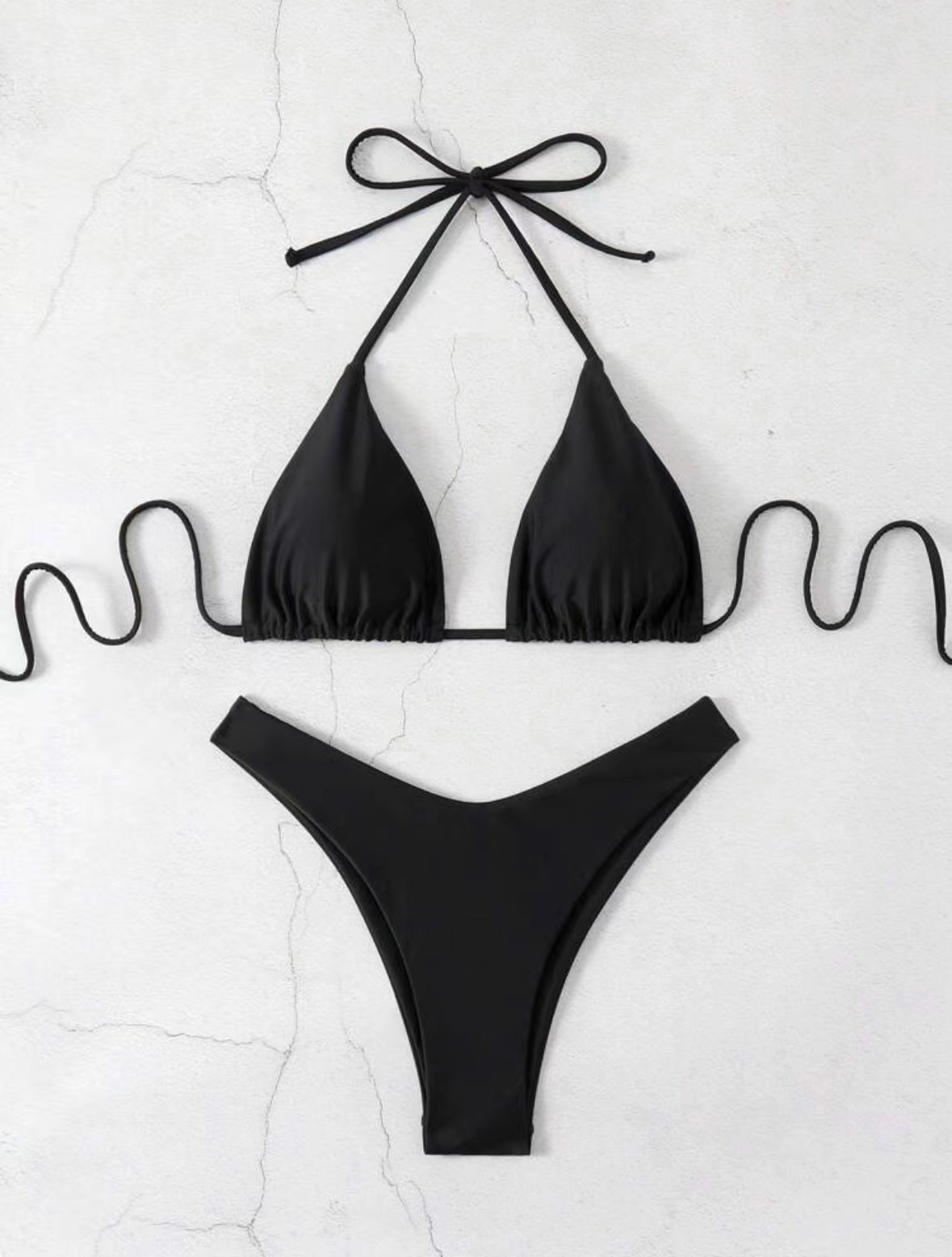 2025 유럽과 미국의 새로운 스트랩 비키니 수영복 여성 솔리드 컬러 투피스 섹시 스플릿 수영복 국경스토어 가기