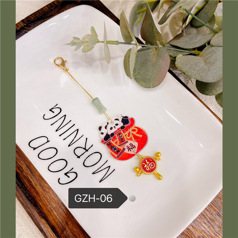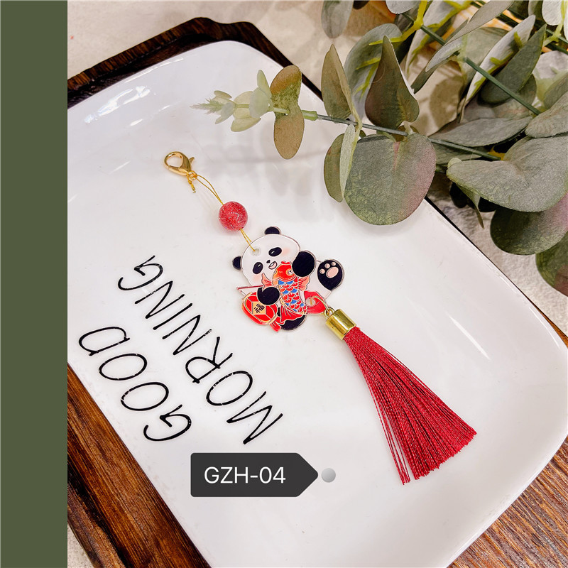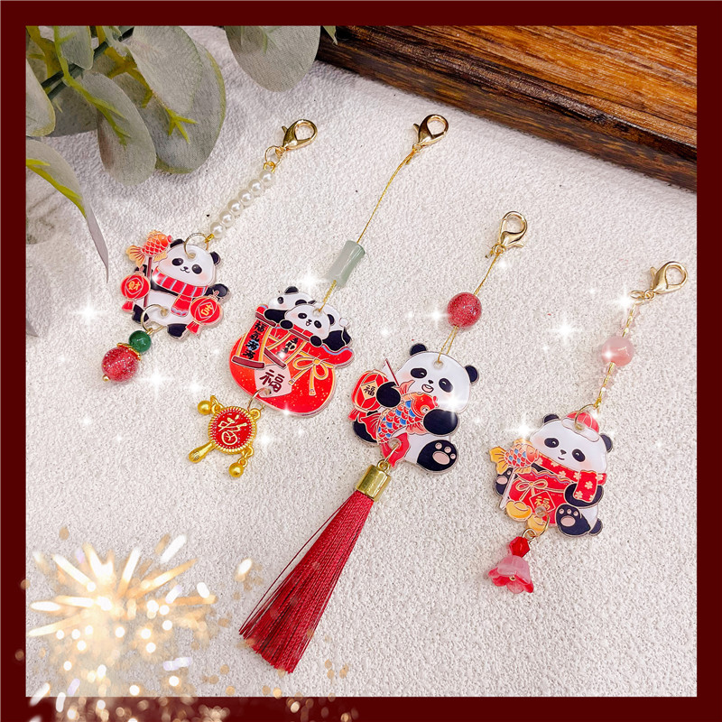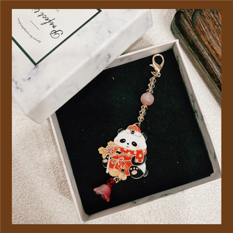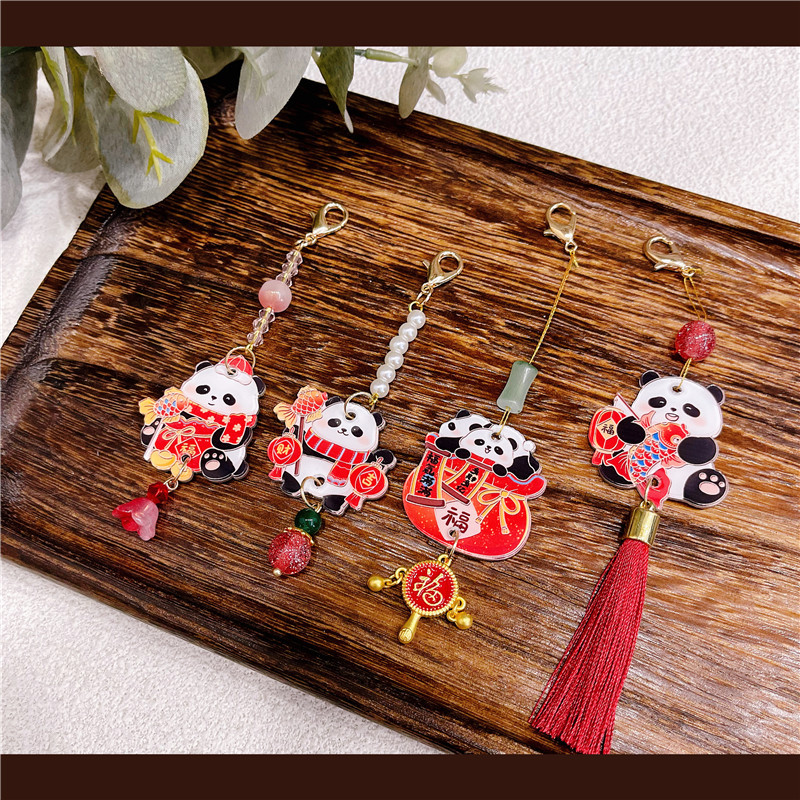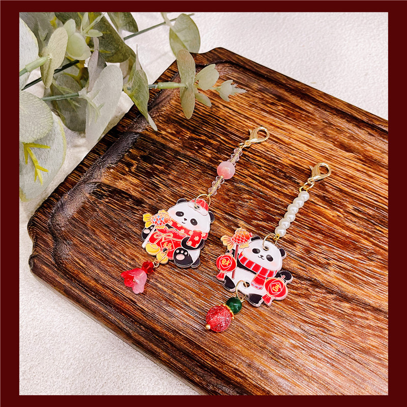 새해 팬더 펜던트 펜던트 술 액세서리 Hanfu Guofeng 새해 빨간 골동품 옷 판초 옷 보석