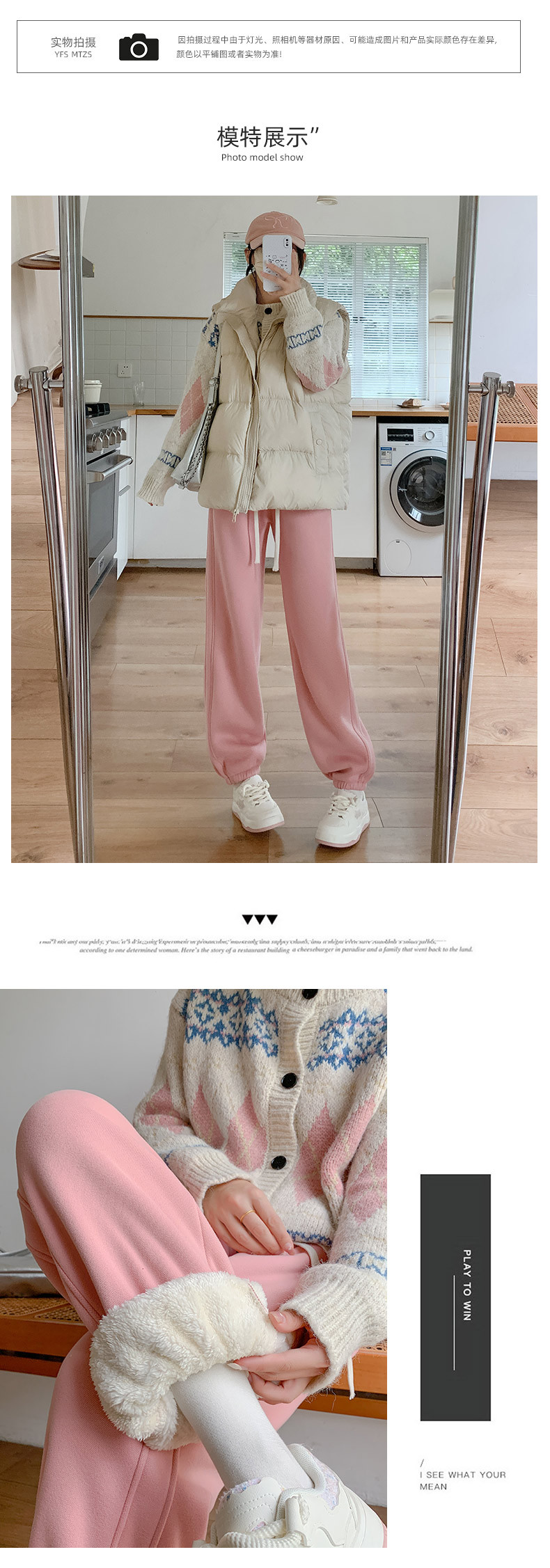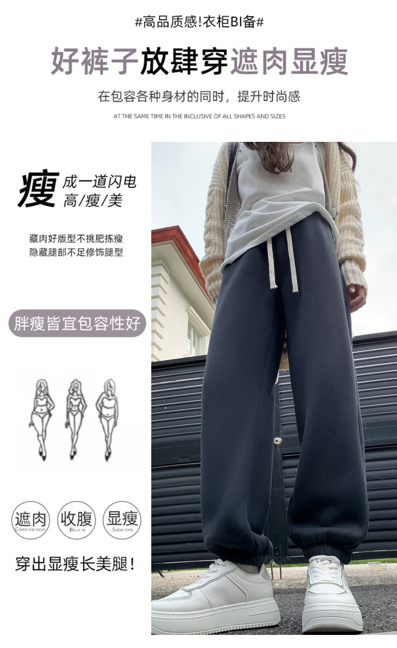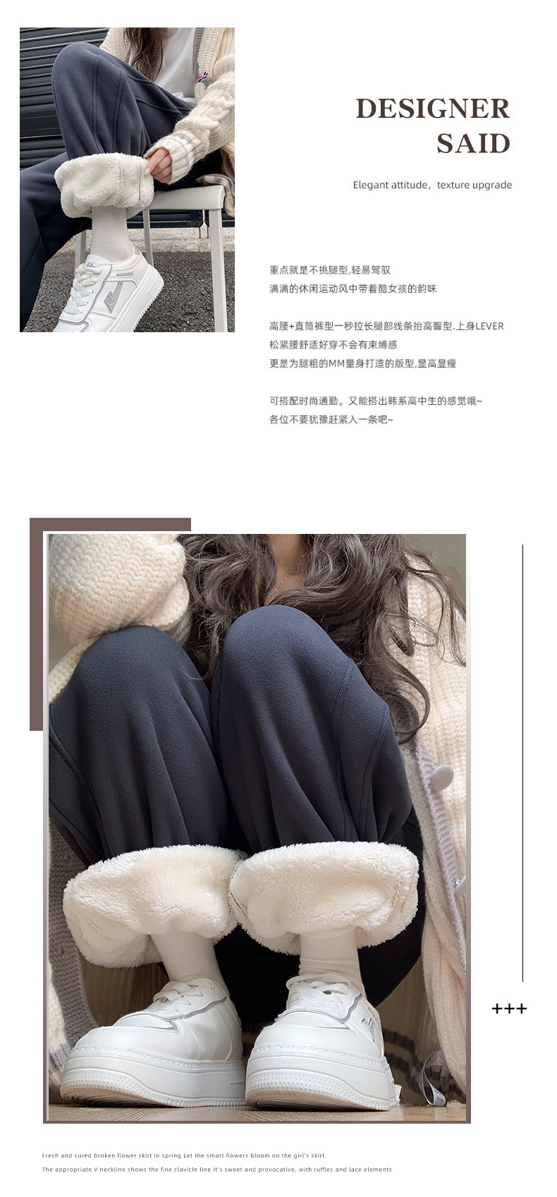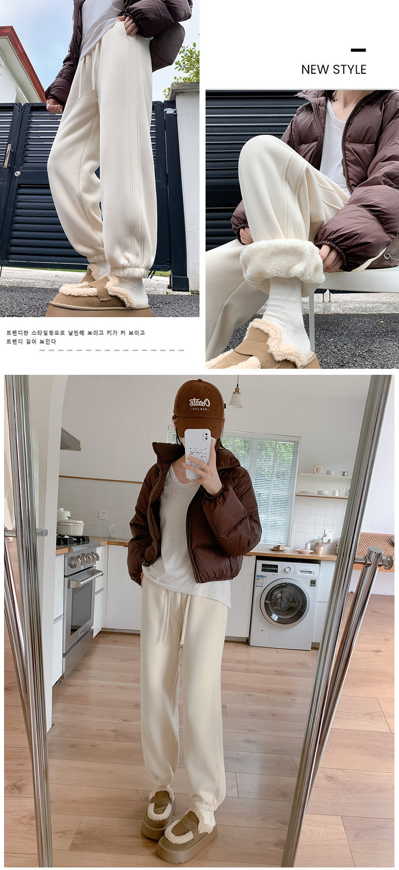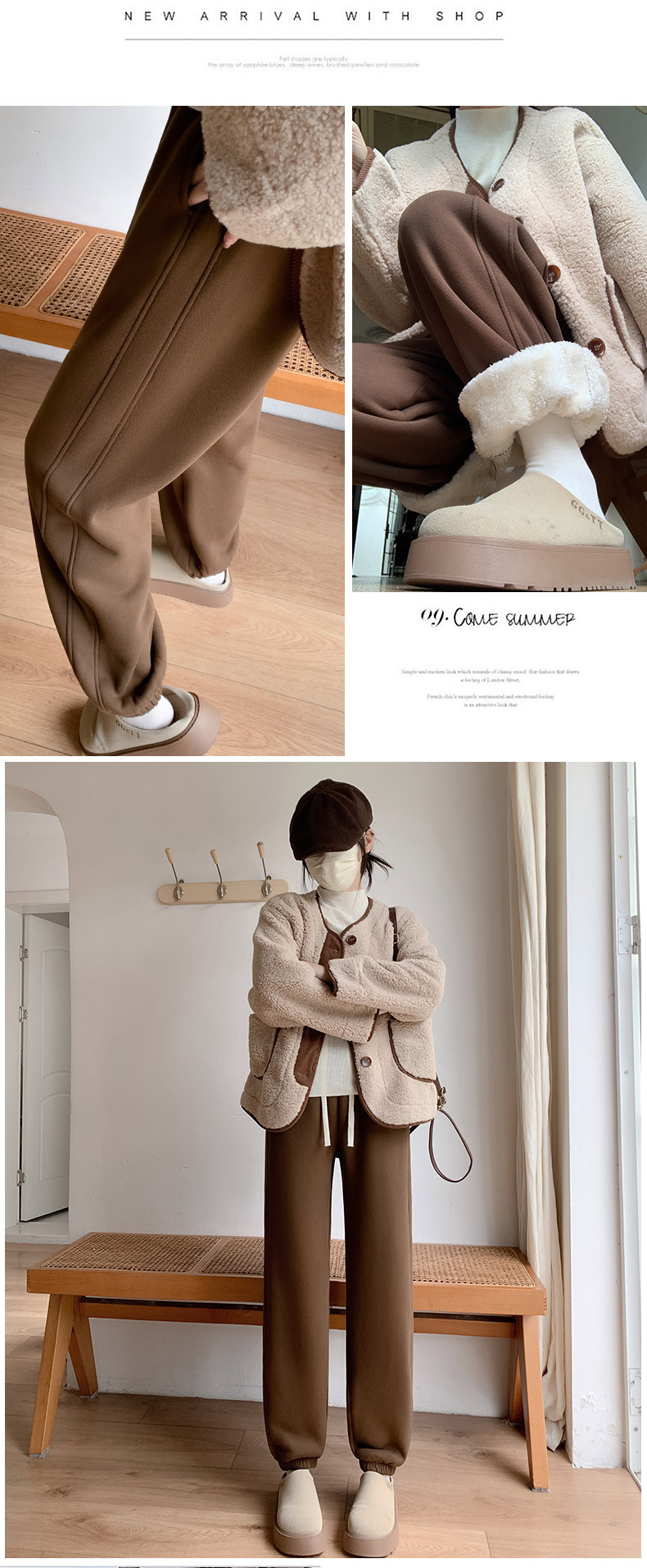 여성용 카페색 스포츠 팬츠 2025 가을 겨울 루즈핏 두꺼운 양털 안감 따뜻한 캐주얼 스웨트팬츠 플리스 안감 방풍 팬츠스토어 가기