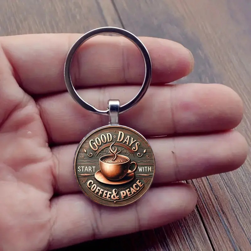 국경 간 뜨거운 판매 크리에이티브 커피 슬로건 크리에이티브 유리 키 체인스토어 가기
