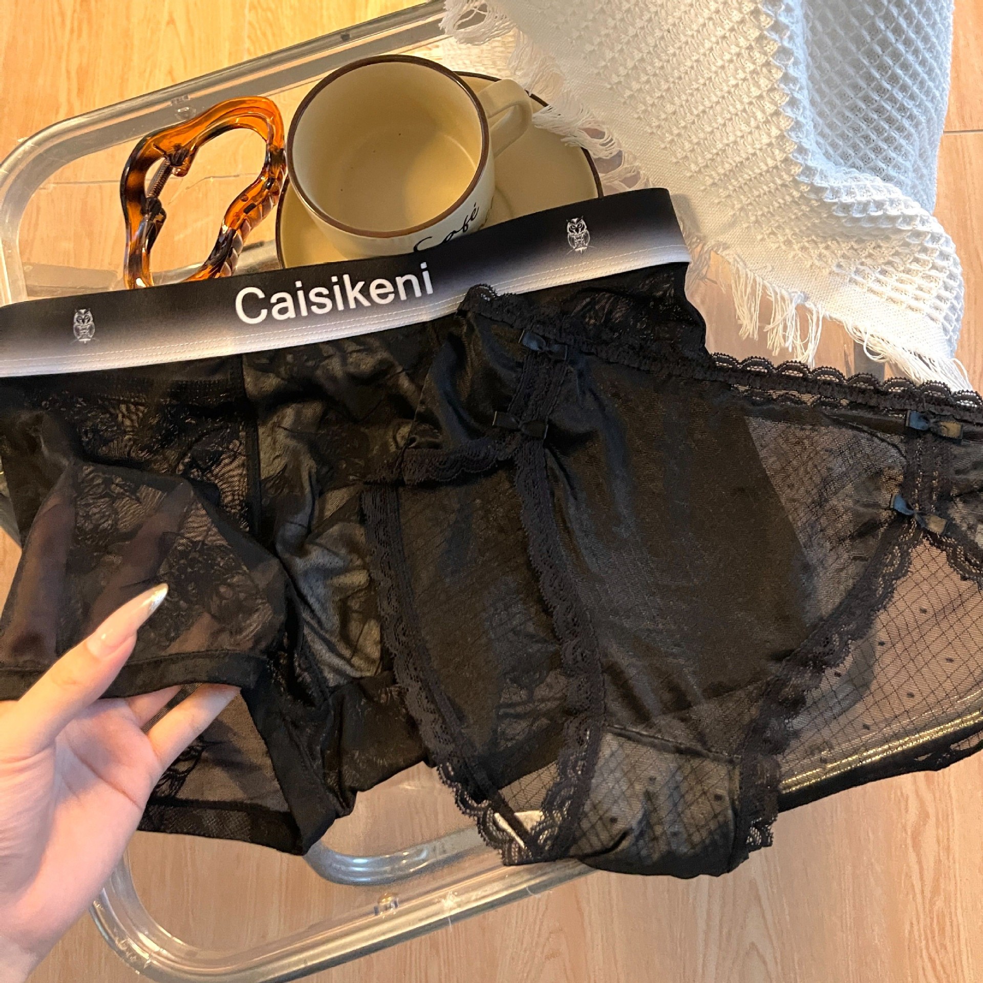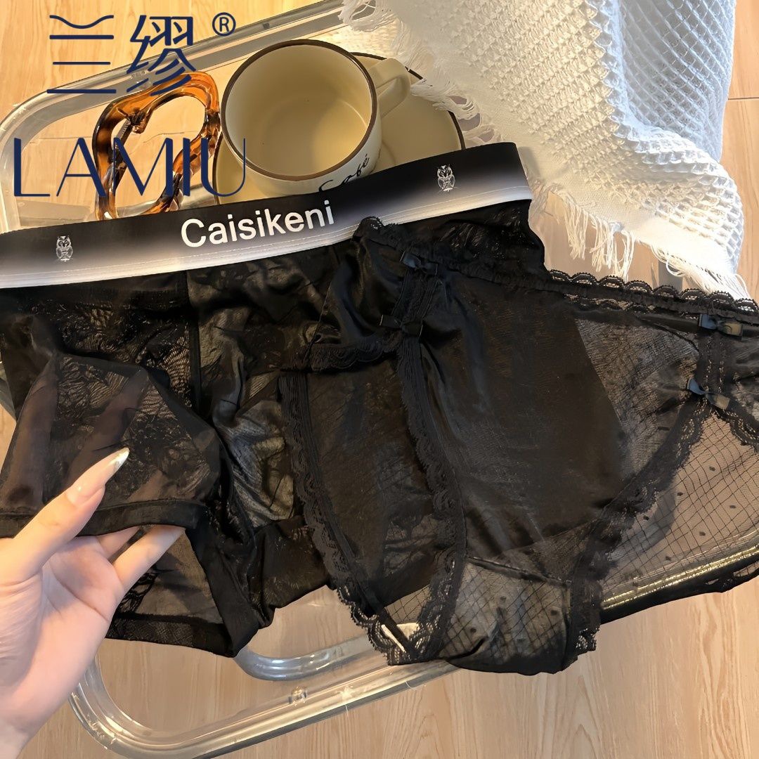 한 남자와 한 여자를위한 Lamiu 커플 팬티 가벼운 럭셔리 높은 뷰티 가치 레이스 섹시한 순수한 검은 단순한 남성 스타일